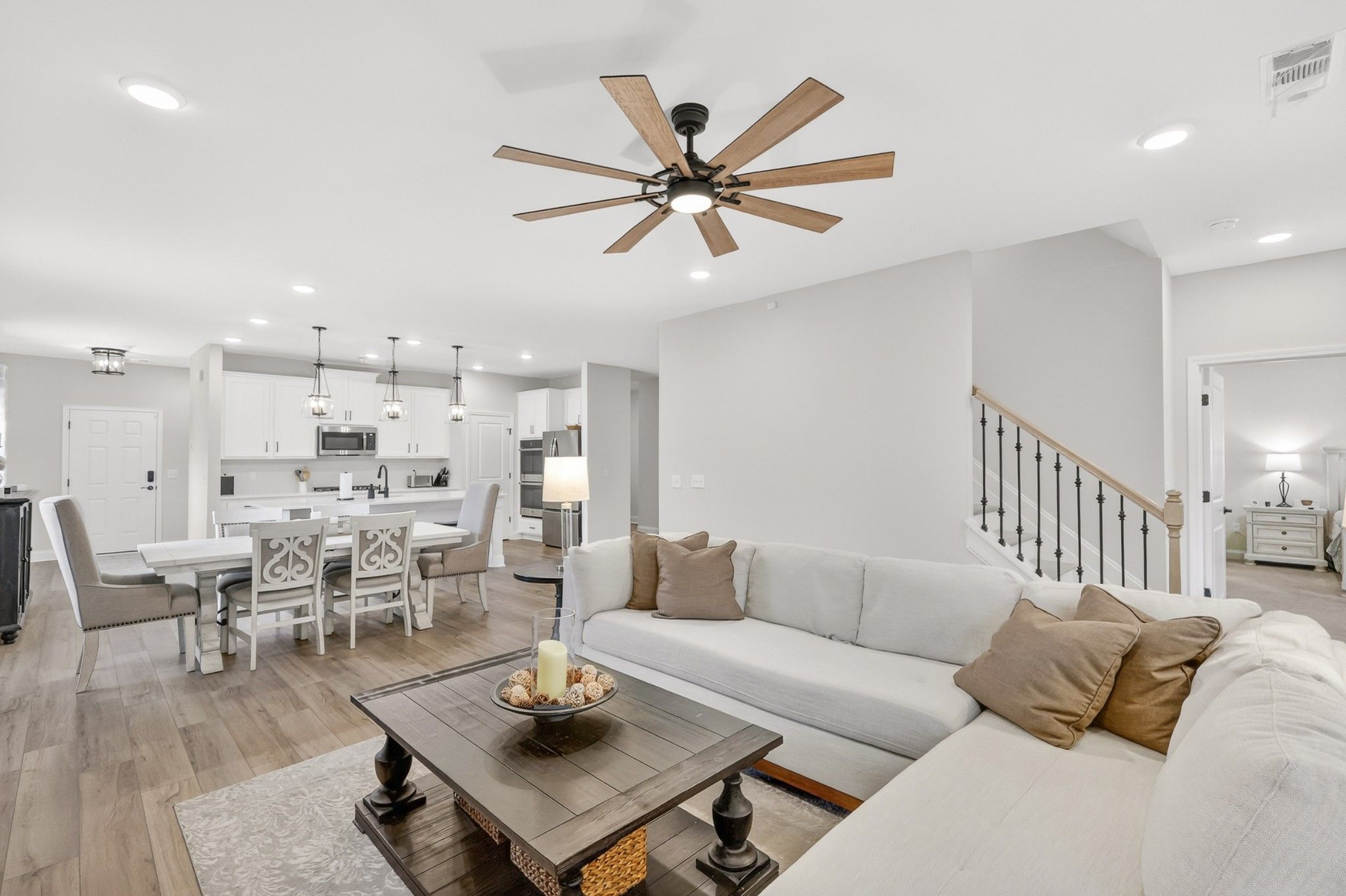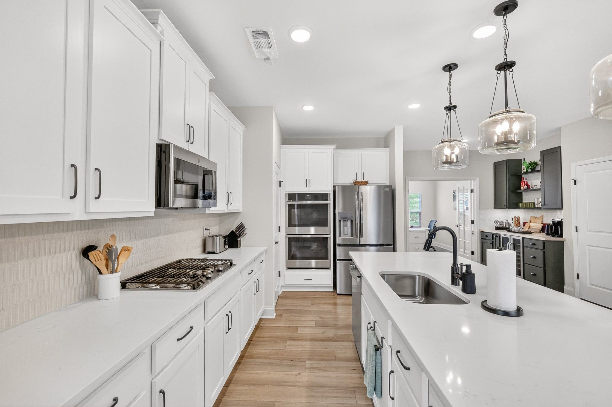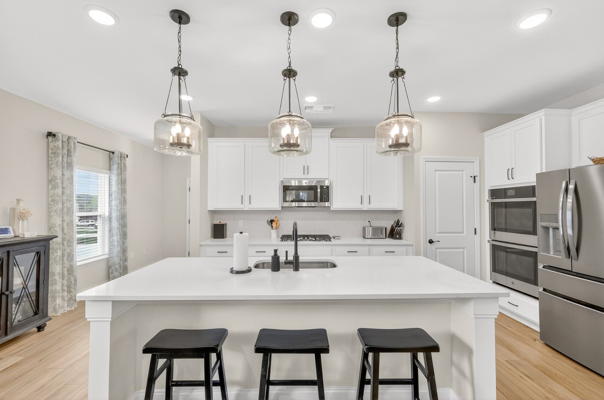 Welcome to easy, elevated living in the sought-after 55+ community of Stewarts Glen in Smyrna! Perfectly positioned on an oversized cul-de-sac homesite backing to private green space, this nearly new home (less than 2 years old) offers the ideal blend of comfort, style, and low-maintenance living. Inside, you’ll find over 2,550 square feet of thoughtfully designed space featuring an open-concept layout filled with natural light and sleek, modern finishes. The main level includes two spacious bedrooms plus a dedicated office—perfect for working from home or hobbies—while upstairs offers a private third bedroom with full bath and versatile bonus room, ideal for guests or additional living space. The heart of the home is the stunning kitchen, complete with quartz countertops, crisp white cabinetry, stainless steel appliances, a gas cooktop, and double ovens—perfect for entertaining or everyday living. A custom beverage station adds a stylish and functional touch for hosting. Other notable features are the luxury vinyl planking, outdoor cameras and video doorbell. Unwind year-round in the screened lanai overlooking peaceful, private surroundings—your own retreat right at home. This move-in ready home is one of only 18 detached homes in the Stewarts Glen community and combines upscale finishes, flexible living space, and an unbeatable homesite. The community features a covered pavilion for gathering together and a pickleball court. Don’t miss your opportunity to enjoy the lifestyle you've been waiting for in one of Smyrna’s most desirable active adult communities!