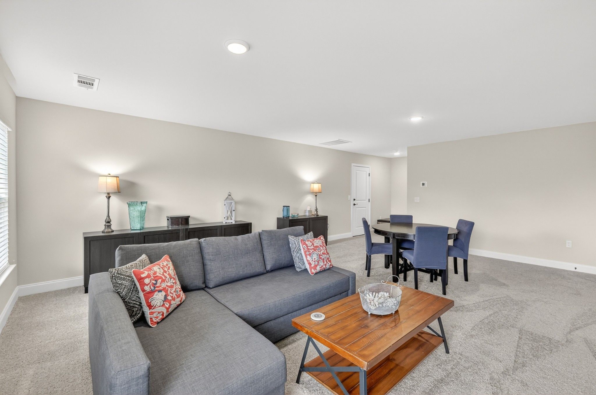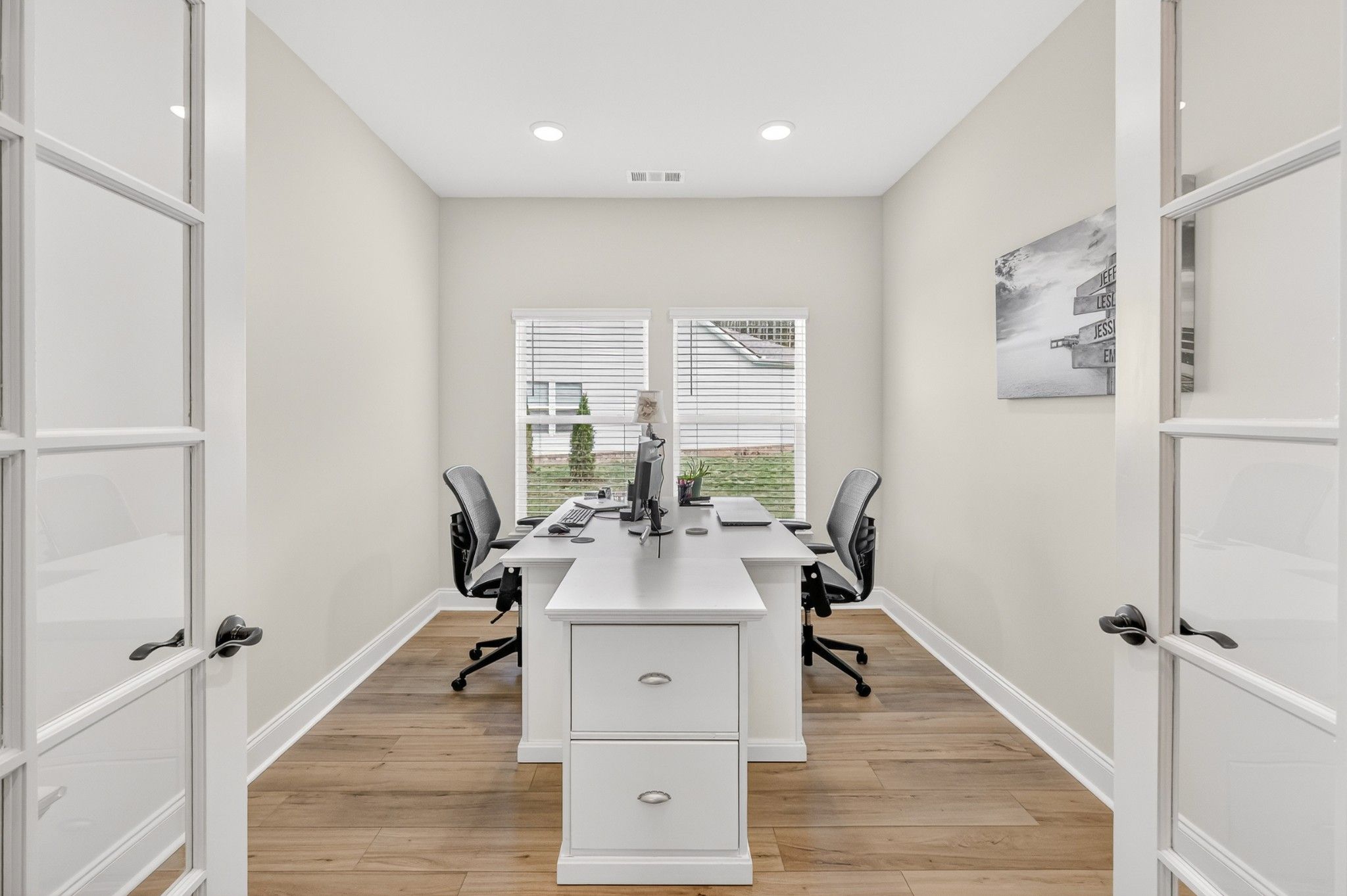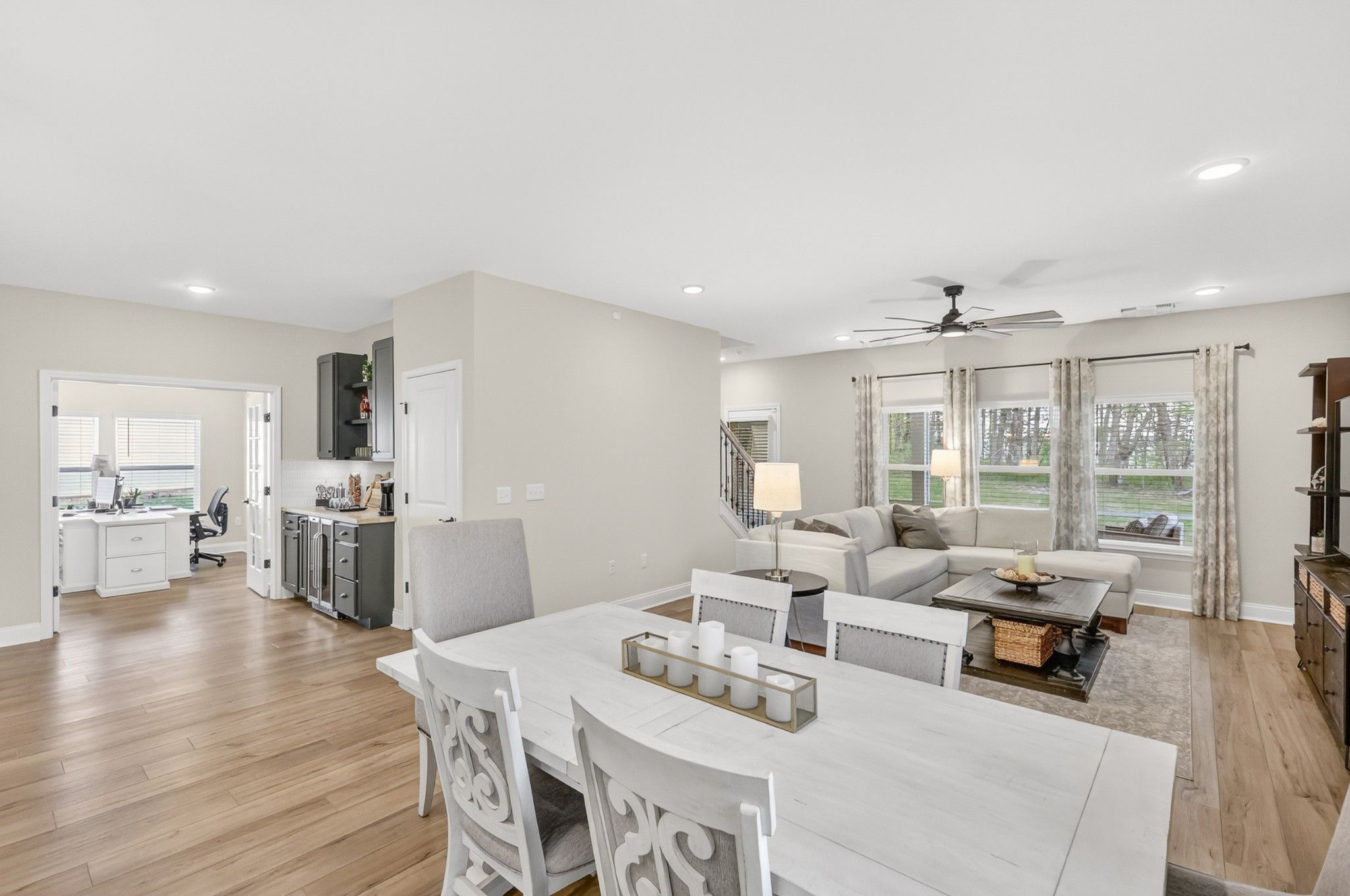 Welcome to easy, elevated living in the sought-after 55+ community of Stewarts Glen in Smyrna! Perfectly positioned on an oversized cul-de-sac homesite backing to private green space, this nearly new home (less than 2 years old) offers the ideal blend of comfort, style, and low-maintenance living. Inside, you’ll find over 2,550 square feet of thoughtfully designed space featuring an open-concept layout filled with natural light and sleek, modern finishes. The main level includes two spacious bedrooms plus a dedicated office—perfect for working from home or hobbies—while upstairs offers a private third bedroom with full bath and versatile bonus room, ideal for guests or additional living space. The heart of the home is the stunning kitchen, complete with quartz countertops, crisp white cabinetry, stainless steel appliances, a gas cooktop, and double ovens—perfect for entertaining or everyday living. A custom beverage station adds a stylish and functional touch for hosting. Other notable features are the luxury vinyl planking, outdoor cameras and video doorbell. Unwind year-round in the screened lanai overlooking peaceful, private surroundings—your own retreat right at home. This move-in ready home is one of only 18 detached homes in the Stewarts Glen community and combines upscale finishes, flexible living space, and an unbeatable homesite. The community features a covered pavilion for gathering together and a pickleball court. Don’t miss your opportunity to enjoy the lifestyle you've been waiting for in one of Smyrna’s most desirable active adult communities!