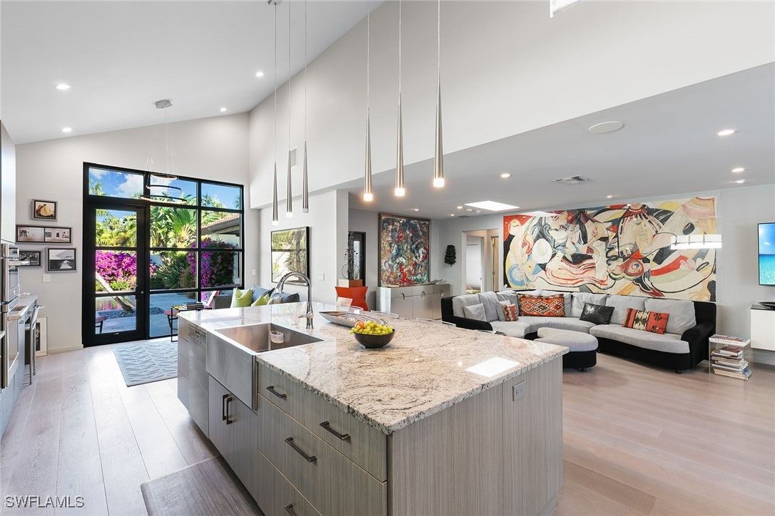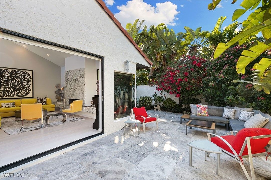 Art-forward, resort-casual, and unmistakably Pelican Bay. This Tierra Mar villa lives like a private garden retreat, wrapped in lush tropical landscaping and an expansive paved outdoor living room that flows effortlessly around a beautiful pool. Inside, the mood is elevated and designed for buyers who appreciate spaces with character. A dramatic fireplace with a granite surround creates an unforgettable first impression, while the floor plan opens wide to a generously sized kitchen reimagined for modern living. The oversized island anchors the space for everything from morning coffee to impromptu happy hour, and the updated layout makes entertaining feel easy and natural with wood flooring and thoughtful finishes. Both bathrooms have been enlarged and renovated, delivering a calm, spa-like experience for owners and guests alike. With 2 bedrooms, 2 baths, and a coveted 2-car garage, this villa is ideal for the Pelican Bay buyer who wants lock-and-leave ease without sacrificing privacy, outdoor lifestyle, or design impact. Tierra Mar's villa-style living offers the comfort of a home with the advantages of a beautifully maintained community, all moments from the beaches, Artis, Waterside Shops, and the signature Pelican Bay lifestyle.