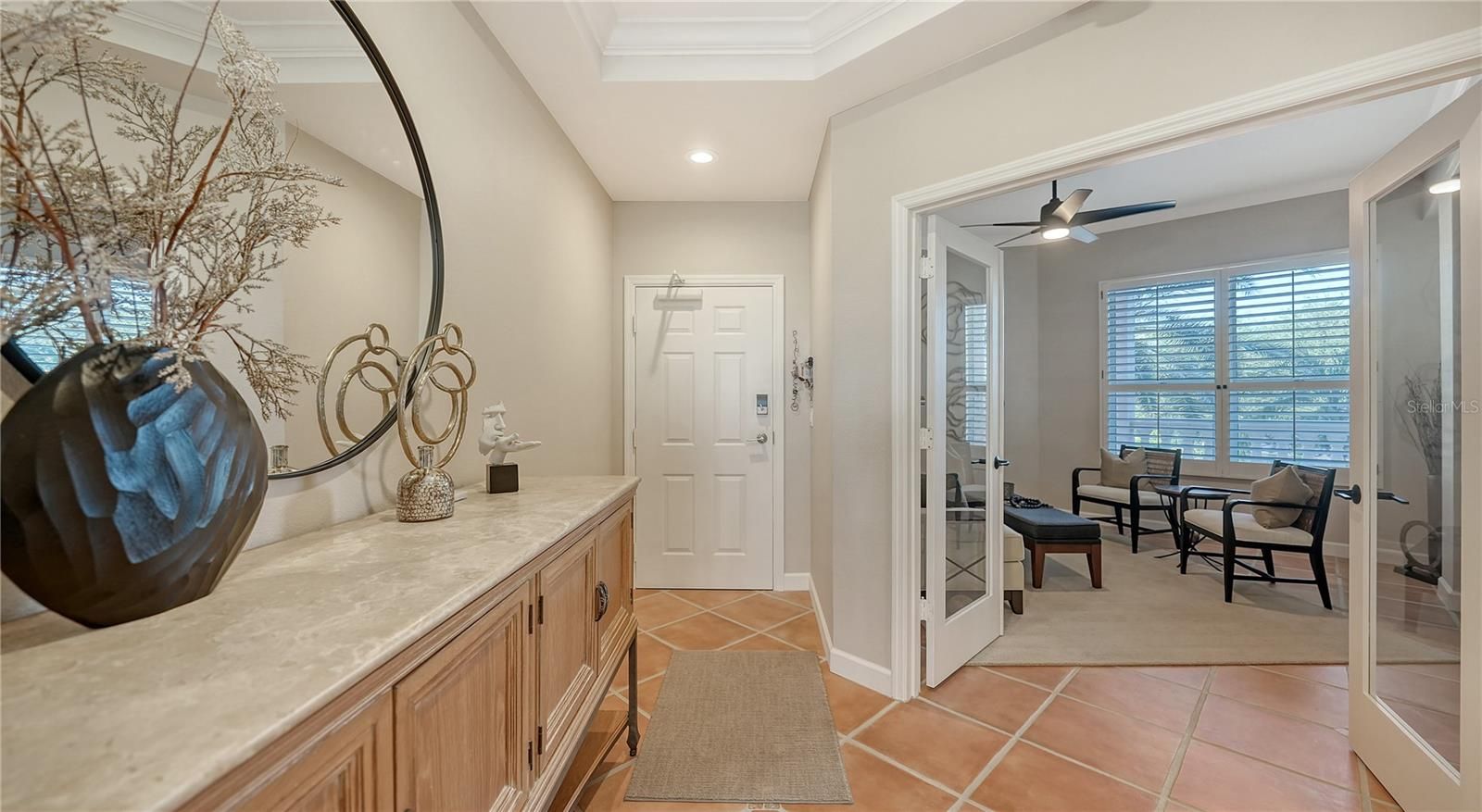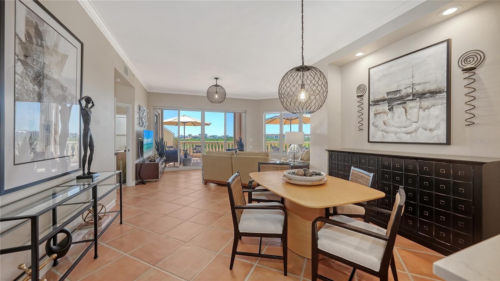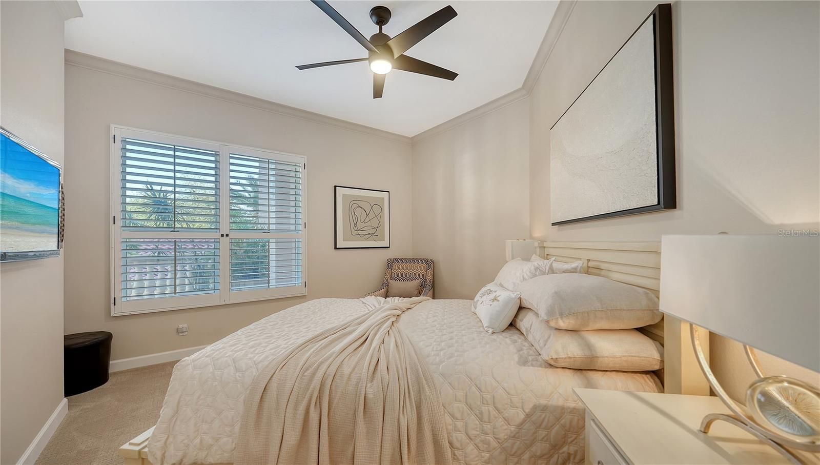 Is there a 3-bed condominium in The Landings under $700K with direct racquet club access and water views? Yes: this rare find at Eagles Point offers waterfront serenity, updated finishes, and vibrant amenities for $695,000. Live like you're on vacation every day in this 3-bedroom, 2-bath condominium overlooking Phillippi Creek in Eagles Point at The Landings. This completely remodeled residence offers a spacious terrace with sunset views and automatic hurricane shutters, high ceilings, Cambria quartz countertops, and gorgeous Italian porcelain tile. The light-filled floor plan includes an open living and dining area, a versatile third bedroom or den with French doors, and a primary suite with water views and terrace access. The kitchen features stainless steel appliances and a casual dining or desk nook. An oversized personal one-car garage provides room for kayaks, bikes, or a workbench setup. Recent updates include soft-close cabinetry, modern lighting, a new HVAC system, water heater, fresh paint and so much more, inquire with the listing agents for a complete list of updates. Residents of this pet-friendly enclave enjoy a private pool and BBQ area, plus full access to The Landings Racquet Club with eight Har-Tru tennis courts, pickleball, a junior Olympic pool and spa, fitness center, and vibrant community events. Enjoy scenic nature trails, kayak storage, and a peaceful gazebo on the Intracoastal Waterway. Minutes from Siesta Key and Downtown Sarasota, this gated West of Trail community offers unmatched access and amenities. Offered furnished with some exclusions. Schedule your private tour of 5440 Eagles Point Cir #104 today.