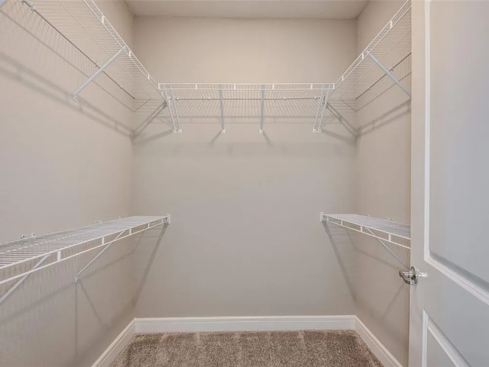 - Built-in Features, Eat-in Kitchen, In-Wall Pest Control, Living/Dining Room, Open Floorplan, Main Level Primary, Solid Surface Counters, Thermostat, Walk-In Closet(s)