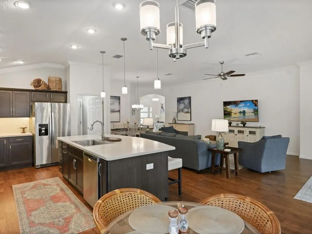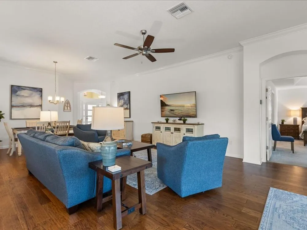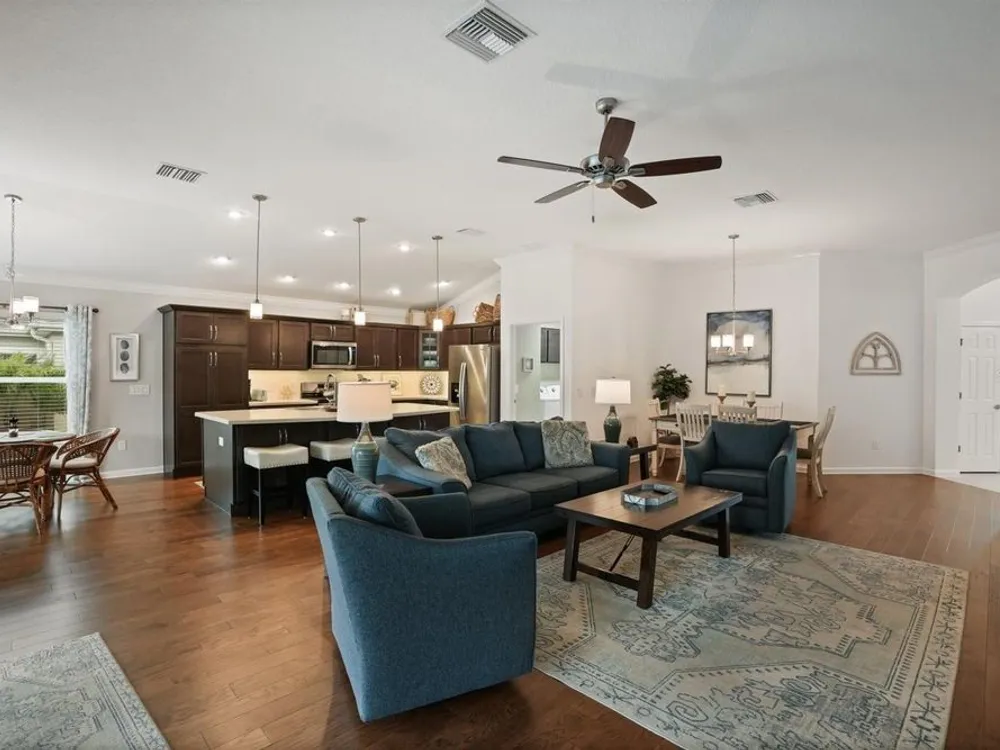 **PRICE IMPROVEMENT!** Beautifully Furnished TURNKEY VERANDA in MARSH BEND – Fenced yard, check! Designer Veranda series, check! Marsh Bend, check! Furnished TURNKEY, check! ROOM FOR A POOL, CHECK! Discover unparalleled elegance in this stunning 3-bedroom, 2-bath HUDSON model Veranda home, rarely available Veranda in this highly sought-after Marsh Bend neighborhood. Priced below the owner’s original purchase price—this 2019-built CONCRETE BLOCK AND STUCCO gem offers incredible value with over $30,000 in premium upgrades. Step inside to find engineered HARDWOOD FLOORS flowing through the open living spaces, complemented by CROWN MOLDING and a WHOLE-HOUSE WATER TREATMENT SYSTEM. The designer-furnished interior and patio furnishings, included in the sale, creates a seamless move-in-ready experience. Fully TURNKEY with a FURNISHED KITCHEN, BEDDING, and TOWELS. Outside, a private fenced courtyard with a custom WATER FOUNTAIN FEATURE sets the stage for effortless entertaining and tranquil relaxation. Nestled close to MAGNOLIA PLAZA, EDNA'S ON THE GREEN, FENNEY, premier golf courses, executive golf, pitch and putt, vibrant recreation, walking trails, biking trails, this home blends luxury and recreation with entertainment and convenience. Just a short cart ride to both BROWNWOOD PADDOCK SQUARE and even closer to the new EAST PORT area. Great RENTAL OPPORTUNITY, WINTER HOME, or FOREVER HOME! Don’t miss this rare opportunity to own a meticulously upgraded Veranda in one of The Villages’ most coveted communities. Schedule your private tour today!