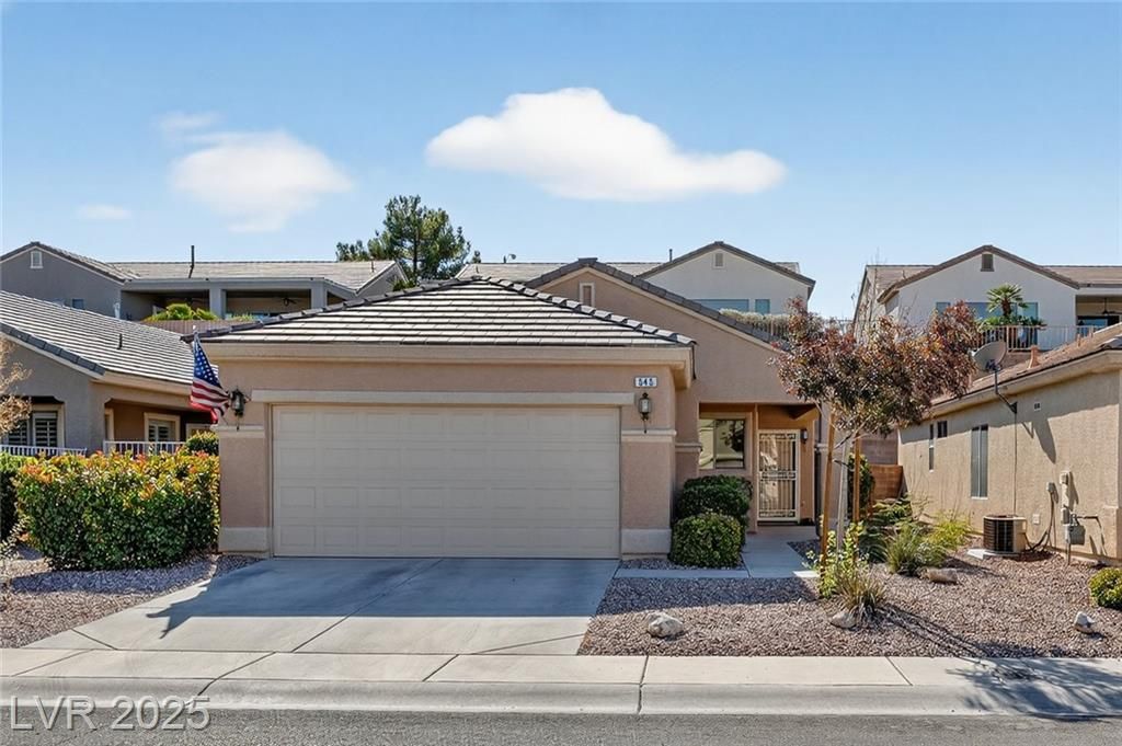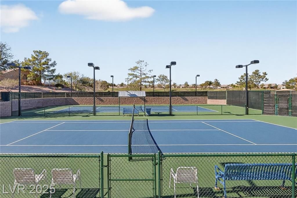 Desirable single story Tucson model home located in the highly sought after Sun City MacDonald Ranch 55+ community. This impeccably maintained home offers effortless living with no carpet, making cleaning simple. 2 bedroom, 2 bath comes with lots of thoughtful upgrades. The kitchen boasts stainless steel appliances, soft closing cabinets and granite counter tops. Plantation shutters throughout and ceiling fans in every room. Energy efficient windows. Freshly painted interior and exterior of the house. New landscaping and covered patio in the fully fenced in back yard.. No exterior or landscape maintenance—front or back Appliances are included! The community offers 36,000 sq ft clubhouse with tennis, pickle ball, arts, crafts, billiards, restaurant, heated pool & spa, 18 hole golf course & more. Just minutes away from the District at Green Valley Ranch, Shopping, dining, walking trails and 215 freeway!