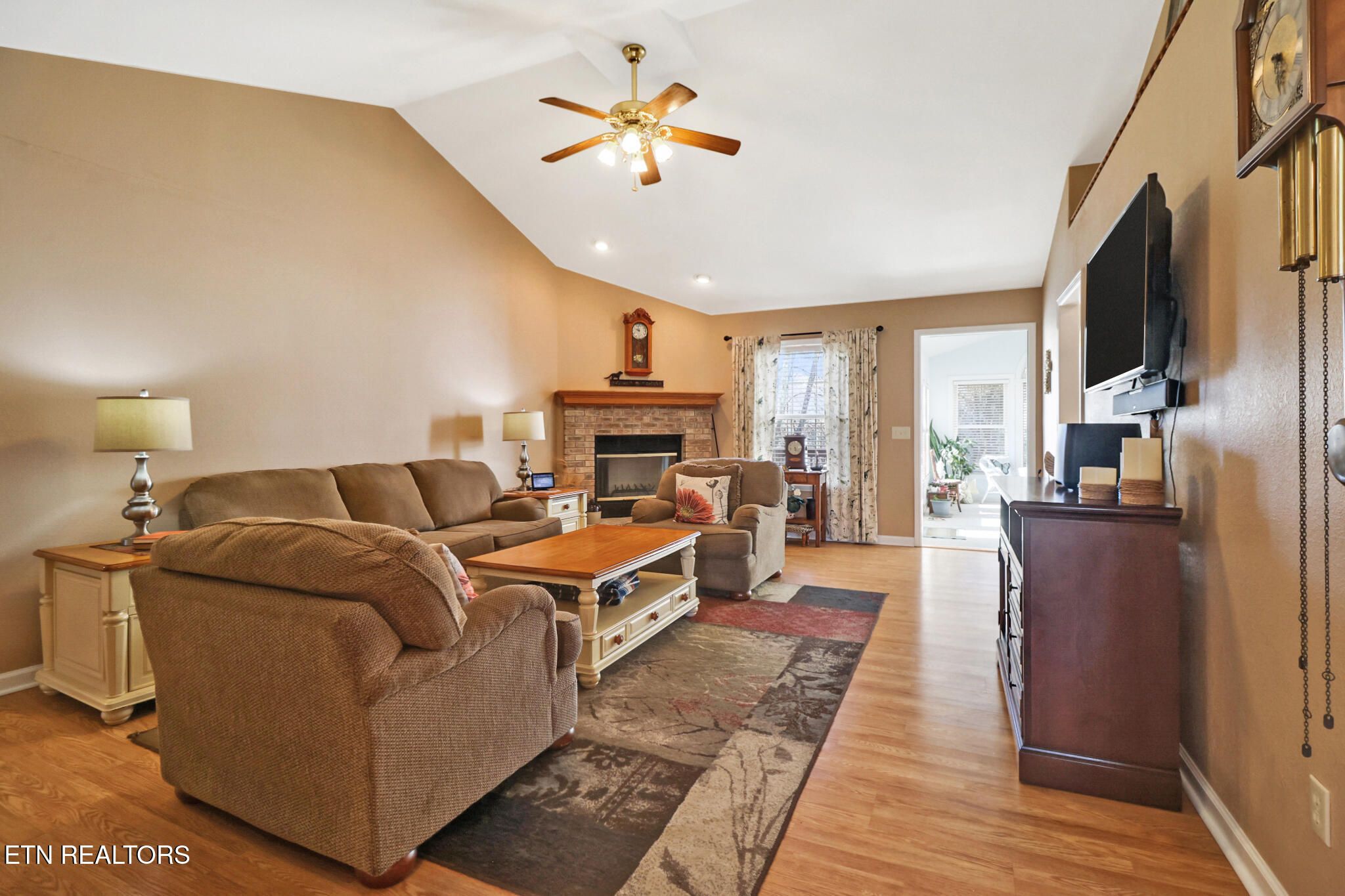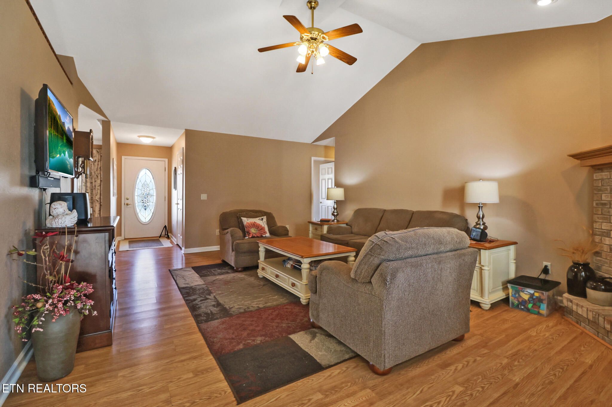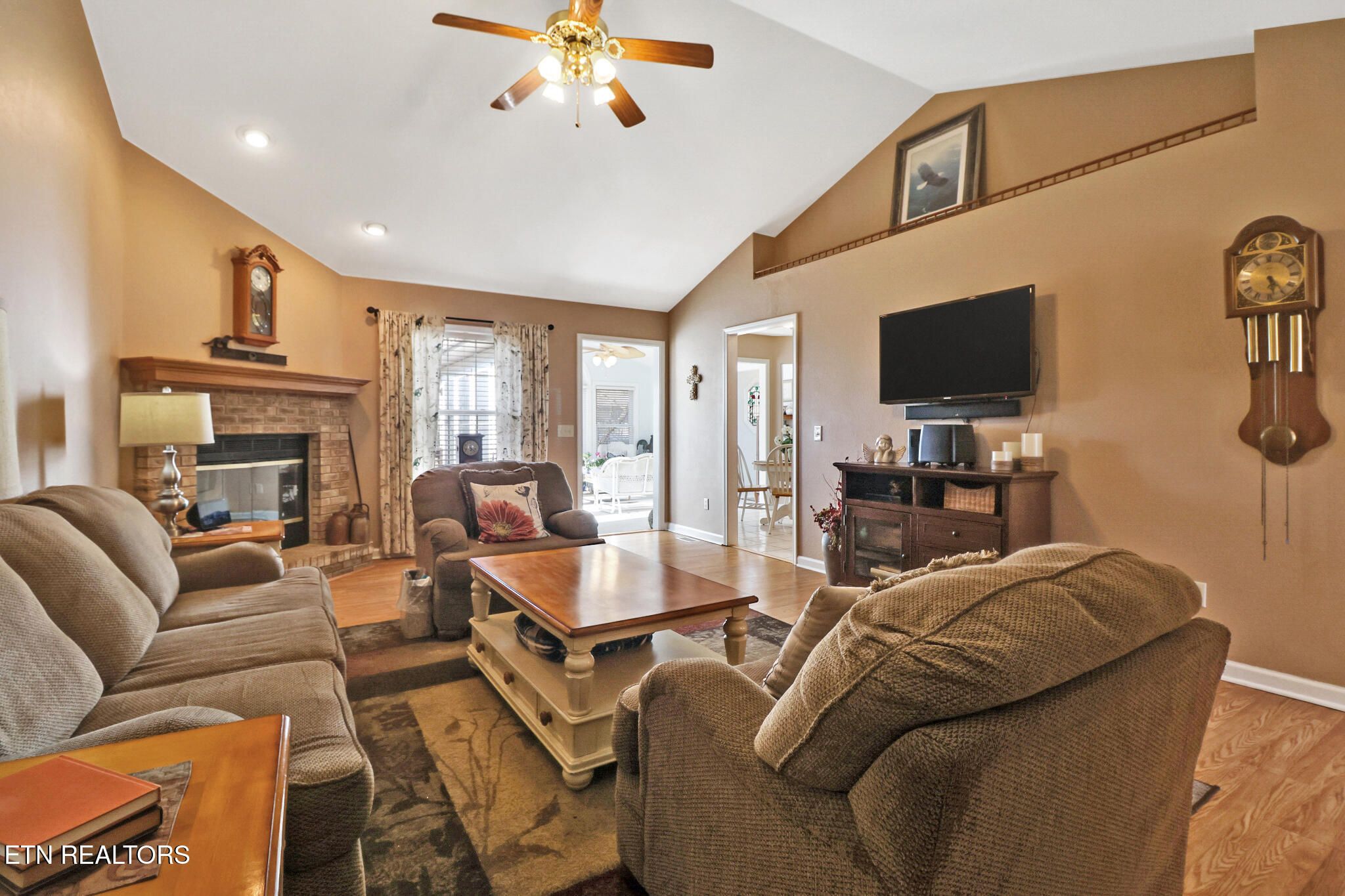 UPDATED & WELL MAINTAINED HOME!!! This 1,792 SqFt. 3 bedroom 2.5 bath one level home is located in the heart of the beautiful Fairfield Glade Resort Community. Major Updates Include a New Roof in 2023 -Also new in 2023, the HVAC system with Honeywell Smart WiFi thermostat & updated duct-work - New water Heater in 2024 & new Granite Kitchen countertops. Other features include, Cathedral Ceilings in the 21'x 14.5' Living room with brick fireplace, & in the 17.75'x 13.25' Sun-room,- Stainless steel kitchen appliances,- Oak kitchen cabinetry,- Formal 11.5'x 9.33' dinning/entertaining room with 9ft. trey ceiling,- Laundry/Mudroom with double sink, ample storage, & access to the insulated & dry-walled 21.75'x19.66'- 2 car garage with epoxy floor & built-in 7'x9' work area. The 17'x12.25' primary bedroom features a 9ft. trey ceiling, walk-in closet, en-suite bathroom with a double vanity & a walk-in shower. There are 2 additional bedrooms that offer plenty of storage options as well as Guest-room/Office/Hobby-room flexibility. Outside you will find a spacious wooden deck, Brick patio areas, & a fire pit area with swing - Perfect for relaxing with friends or just some quite time under the stars. Located just minuets away from most of the Fairfield Glade Amenities. This home gives you peace of mind knowing that all the big ticket renovations have already been done. Schedule a private showing to see this value packed ranch home soon. (all information is deemed to be reliable, but is not guaranteed & should be independently verified).