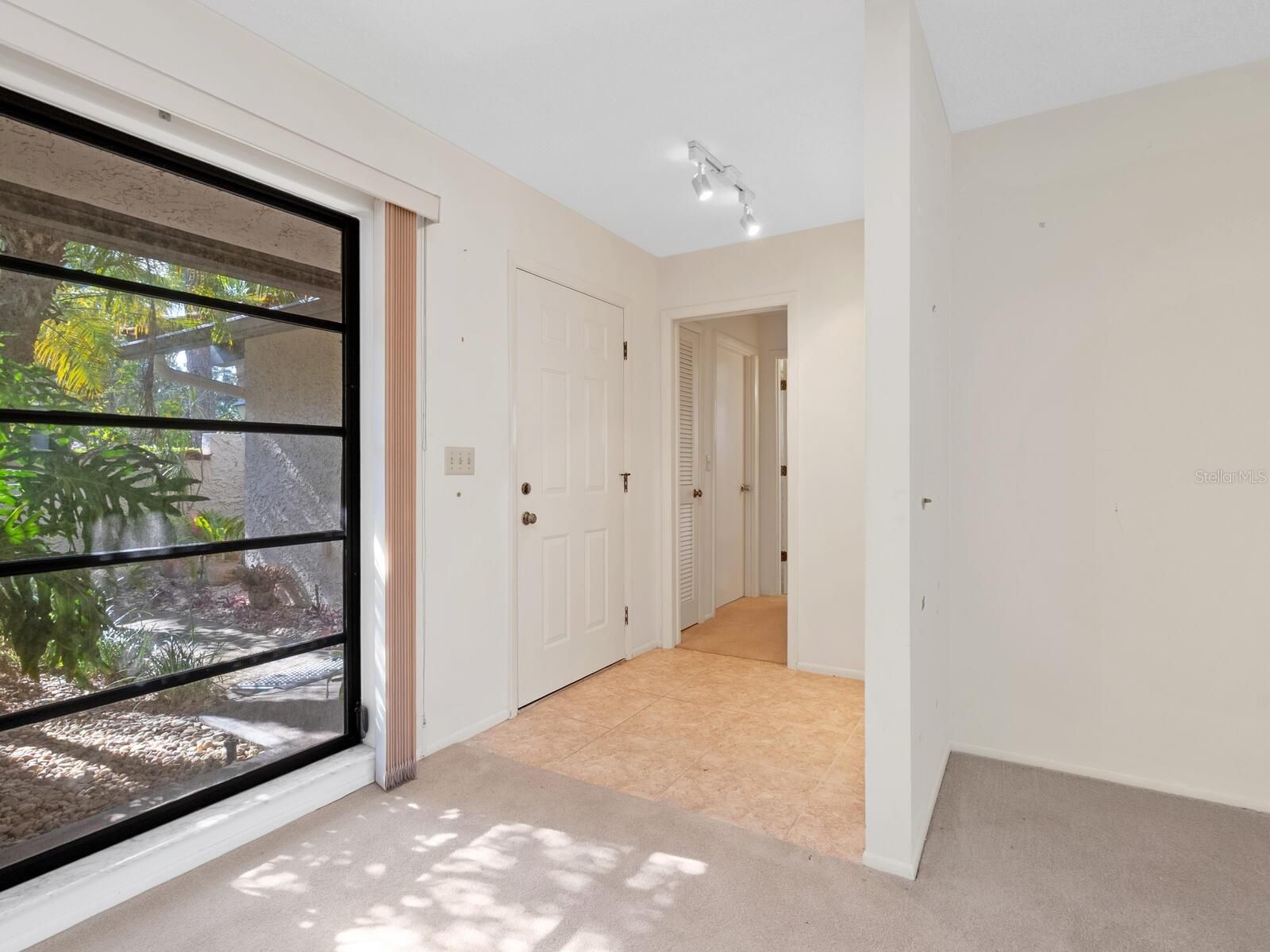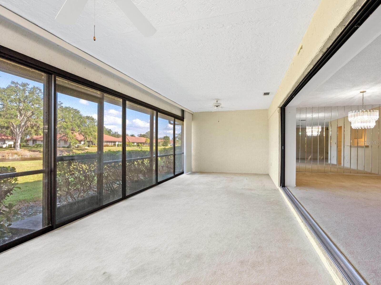 Bring your imagination to this spacious light and bright waterfront villa situated just west of the University Town Center area in the coveted Palm-Aire Golf and Country Club community. Enter the lovely metal front gate to a charming garden courtyard entryway to the front door. This villa has wonderful open floor plan featuring an enclosed Florida room overlooking the pond. With two large bedrooms and an additional room that could be used for an office or third bedroom and two full baths. This spacious home is truly designed for gracious living with a large living and dining area flowing into the Florida room overlooking the pond. This charming community is perfectly situated just 4 miles to world class shopping and restaurants at the University Town Center, 12 miles to the white sugar sand beaches of Lido Key Beach, 6 miles to Sarasota Bradenton International Airport, and 8 miles to Main Street Sarasota. Opportunity is knocking, this villa is being sold as-is so bring your creativity to this blank slate. Roof 2013 and AC 2019. Access to golf and tennis is through membership at Palm-Aire Golf and Country Club. Access to the community pool is half a block from home.