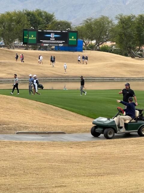 Located on the world-renowned Stadium Course at PGA West, this updated and spacious Legends 10 model offers 4 bedrooms and 3.5 baths across 2,272 square feet of thoughtfully designed living space. Enjoy true VIP seating for The American Express Tournament from your south-facing patio overlooking the 5th green, where you and your guests can relax in the sun and watch the pros up close!The expansive back patio is an entertainer's dream, with panoramic views of both the golf course and the Santa Rosa Mountains, creating a stunning backdrop for gatherings day or night. Two nearby community pools and spas provide effortless resort-style living, giving you easy access to amenities without the burden of maintenance.Inside, abundant natural light showcases the many upgrades throughout the home. Improvements include updated flooring, baseboards, lighting, and ceiling fans, along with a fully enclosed fourth bedroom with closet. The kitchen has been opened to the living room and features a custom built-in quartz-top dining table, perfect for casual dining and entertaining. Additional updates include a new washer and dryer, garbage disposal, and dishwasher.The primary bathroom offers a spa-like retreat with an updated porcelain shower and a personal sauna for ultimate relaxation. This beautifully appointed home is offered fully furnished per inventory and comes move-in ready, complete with a golf cart. Turn-key and ready for your immediate enjoyment, this is truly a must-see property. THIS IS THE ONE!