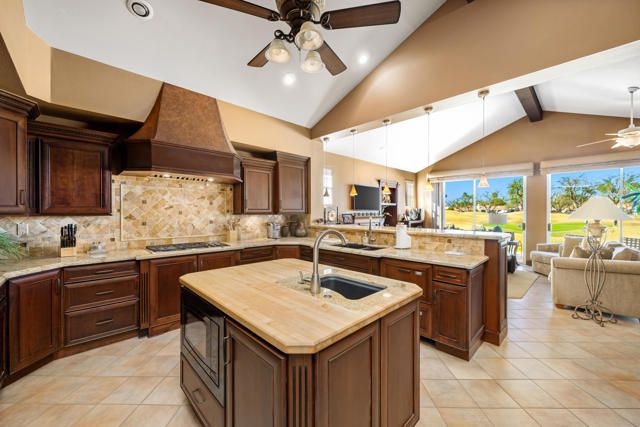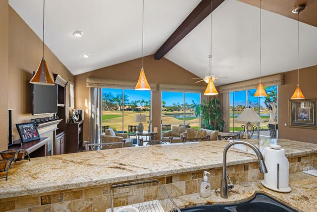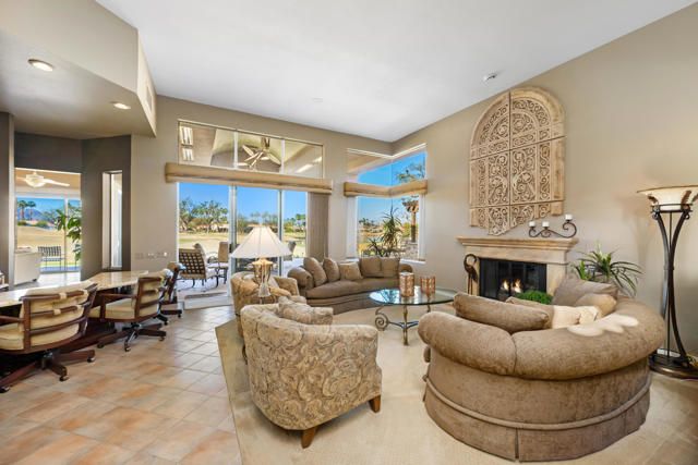 Nestled alongside the 7th green of the legendary TPC Stadium Course at PGA WEST, this home is a masterpiece of luxury and style. This stunning 3-bedroom, 3.5-bathroom, 3,450 sq. ft. home offers a rare blend of privacy, elegance, and breathtaking surroundings. Imagine viewing the serene lake views and the rugged beauty of the Santa Rosa Mountains, with every sunset painting a masterpiece just for you. The outdoor living space is an entertainer's paradise--picture yourself hosting unforgettable gatherings around the firepit or at the custom sit-down BBQ island, under the comfort of a large covered patio with overhead heaters and fans. It's the ultimate oasis for enjoying desert evenings with friends and family. Inside, the home's thoughtful updates and spacious layout elevate every moment. The fully remodeled kitchen is a chef's dream, while the luxurious primary bath, complete with a dual-head shower, offers a spa-like retreat. The redesigned sit-down bar is perfect for mixing cocktails and sharing stories, and the powder room adds a touch of sophistication. There are also 3 fireplaces that add to the comfortable feel of this home. A large courtyard provides even more options for outdoor relaxation or a perfect area for your canine friends. There is also a large 2.5 car garage with plenty of room for 2 cars and a cart. Whether you're savoring the iconic golf course views, unwinding in the comfort of your private retreat, or friends and family, this home embodies the best of desert living. Luxury, comfort, and an unbeatable location. Offered furnished