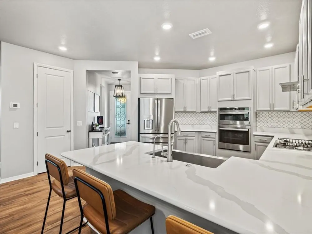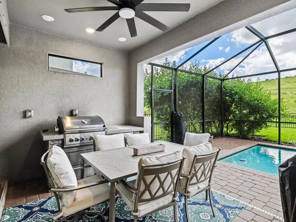 Welcome to The Heights at Grandview, a prestigious gated community where elegance and modern comfort come together in perfect harmony to create a lifestyle unlike any other. Nestled in one of the most picturesque and sought-after neighborhoods, this stunning residence captures the essence of refined living while offering the warmth and functionality that make a house feel like home. Step inside and be greeted by an inviting ambiance, highlighted by freshly painted interiors and newly installed luxury vinyl flooring that flows seamlessly throughout. The expansive kitchen serves as the heart of the home, featuring a gas cooktop, wall-mounted oven, pantry, striking backsplash, and generous counter space ideal for cooking and gathering. You will love the added bonus space downstairs that can be a man cave, den, or playroom. The opportunities are endless! The open-concept layout connects the kitchen to the dining and living areas, where large sliding glass doors frame the view of your private backyard retreat. Outdoors, discover a sparkling pool surrounded by beautiful brick pavers, a fully equipped outdoor kitchen, and a fenced backyard that makes entertaining effortless. Whether hosting friends for a summer cookout or enjoying a quiet evening under the stars, this fenced-in backyard oasis is designed for comfort and connection. Inside, the home offers the desirable double master suite option, with one suite conveniently located on the first floor and another upstairs, perfect for guests or multigenerational living. Each suite features dual vanities, a walk-in shower, and spacious closets that provide both luxury and practicality. Upstairs, a large bonus room and loft area create endless possibilities for relaxation or recreation. Whether you envision a media room, home office, play space, or reading nook, this flexible design adapts beautifully to your lifestyle. Two additional bedrooms complete the upper level, providing plenty of space for family or guests. Every detail of this home has been carefully curated for both comfort and elegance. Residents of The Heights at Grandview enjoy access to exclusive community amenities, including a private pool, basketball court, playground, and dog park, as well as opportunities for kayaking and paddle boarding on nearby Ward Lake. Best of all, the home backs directly to Mount Tumelo, a breathtaking, resident-only nature preserve featuring scenic walking trails, exercise stations, and serene overlooks. This exceptional home offers more than just a place to live—it offers a lifestyle defined by luxury, beauty, and the tranquility of nature. Experience life at The Heights at Grandview and discover what it truly means to live above it all.