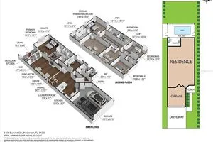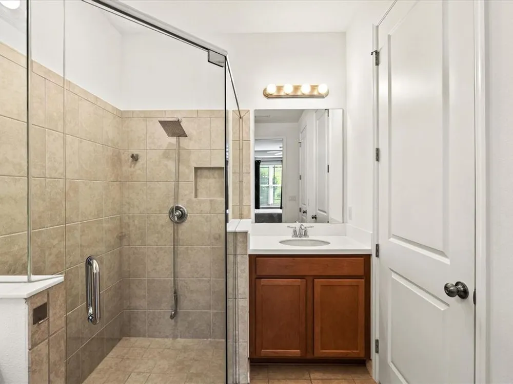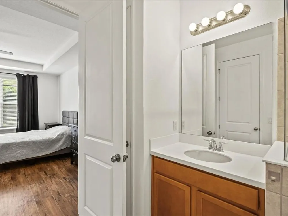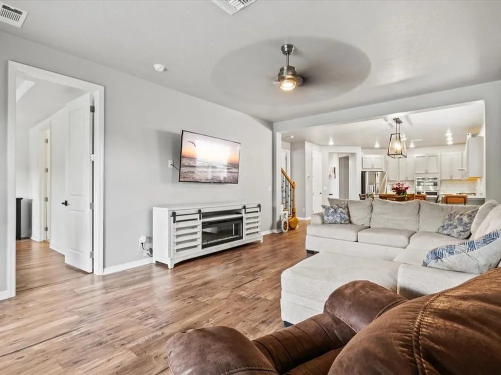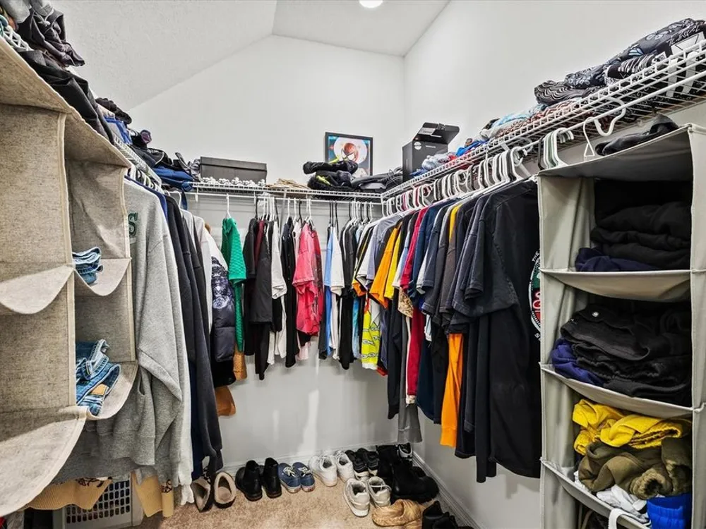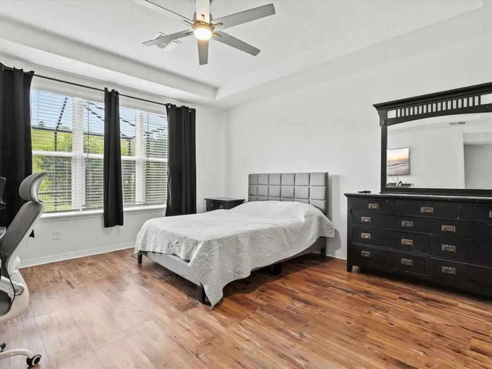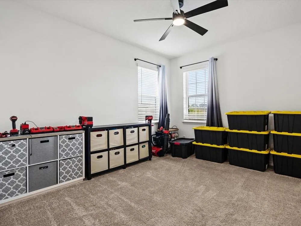 - Ceiling Fan(s), Open Floorplan, Main Level Primary, Upper Level Primary, Solid Surface Counters, Solid-Wood Cabinets, Split Bedrooms, Stone Counters, Thermostat, Walk-In Closet(s)