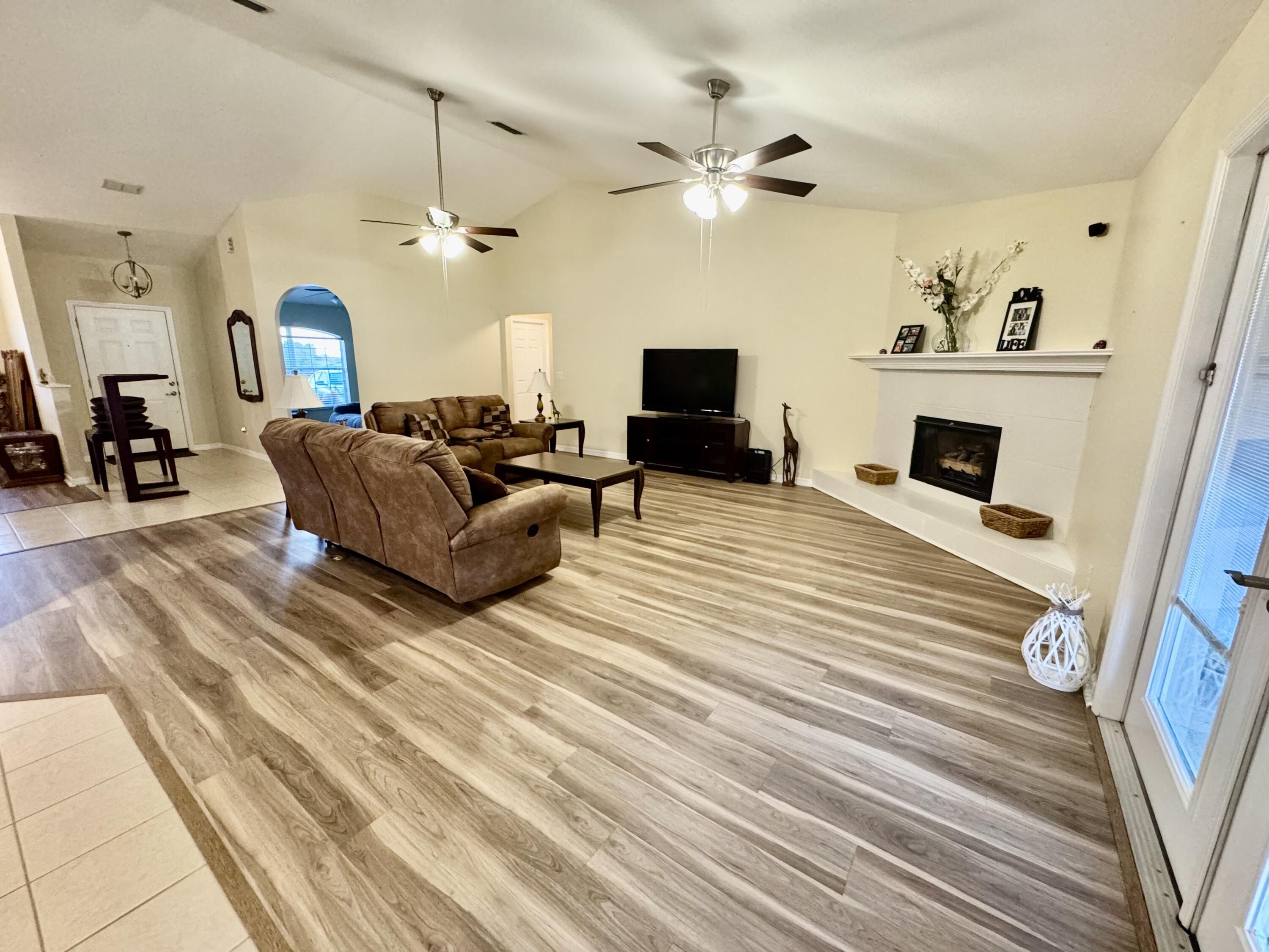 BUYER INCENTIVES AVAILABLE!!! Beautiful 3BR/2BA/2CAR/OFFICE pool home offers a mother-in-law suite with a kitchenette and private entrance, perfect for family or extra rental income. Enjoy this well-maintained, worry-free home with a new roof (2022) and water heater, new laminate flooring throughout, oversized garage with golf cart parking, large sparkling salt pool, and an oversized, private, fenced yard. Along with spacious, open, and split floorplan, vaulted ceilings, a gas fireplace, an eat-in kitchen, and formal dining. Located in a quiet area, easy living, 10 minutes to WEC, shopping, dining, and parks. Very low HOA! Move-in ready and full of potential!