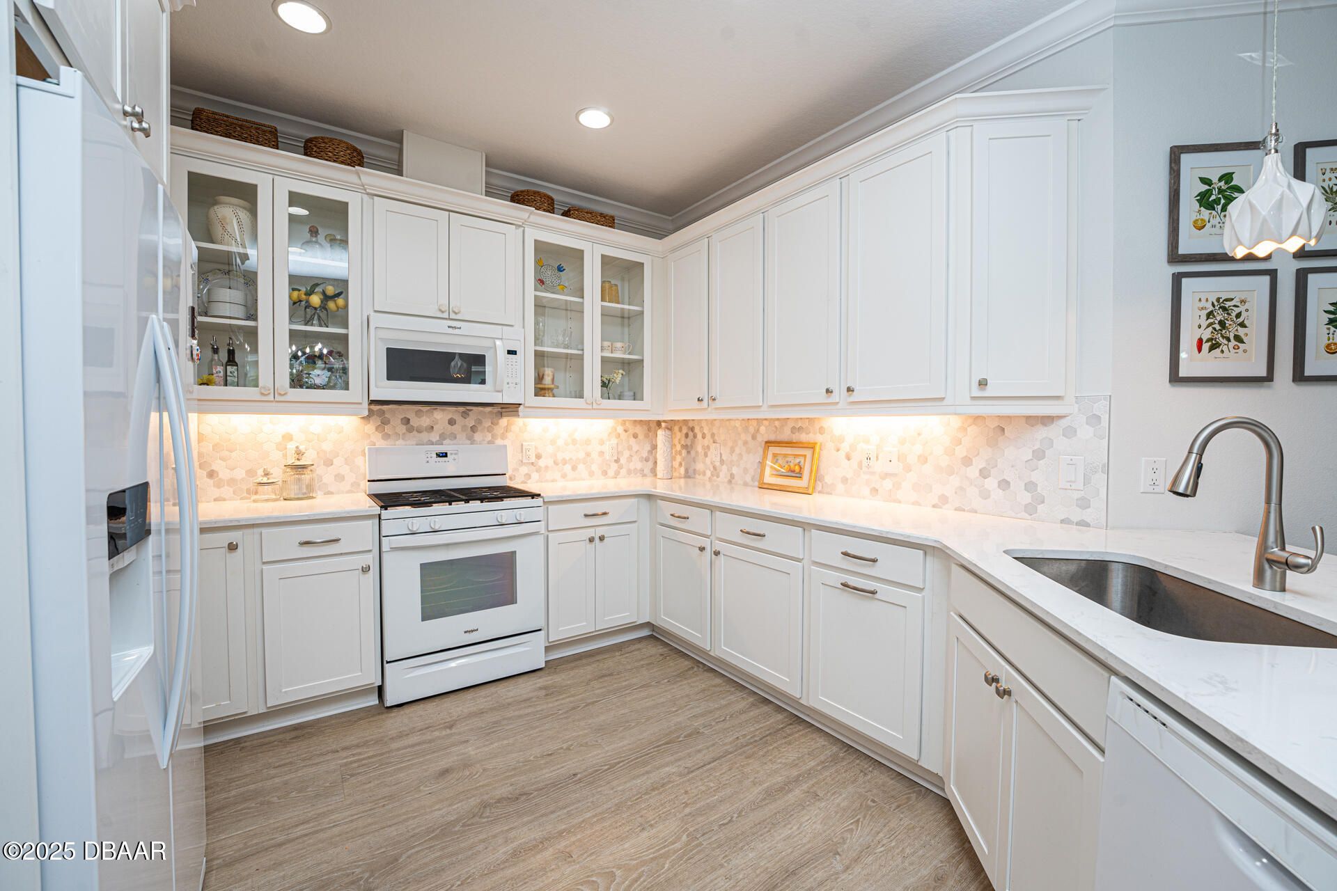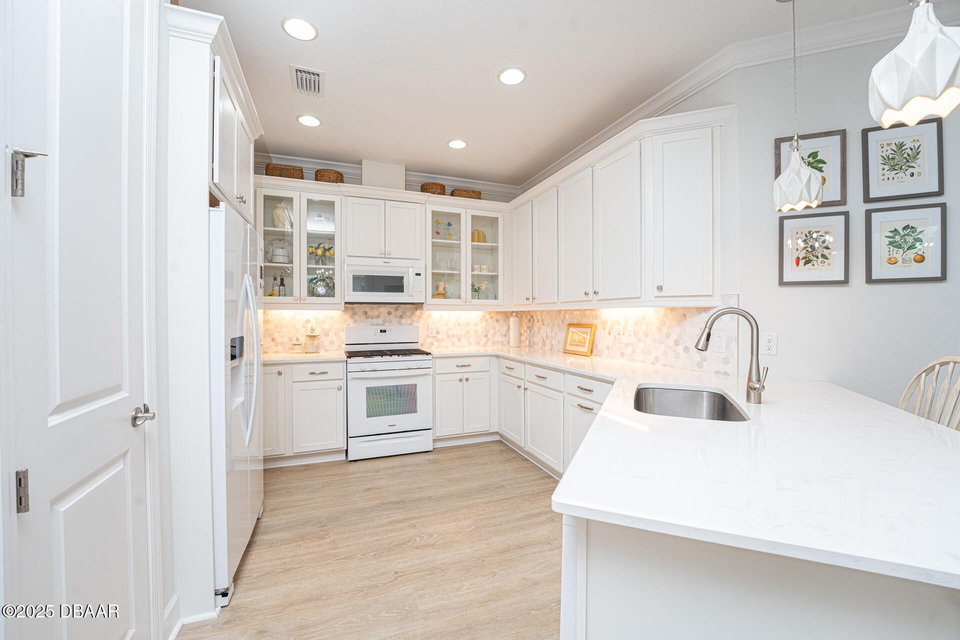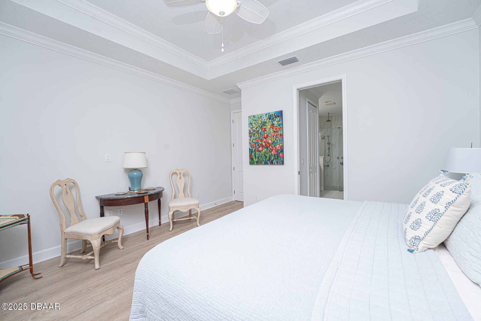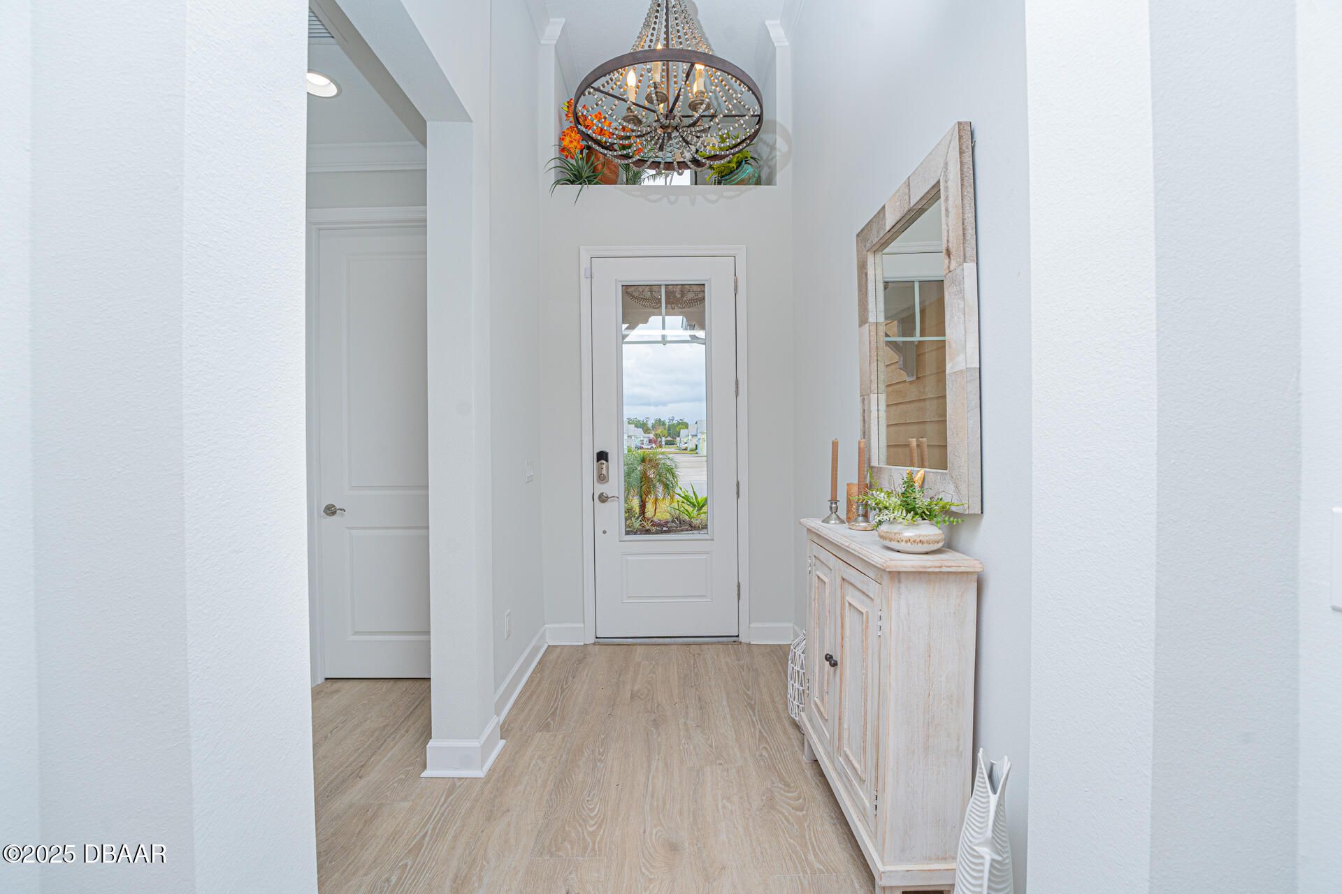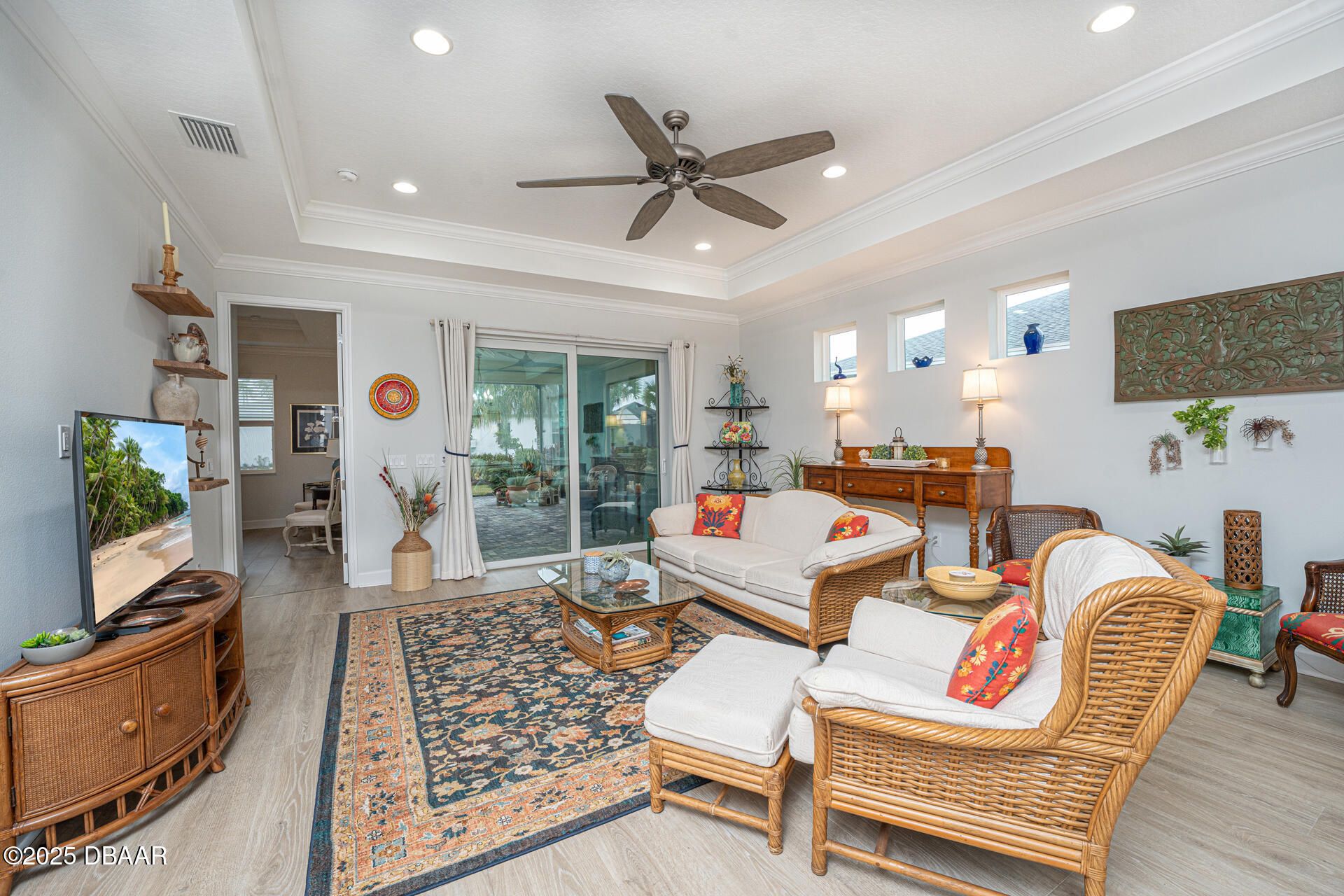 Welcome to PARADISE! Discover this turnkey highly upgraded NEVIS model in the 55+ community of Latitude Margaritaville! This thoughtfully designed villa includes 2 bedrooms, 2 bathrooms, as well as a flex room and an office for comfortable everyday living. Enter from the paver driveway through an elegant glass front door into a welcoming foyer with high ceilings and 8' doorways throughout. Off to the right you will find the guest bedroom featuring a bay window that adds space and natural light, along with a large closet with wood shelving. The adjacent bathroom includes a tub with floor-to-ceiling tile, grab bar, and a quartz countertop with cabinet storage below. The home offers both a flex room and separate office, each featuring 8-foot two-panel doors and recessed lighting. The office can easily be converted into a third bedroom with adding a simple closet. The kitchen features 42" soft-close cabinetry topped with crown molding, under-cabinet lighting, four clear-glass display uppers, white appliances including a gas range, quartz countertops, neutral tile backsplash, plus upgraded pendant lighting. It flows seamlessly into the dining and living areas with a tray ceiling and architectural transom windows. Step outside with your impact sliding glass doors to the extended screened lanai with pavers, gas line, and a 220 outlet. The primary suite features a tray ceiling, two walk-in closets with wood shelving, and spa-like ensuite with a pocket door. The bathroom includes a frameless glass walk-in shower, rain showerhead, built-in bench, pebble flooring, tile to the ceiling, and grab bars. Double sinks with quartz countertops, cabinets and drawers below to complete the space. Additional features throughout include: luxury vinyl plank flooring, decorative crown molding, 5¼" baseboards, energy-efficient Low-E double-pane windows, upgraded light fixtures and recessed cans with dimmer switches in the kitchen and dining room. The 2-car garage includes a utility sink, Emporia electric car charger, RainSoft water system and a tankless hot water heater. Beyond the home, enjoy the Latitude Margaritaville lifestyle with resort-style pools, a fully equipped fitness center, on-site dining and theater, daily live music, pickleball and tennis, dog park, art studio, plus a private beach club with shuttle service, and so much more! Square footage received from tax rolls. All information recorded in the MLS intended to be accurate but cannot be guaranteed. 2021 Roof | 2021 HVAC | 2021 Tankless Hot Water Heater