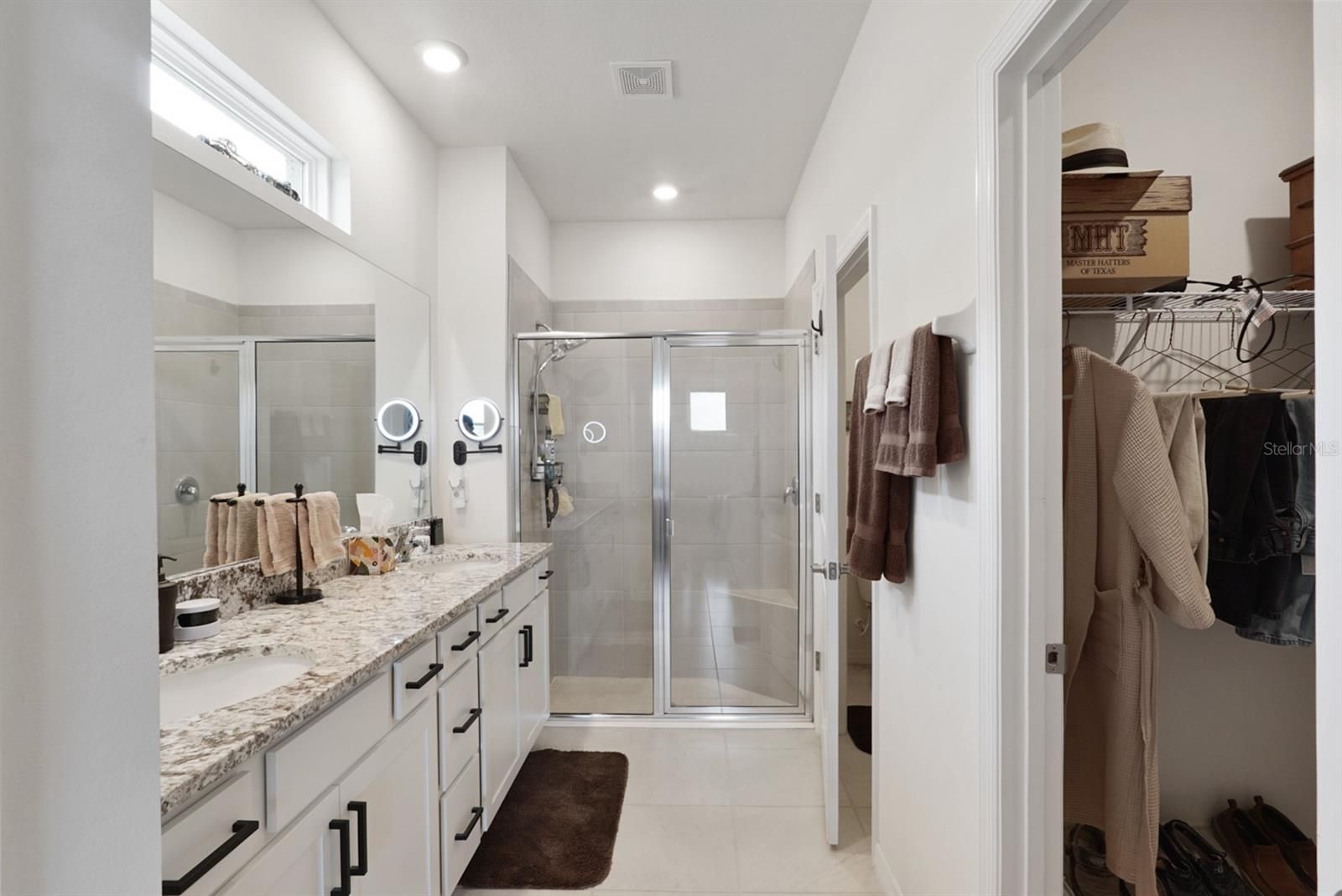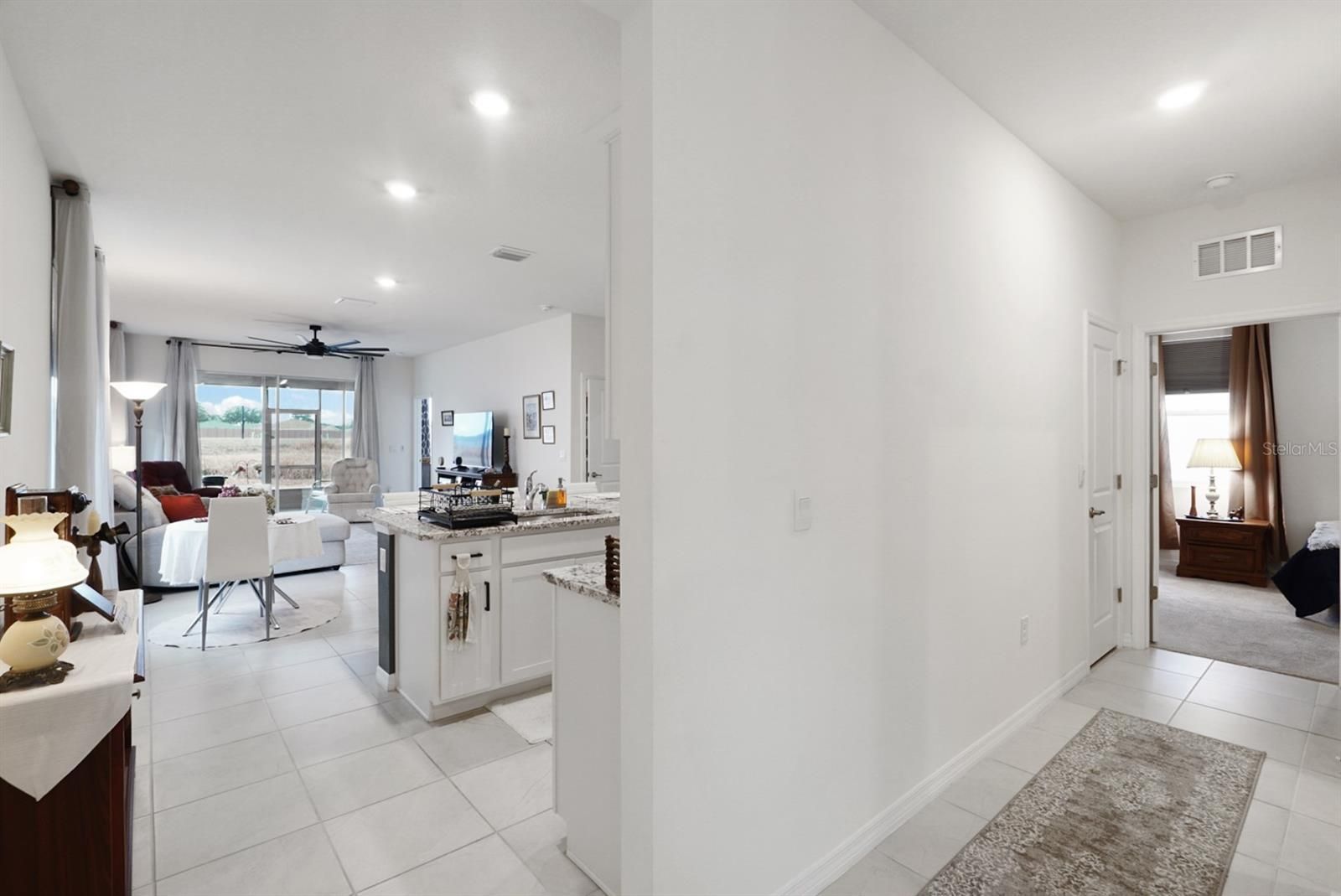 - Ceiling Fan(s), Living/Dining Room, Smart Home, Solid Surface Counters, Split Bedrooms, Stone Counters, Walk-In Closet(s), Window Treatments