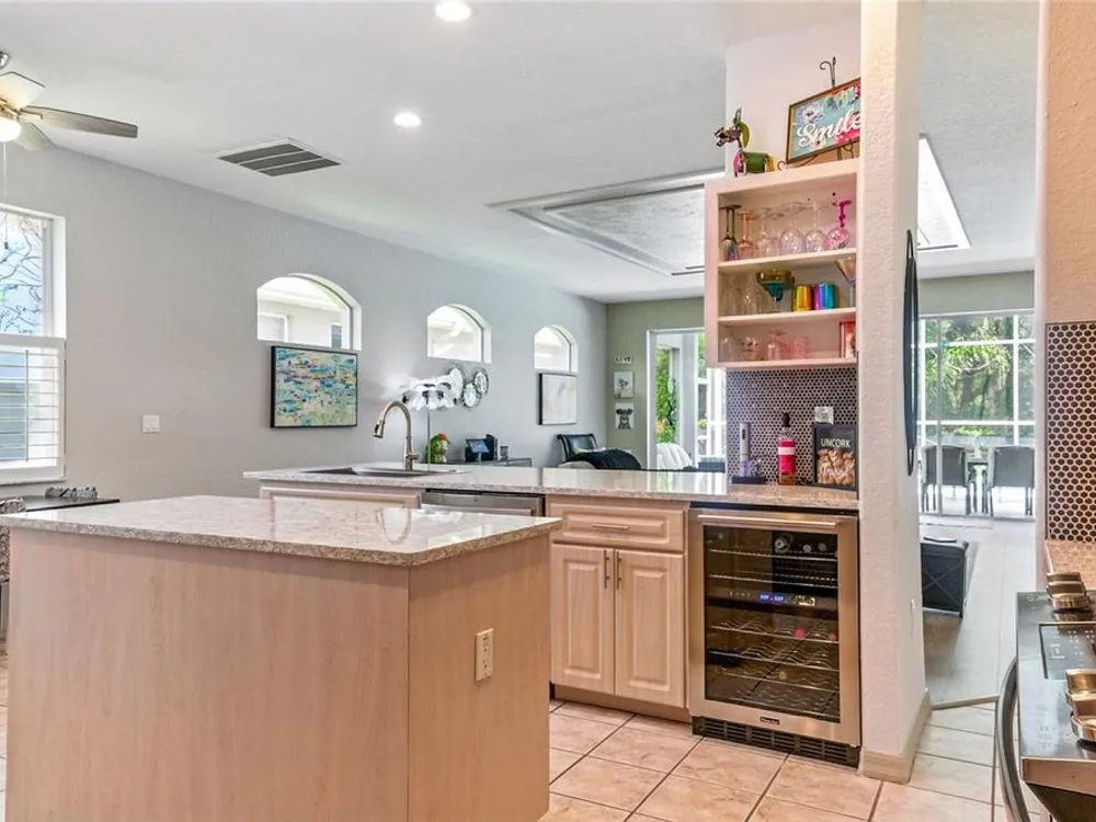 Immaculately Maintained, Move-In Ready Villa with Pool and No Rear Neighbors! Welcome to this beautifully maintained 2-bedroom, 2-bath detached villa with a versatile flex room - perfect as a home office, den or third bedroom. Located in the maintenance-free Villas of Silverthorn, this spacious home offers over 1,700 sq. ft. of open living space, a 2-car garage and your own private, screened-in pool - ideal for both relaxing and entertaining. The light, airy chef's kitchen is a dream, featuring: tile flooring, center island, butler's pantry, new appliances including a wine/beverage refrigerator, range with built-in air fryer & convection oven, breakfast nook and bar seating — all complemented by stunning quartz countertops. The open-concept living room boasts four sliding doors that lead to your private pool oasis. The primary suite offers direct pool access, dual sinks and a recently updated bathroom with a stone-surround soaking tub and walk-in spa-like shower. The second bedroom is ideal for guests or a mother-in-law suite. Other recent upgrades include: New roof (2023), New high-efficiency 4-ton AC system with all ducts cleaned, installed a media filter & dual HALO UV lights to inhibit mold, bacteria & viruses (2023), New luxury vinyl plank flooring in living room, foyer & primary suite, new carpet in guest bedroom, New front door & single hung/Low-E windows (except the kitchen & guest room windows), New pool heater & pump, plus reinforced pool deck with polyurethane foam for added durability and fresh mulch throughout. Located in Silverthorn, a gated, golf course community featuring: Award-winning Joe Lee designed golf course, clubhouse, restaurant, community center with ball room, craft room & library, community pool with new pool furniture & covered gazebo, tennis, pickleball & basketball courts, fitness center with state-of-the-art equipment and playground. HOA fees include: high-speed internet, upgraded cable with DVR, exterior painting every 7 years and full landscape maintenance. Conveniently located - less than 10 minutes from the Suncoast Parkway for an easy commute to Tampa and Tampa International Airport. Close to shopping, dining, medical facilities, outdoor attractions like kayaking/canoeing at Weeki Wachee Springs, walking trails at Veterans Memorial Park, Beaches and the Gulf of America. **Notice: The irrigation system is maintained by the HOA and has had a known material defect since being converted from the golf course wells to HOA owned wells. Silverthorn's zip code of 34609 may show up as Spring Hill OR Brooksville.**