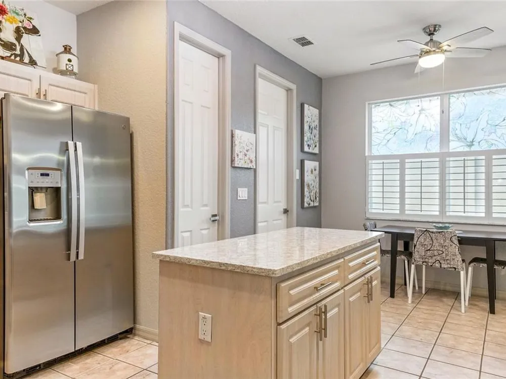 - Ceiling Fan(s), Eat-in Kitchen, High Ceilings, Kitchen/Family Room Combo, Open Floorplan, Stone Counters, Walk-In Closet(s), Window Treatments