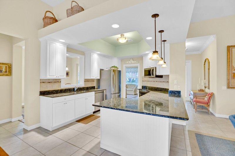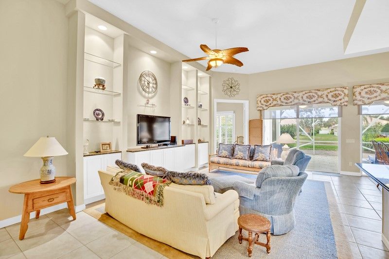 Beautifully crafted Lakefront "Carlyle" model:Divosta built, solid construction, poured concrete offers a timeless design. Generous living and dining areas flow seamlessly into the kitchen, creating a bright welcoming atmosphere w/natural light. Generac generator (500 gallon tank), accordion shutters, large screened patio area to maximize southern exposure. Impeccably maintained. Rmszapprox