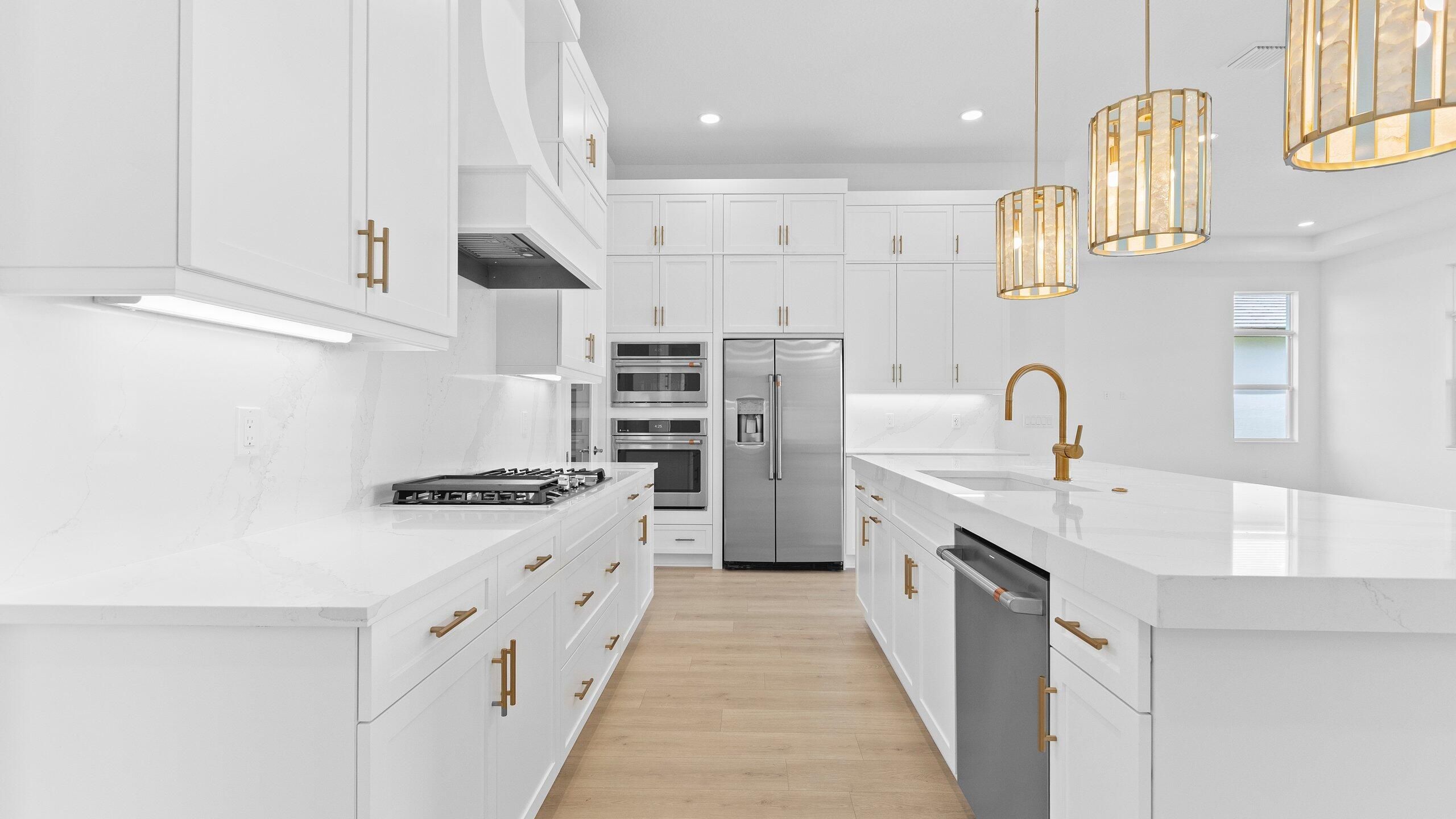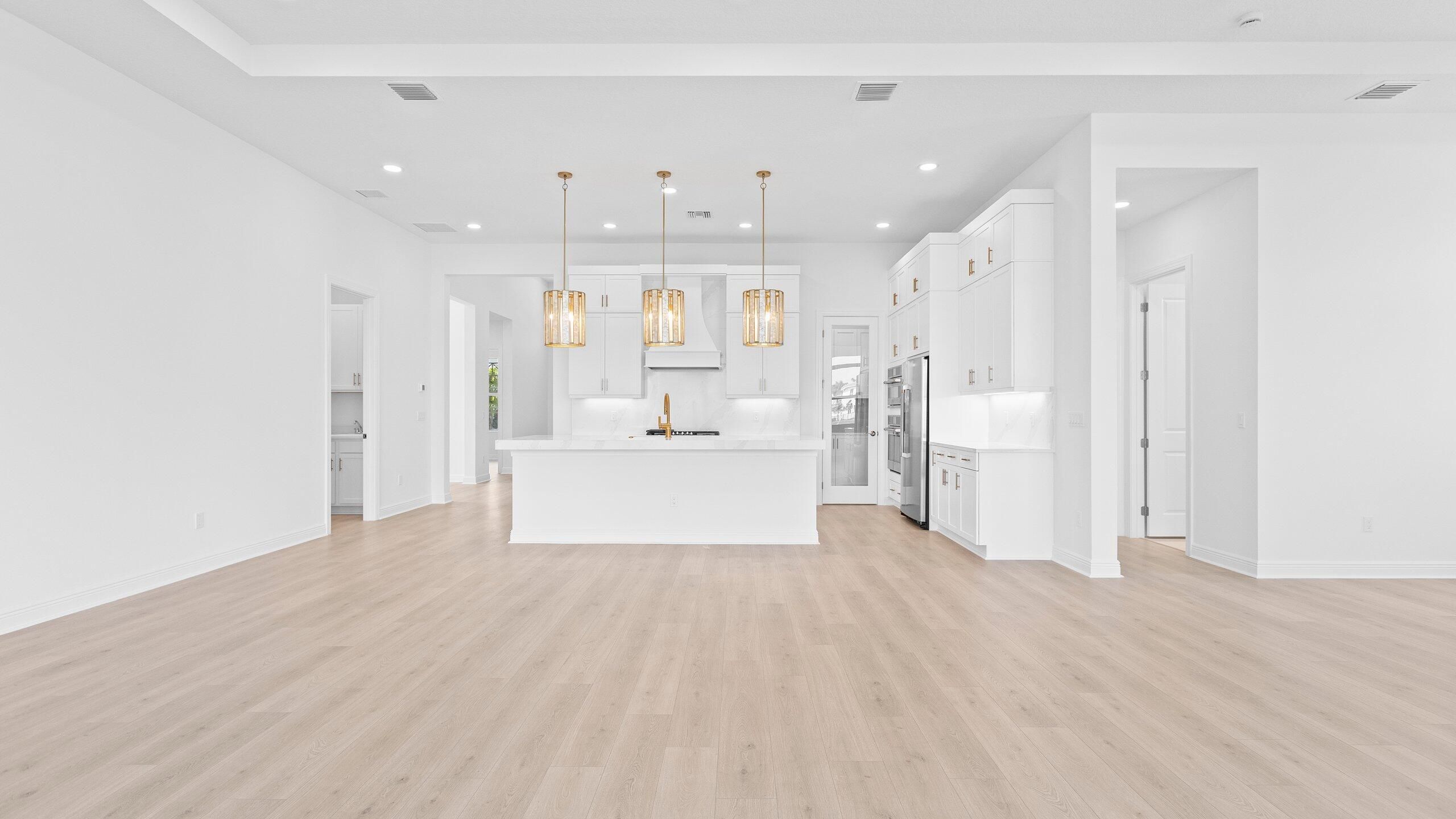 Brand-new waterfront home in the 55+ community of Cresswind at Westlake. Open-concept design with stunning lake and sunrise views, perfect for entertaining and everyday living. The upgraded kitchen features GE Café appliances, quartz countertops, and a large walk-in pantry. Triple-split bedroom floor plan plus a versatile flex room ideal for office, den, or hobby space. LVP flooring throughout the entire home. Primary suite overlooks the water and offers an oversized closet. Great room enhanced with oversized slider for seamless indoor-outdoor living. Covered patio with peaceful water views. Energy-efficient with natural gas for cooking, water heater, & dryer. HOA includes gated security, lawn care, and access to resort-style amenities: clubhouse, pool, fitness center, pickleball, tennis, dog park, and more. Convenient to shopping, dining, and all Westlake and Palm Beaches attractions.