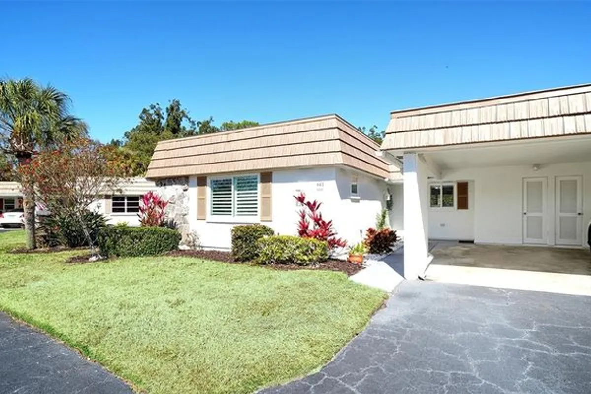 Welcome to Strathmore Riverside, a highly desirable 55+ waterfront community on Phillippi Creek with access to the Gulf of Mexico and just 1.9 miles from the Siesta Key South Bridge. World-famous Siesta Key beaches and Detwiler's Farm Market are only minutes away. This beautifully updated 2-bedroom, 2-bath villa offers 1,120 square feet under air with a desirable split floor plan. Luxury vinyl plank flooring runs throughout, complemented by high baseboards, recessed lighting, upgraded ceiling fans, and quality doors and hardware. The renovated kitchen features quartz countertops, modern wood cabinetry, stainless steel appliances, with a beautiful island for entertaining. Recessed tray ceiling and coordinating finishes create a seamless flow into the dining and living areas. Access to your own outdoor grilling area is conveniently located just outside. Enjoy a quiet, private backyard with expansive open green space and no homes directly behind you, offering added privacy and peaceful views. Both bathrooms have been upgraded with quartz countertops, updated vanities, and modern fixtures. Custom built-in plantation shutters gives you lots of privacy through out the home. Windows have also been replaced. The attached laundry room is located under the covered carport and includes additional storage space. Community amenities include a heated pool, clubhouse, fitness center, sauna, library, recreational facilities, and an active social calendar. Boat slips are available for an additional fee. (waiting list may apply). Enjoy low-maintenance living, with basic cable, water, trash, sewer included in your monthly dues.
