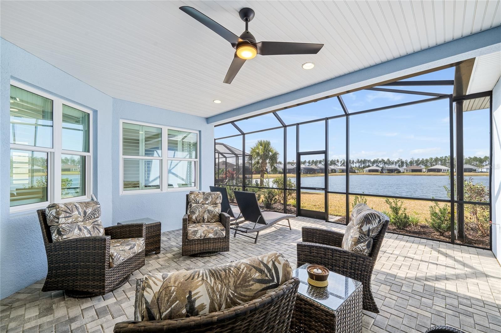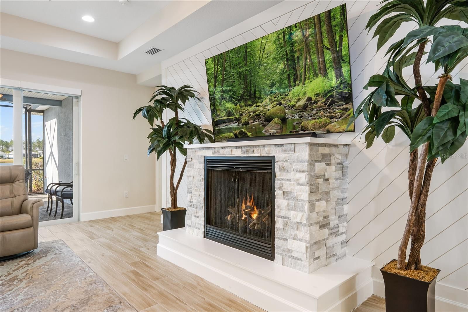 ENJOY THE AMENITIES!!! Private Beach Club with pool on the ocean in Ormond Beach and a coach bus to take you there On-site resort style pool, sports pool, indoor pool, and hot tub TOWN CENTER has a theater, restaurant/bar, fitness center, woodwork shop, Pickleball, tennis, & bocce courts, daily music, and weekend concerts and shows. Low HOA fees includes all the above plus lawn care Welcome to this beautifully upgraded, nearly new 2023-built home located in one of Daytona Beach’s most desirable newer communities. Offering over 2,500 square feet of living space, this thoughtfully designed residence features 3 bedrooms, 3.5 bathrooms, a dedicated den, and a 3-car garage, combining modern design with high-end finishes throughout. The chef’s kitchen is a true highlight, featuring quartz countertops, upgraded stainless steel appliances, a gas cooktop, double wall ovens, 42-inch upper cabinets, under-cabinet lighting, and a tile backsplash. The open-concept layout flows seamlessly into the living and dining areas, enhanced by tile flooring throughout, 8-foot interior doors, upgraded baseboards, and a gas fireplace that adds warmth and character. The primary suite offers a private retreat with two walk-in closets and a spacious bathroom featuring a large walk-in shower with handheld shower head and tile extending to the ceiling. Bathrooms and laundry areas include granite countertops, abundant cabinetry, and thoughtful storage solutions, including extra cabinetry in the laundry room, powder room, and primary water closet. The laundry room also includes a utility sink and additional cabinets. Additional upgrades include plantation shutters on all windows, custom adjustable closet organizers throughout, soft-close upgraded cabinetry, ceiling fans and lighting in every room, a built-in desk in the den, and a keyless front entry. Enjoy Florida living year-round on the expanded and screened lanai, complete with powered drop-down screens on the sliding glass doors. This home also features a whole-house water filtration system, whole-house surge protector, gutters, a Polyurea-coated garage floor, and a floor outlet in the living room. Thoughtfully upgraded and meticulously maintained. This move-in-ready home offers the best of modern Florida living with convenient access to shopping, dining, and everything Daytona Beach has available.