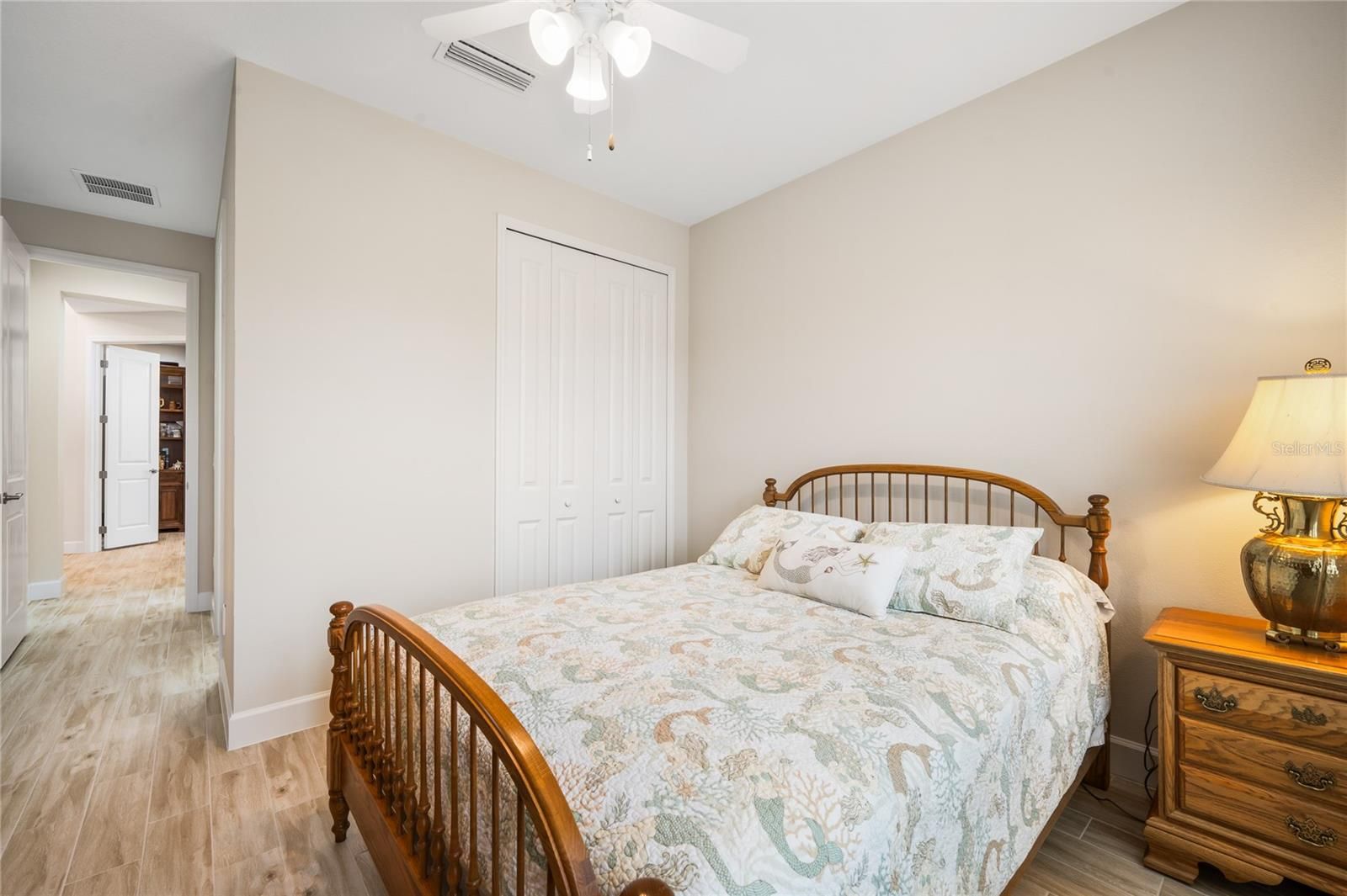 - Ceiling Fan(s), Central Vacuum, Solid Surface Counters, Split Bedrooms, Thermostat, Walk-In Closet(s)