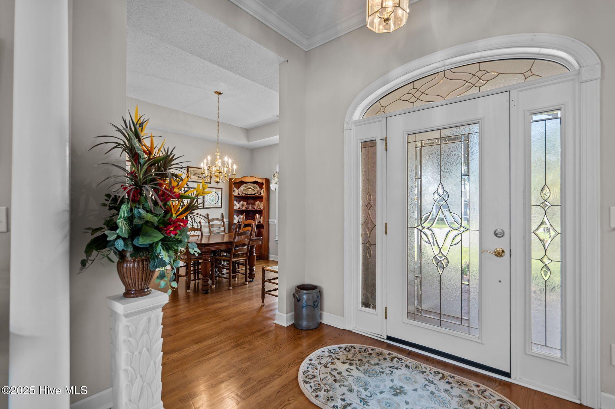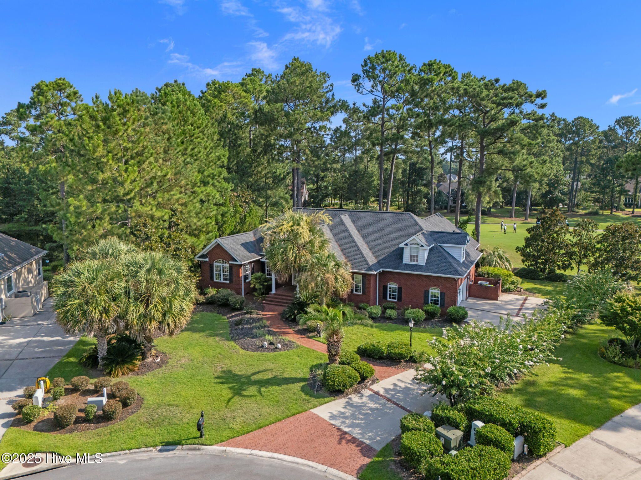Exquisite custom brick home on a signature golf course with island green views! This superb custom-built, 4 bedroom, 3 bathroom brick home, beautifully situated on a signature golf course, directly overlooking the coveted island green tee box. Impeccably crafted, this residence combines a functional, open-concept floorplan with timeless hardwood floors, creating a sense of warmth and sophistication throughout. The entire home captures the magic of this premium lot beautifully landscaped with a myriad of mature trees including tall pines, crepe myrtles and swaying palms and the ever-entertaining view of the tee box right off your backyard. It is a golf lovers paradise! You'll have exceptional views of one of the signature & most challenging holes, #4 on the Azalea course at Brunswick Plantation & the island green!! The spacious & bright kitchen with granite counters and plenty of beautiful cabinets has an island and flows effortlessly to the formal dining room or cozy breakfast nook, to dine with a golf course view. The heart of the home is it's bright & airy grand living room framed with elegant built ins and a cozy gas log fireplace. Step outside to a tranquil elevated brick patio to relax and enjoy the views and add your grill to the convenient propane gas hookup, screened in porch, and an irrigation system to help care for lush and beautiful landscaping. From the entry way, the secondary bedrooms offer privacy and great function with shared full bath and the third bedroom offers direct access to the screened in porch overlooking the backyard and connecting to the elevated patio. Upstairs you'll find the 4th bedroom with a full bath and substantial attic storage with a world of possibilities whether you'd like a spare guest room, secluded office or work out space. You'll also enjoy an oversized sideload garage with extensive storage options. As a resident of Brunswick Plantation, you can