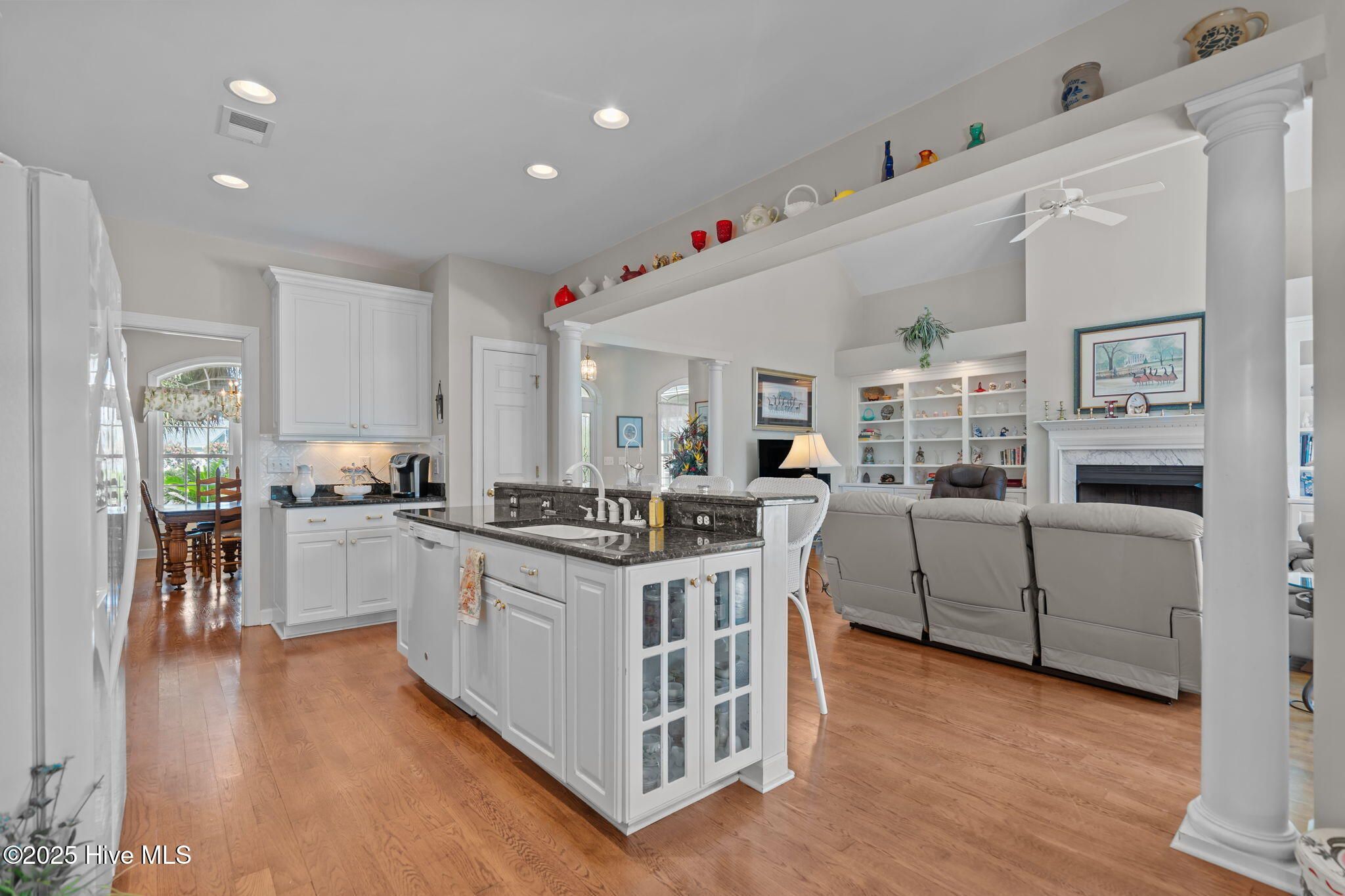 - Blinds/Shades, Tray Ceiling(s), Vaulted Ceiling(s), Gas Log, Pantry, Master Downstairs, Kitchen Island, High Ceilings, Ceiling Fan(s)