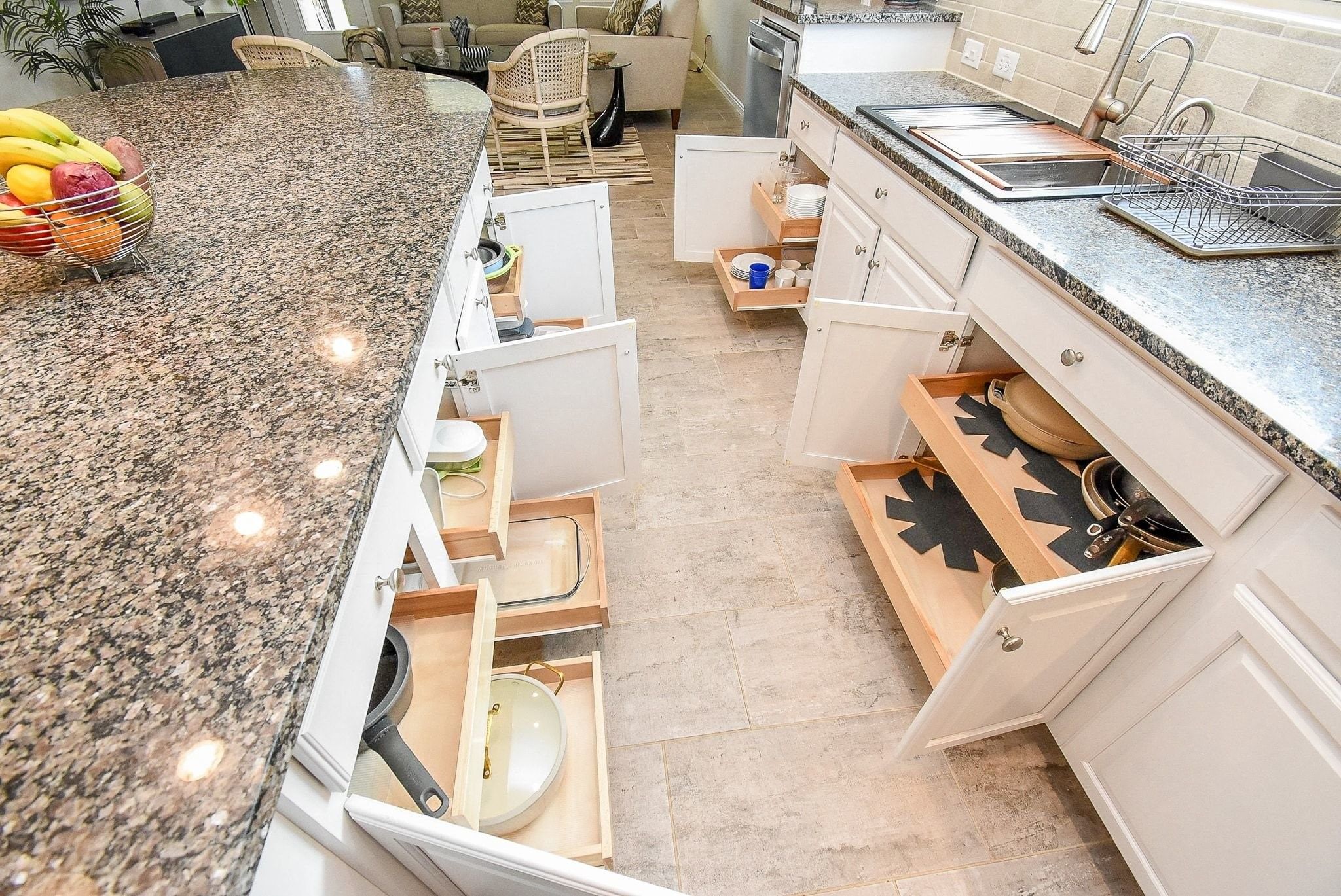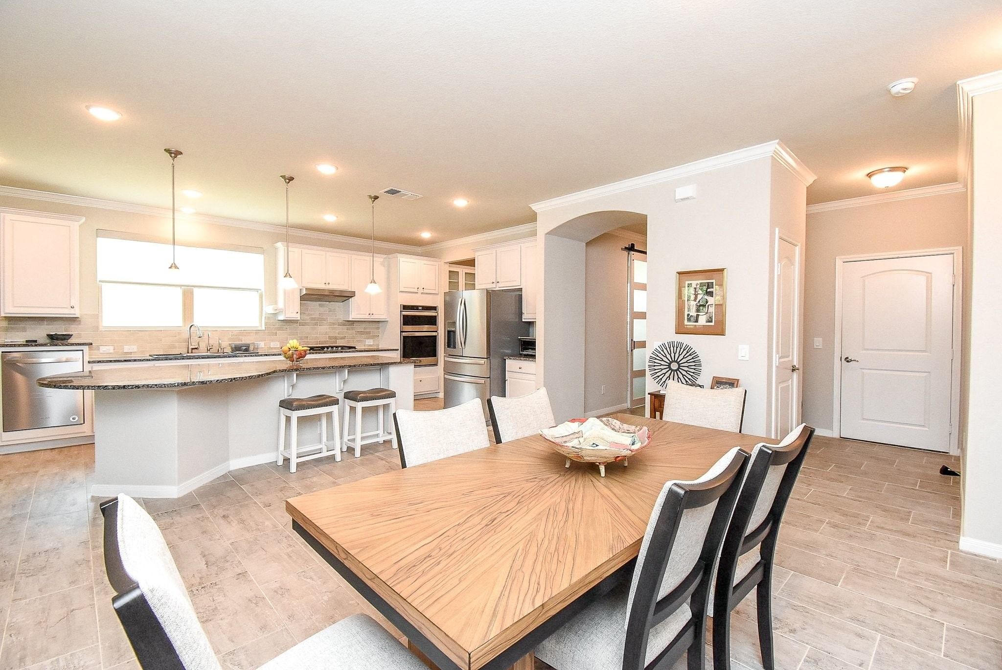 - Breakfast Bar, Butler Pantry, Crown Molding, Double Vanity, Handicap Access, High Ceilings, Kitchen Island, Kitchen/Family Room Combo, Pots & Pan Drawers, Pantry, Tub Shower, Walk-In Pantry, Window Treatments, Ceiling Fan(s), Kitchen/Dining Combo, Living/Dining Room, Programmable Thermostat