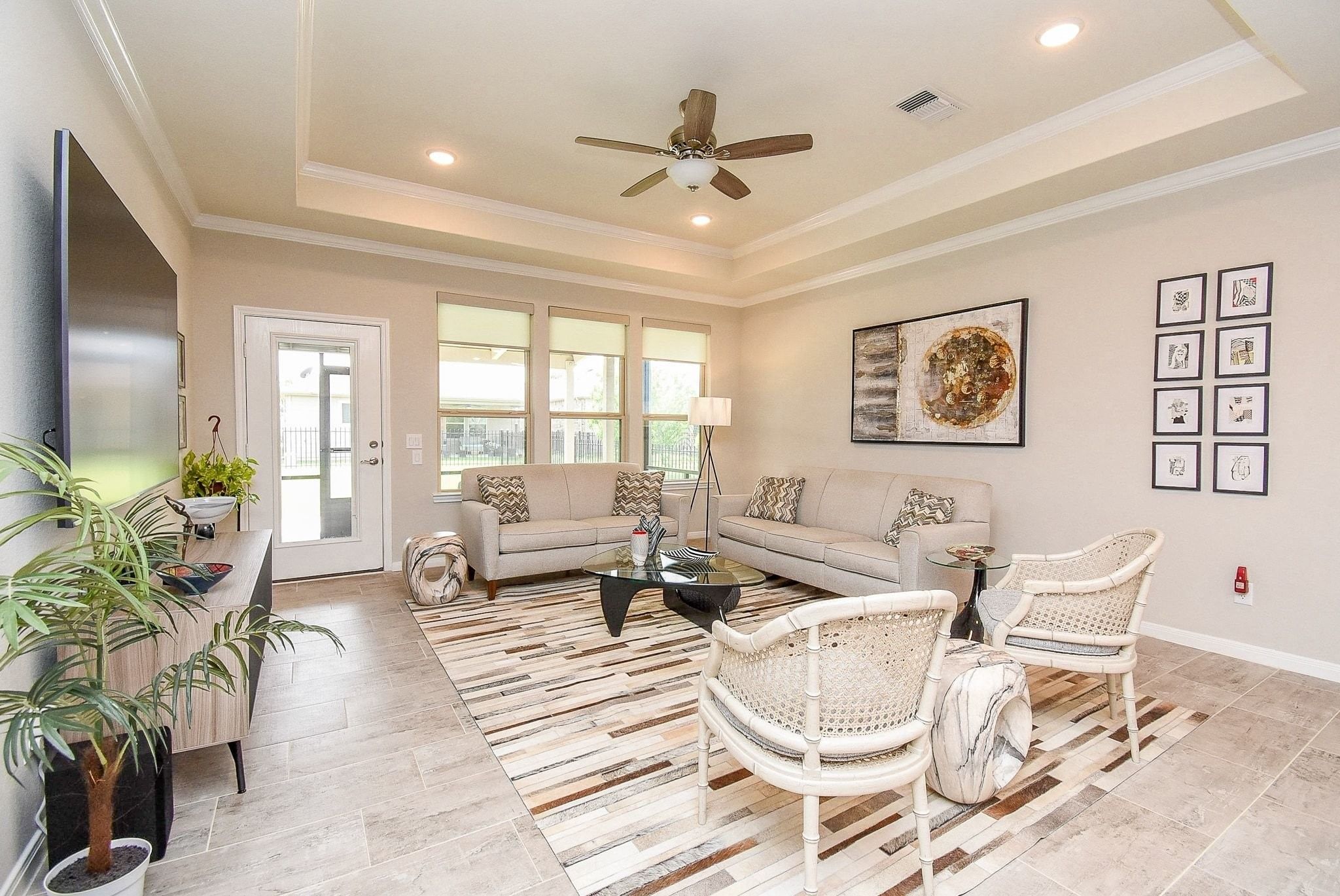 Welcome to Del Webb Sweetgrass! Experience luxury in this highly-coveted Martin Ray resale (3BR/2BA + Study). The chef’s kitchen features linen cabinetry, a butler’s pantry, walk-in pantry, custom roll-outs, and a new top-of-the-line garden sink. Enjoy a carpet-free interior with gleaming ceramic tile and luxury laminate in the bedrooms. The living area impresses with tray ceilings and automated blinds, while the primary bath offers a remodeled spa shower and roll-out storage. Relax in your private oasis: a screened-in patio plus an extended patio with a pergola in a fully fenced yard. Modern essentials include a whole-home generator and water softener. Refrigerator and brand-new washer and dryer convey! This move-in-ready gem offers high-end tech and sophisticated finishes that surpass standard builds. Experience the lifestyle you've earned—schedule your tour today!