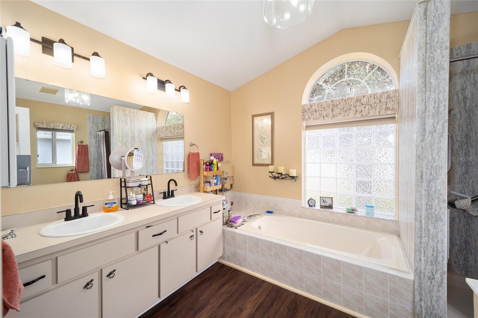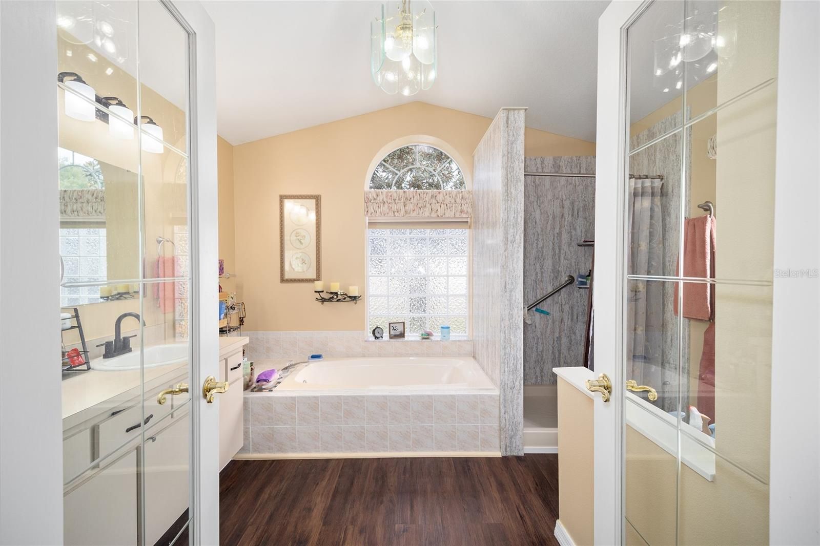- Ceiling Fan(s), Living/Dining Room, Main Level Primary, Tray Ceiling(s), Vaulted Ceiling(s), Walk-In Closet(s), Window Treatments