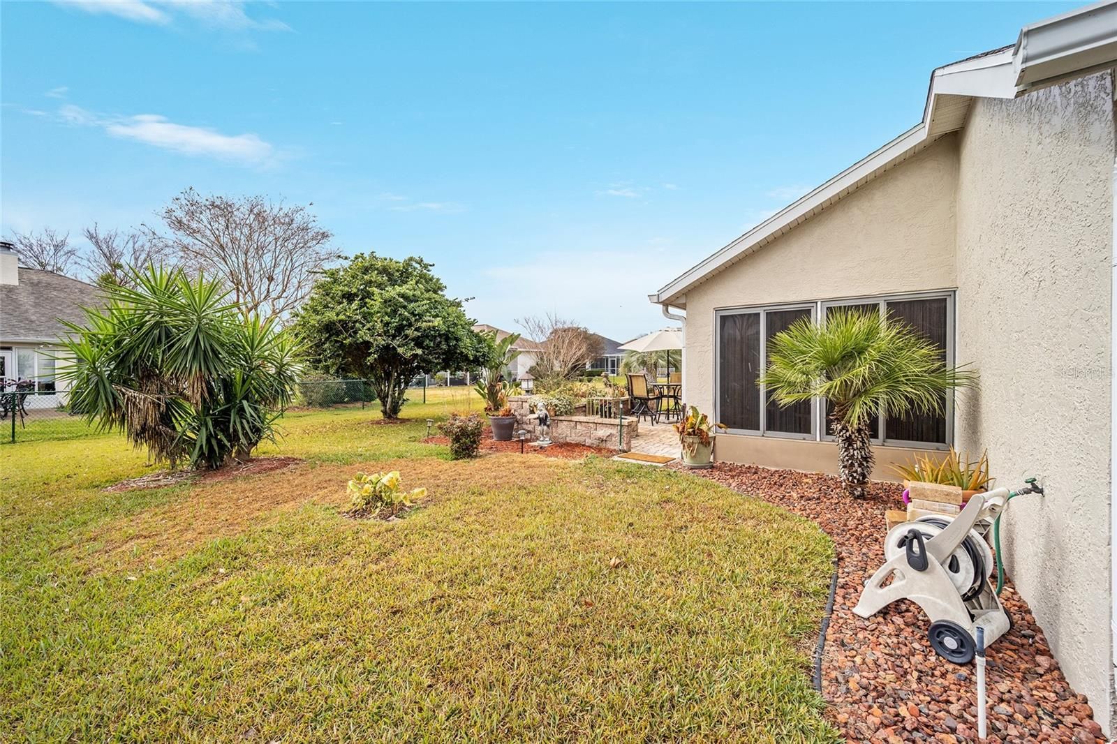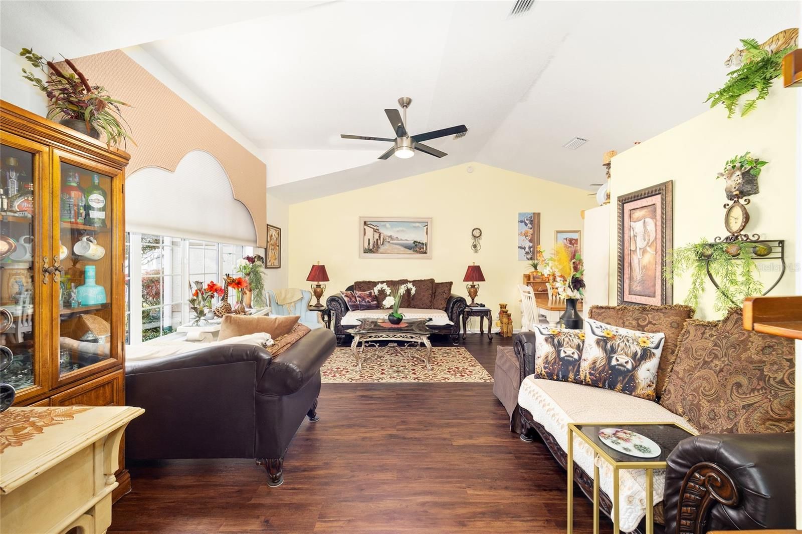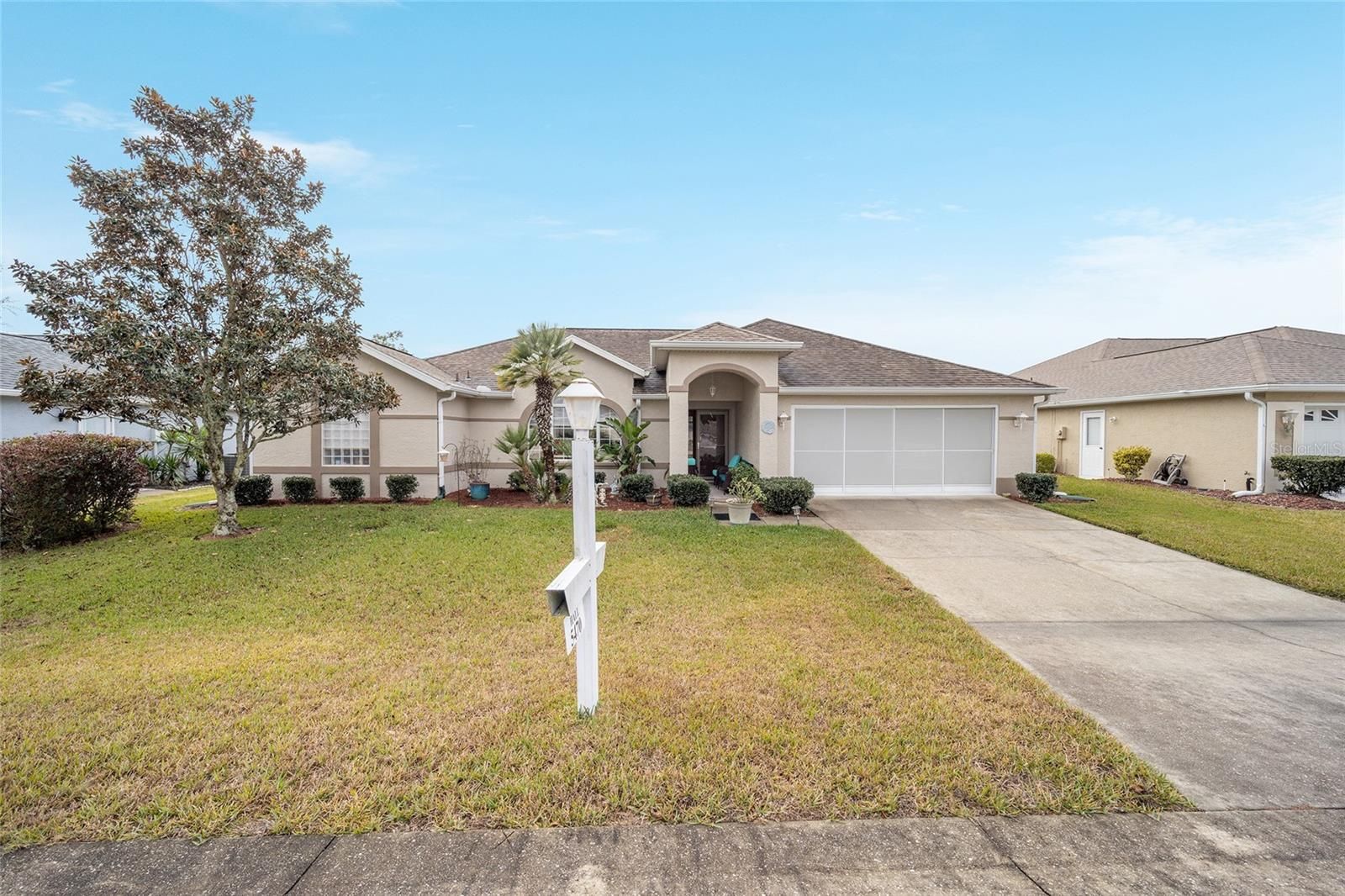 Take a second look! You now have 12,100 reasons to make an appointment! Huge price improvement of $12,100.00. Here's your opportunity to own this well maintained home in Ocala Palms. The split plan layout is convenient for entertaining. The living room dining combo and the family room on the opposite side (with the kitchen in the middle) makes it great for entertaining. All 3 areas have access to the lanai through sliding glass doors. The lanai (with custom ceiling and new carpet) and sliding windows to enjoy the cool air. Through the lanai you have access to enjoy the 10x20 paved patio with firepit & BBQ'S. The primary bedroom has a tray ceiling and his & hers walk in closets. Glass doors lead to the large bathroom with new (20K) solid surface walk in shower with a drop down seat and safety bar. Large soaker tub and vanity with double sinks and new faucets and new commode. Guest bedroom (11x15) has a tray ceiling and is situated on the opposite side of the primary bedroom, giving it privacy. Guest bath has a tub and shower. Inside laundry for convenience. Upgrades include Luxury Vinyl Plank, tile in kitchen, 6 new fans with light kits, new faucet in kitchen and guest bath. New fresh exterior paint 2023. Microwave & Dishwasher 2024. Roof 2014. Extra insulation in attic & new privacy screen in garage. Location is convenient to shopping, dining and medical facilities. Publix, Walgreens & Golds gym are across from Ocala Palms entrance. Minutes to the World Equestrian Center. 90 minutes to Daytona Beach & Disney World. Make your appointment to view this gem today.