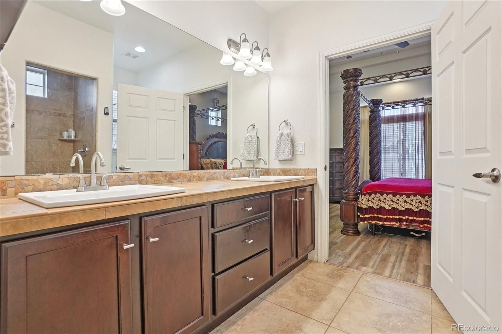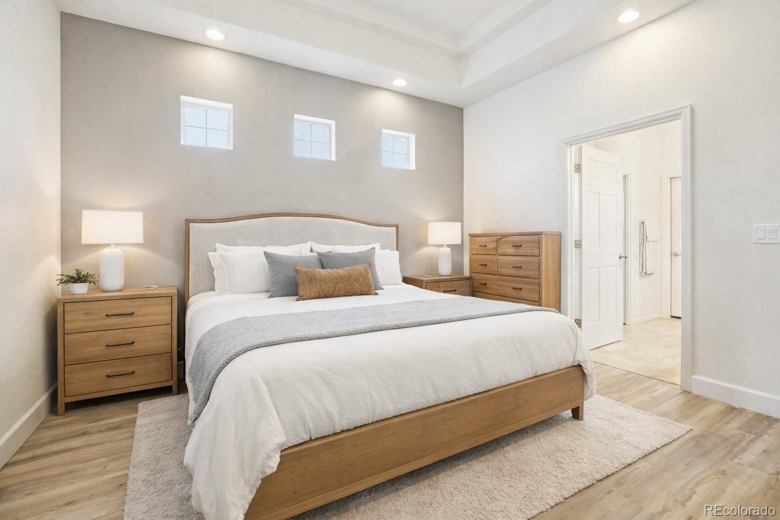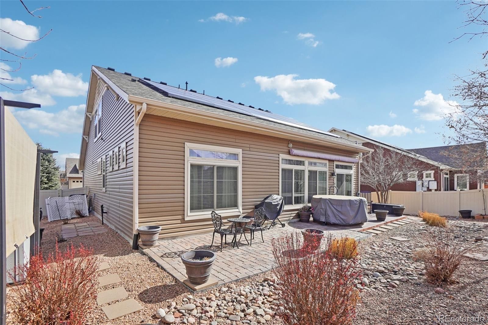 Please note there is not a yard sign as per seller's request! Welcome to this thoughtfully designed home featuring a modern first floor with a spacious kitchen island that flows seamlessly into the formal dining and sitting areas, perfect for entertaining or daily living. The primary bedroom offers an ensuite bath with dual sinks, a walk-in shower, and a walk-in closet, while an additional first-floor bedroom and full bathroom with a handicap-accessible tub provide comfort and convenience. Upstairs, two bonus rooms offer versatile space ideal for a media room, office, or extra living area. Enjoy the outdoors in the fully fenced yard with a patio, hot tub, retractable awning, and xeriscaping. This area is perfect for relaxing or hosting gatherings. Located in a vibrant 55+ community, the home is close to nearby parks, shopping centers, and dining options, making it easy to enjoy both convenience and community charm. Bonuses include new hot water heater, appliances, newer windows and EV plug in! Click the Virtual Tour link to view the 3D walkthrough. Discounted rate options and no lender fee future refinancing may be available for qualified buyers of this home.