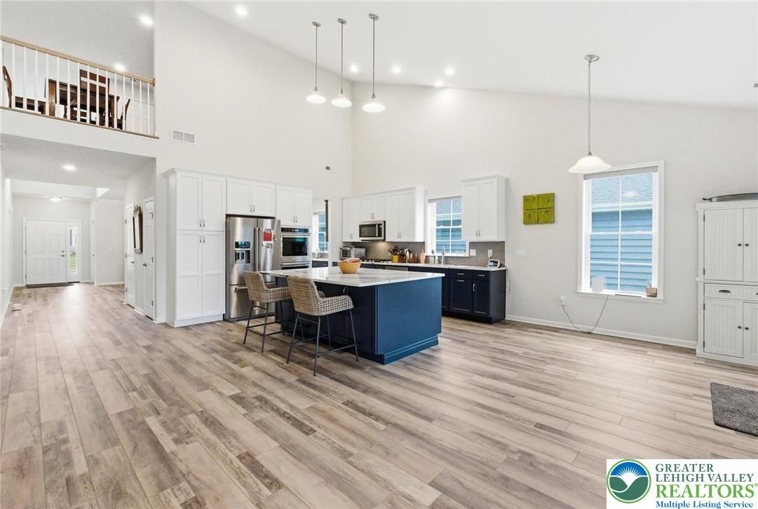 - Cathedral Ceiling(s), Dining Area, Separate/Formal Dining Room, Eat-in Kitchen, High Ceilings, Kitchen Island, Vaulted Ceiling(s)