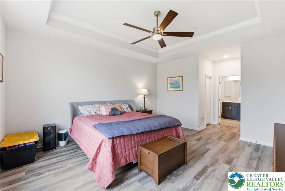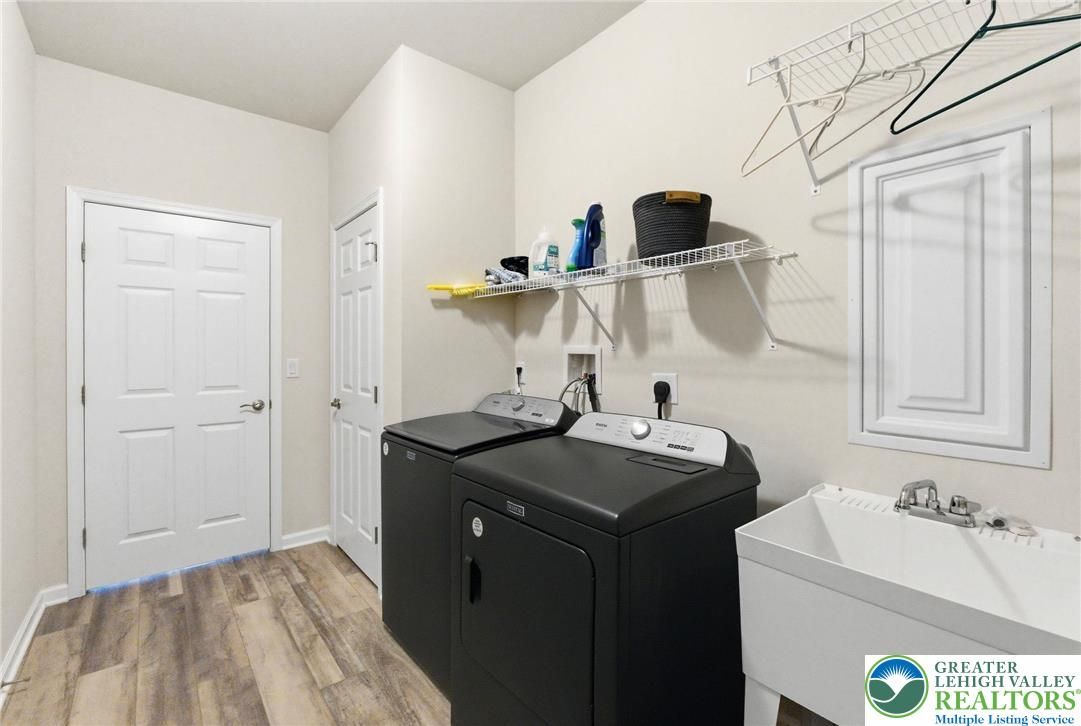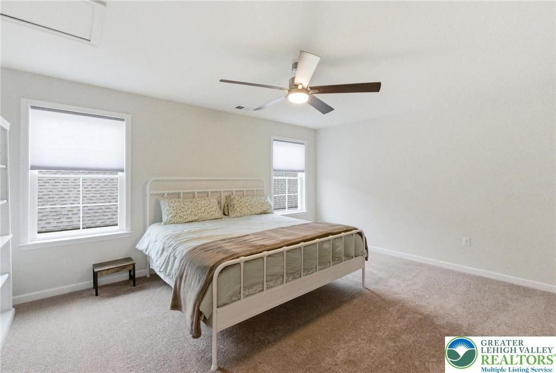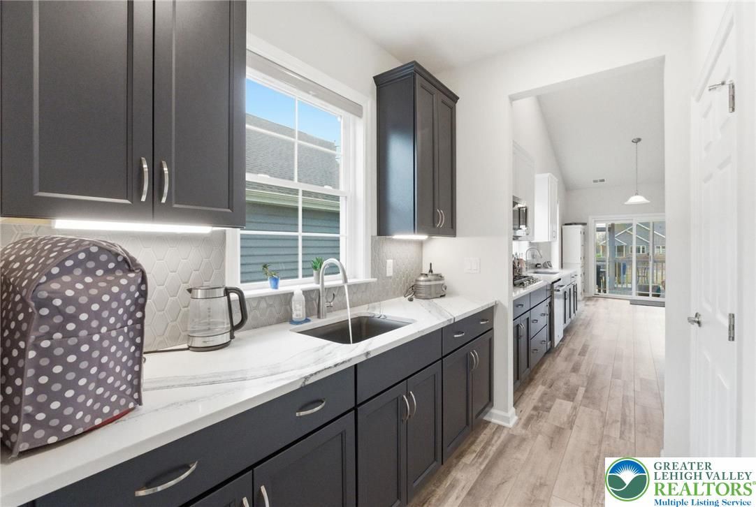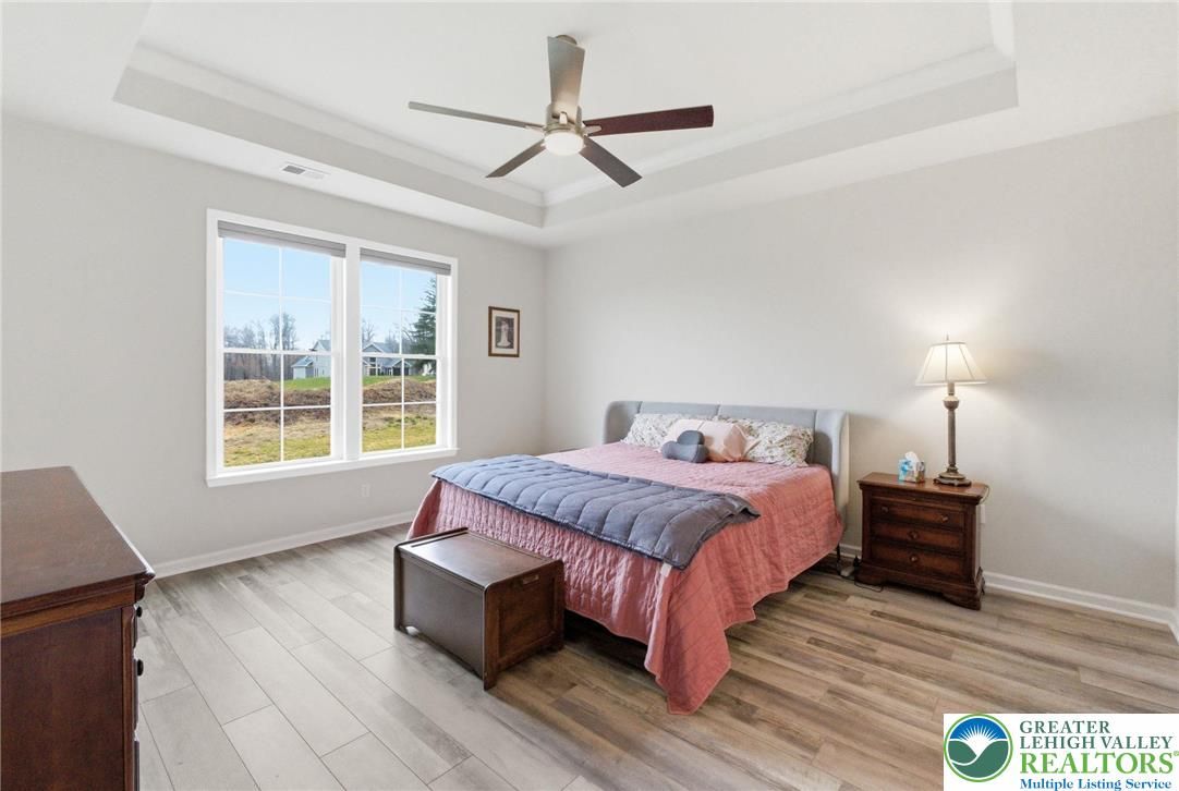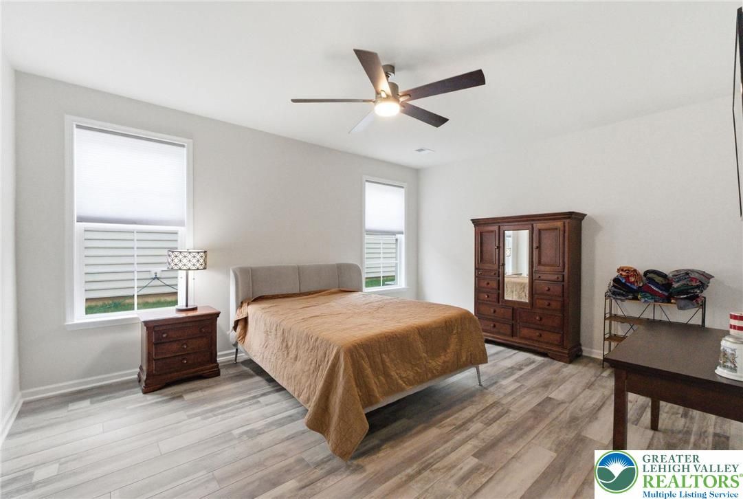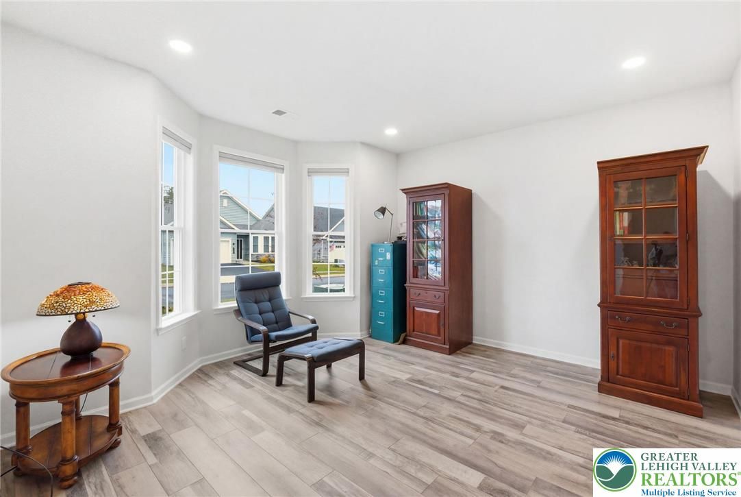 Welcome to this beautifully upgraded, nearly new home, Hancock Model with 2 Primary Suites on the first floor, in the sought-after community of Traditions of America, known for its thoughtfully designed homes and exceptional amenities, including a clubhouse, pool, pickleball courts, and more. Built just two years ago, this residence blends modern design, quality craftsmanship, and a versatile floor plan suited for today’s lifestyle. The heart of the home is a spacious, open-concept kitchen featuring a large quartz island, 42-inch soft-close cabinetry with pull-out shelves, a stylish backsplash, and premium KitchenAid stainless steel appliances, including double ovens. A generous walk-in pantry plus a butler’s pantry with an additional sink provide both functionality and ease for everyday living and entertaining. The main level offers two well-sized primary suites bedrooms with full baths. A powder room on the first floor for guests. A dedicated office/den with a charming bay window creates the perfect space for working from home or relaxing. Vaulted and tray ceilings, along with upgraded windows throughout, enhance the bright and airy feel. Luxury vinyl flooring flows seamlessly across the first floor. Upstairs, a versatile loft expands the living space with a recreation area, an additional bedroom, a full bathroom, and two large storage closets—ideal for guests or extended living needs. Enjoy outdoor living on the covered patio, perfect for relaxing or entertaining. This home offers a wonderful opportunity to enjoy low-maintenance living with upscale finishes in a vibrant, amenity-rich community. Also larger windows with window sills for more natural light.