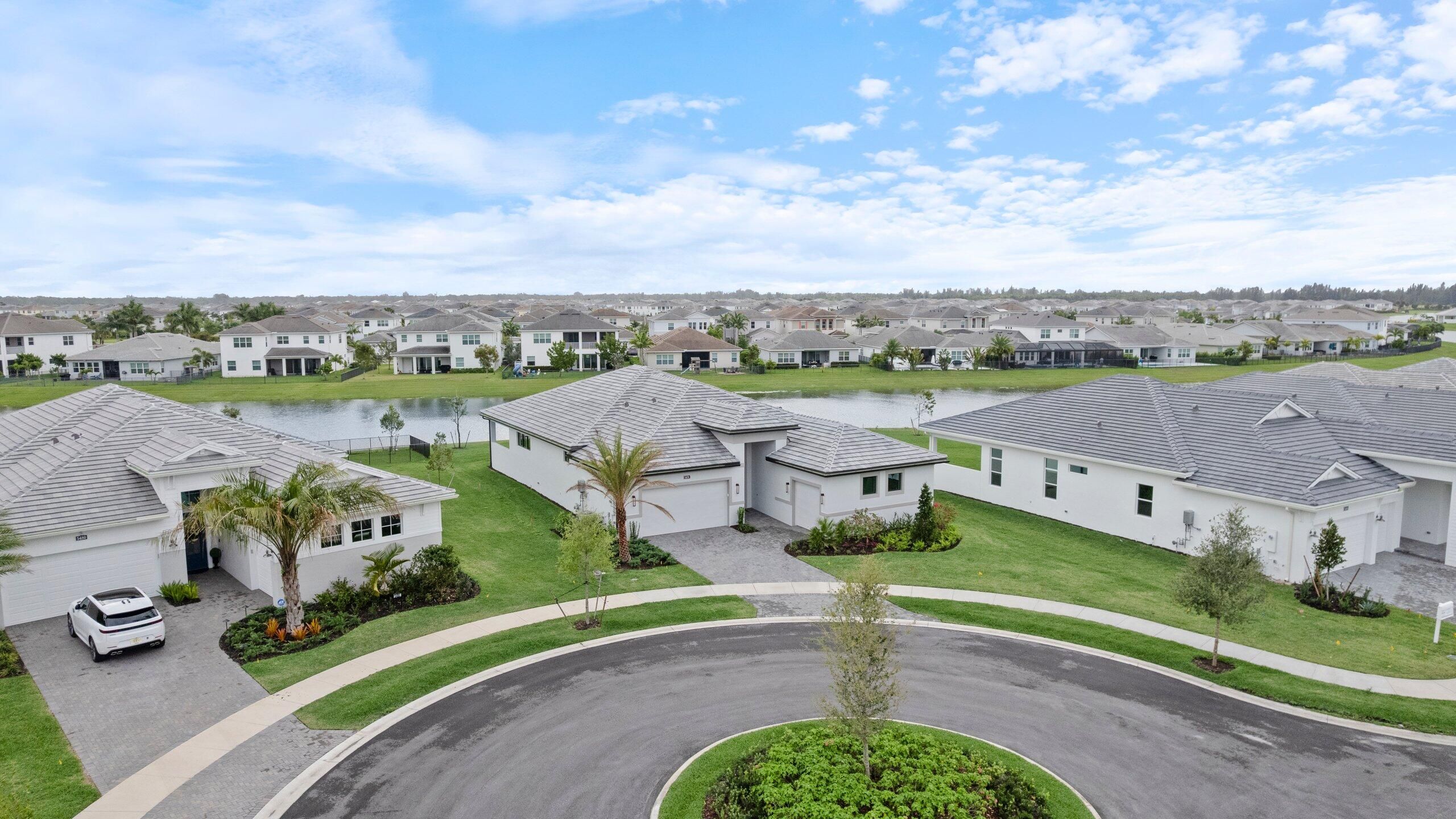 Brand-new waterfront home in the 55+ community of Cresswind at Westlake. Open-concept design with stunning lake and sunrise views, perfect for entertaining and everyday living. Upgraded kitchen features GE Café appliances, quartz countertops, and a large walk-in pantry. Triple-split bedroom floor plan plus a versatile flex room ideal for office, den, or hobby space. Porcelain tile flooring thought living areas. Primary suite overlooks the water and offers an oversized closet. Large laundry room. Great room enhanced with oversized sliders for seamless indoor-outdoor living. Covered patio with peaceful water views. Energy-efficient with natural gas for cooking, water heater, and dryer. HOA includes gated security, lawn care, and access to resort-style amenities: clubhouse, pool, fitness center, pickle-ball, tennis, dog park, and more. Convenient to shopping, dining, and all Westlake and Palm Beaches attractions.