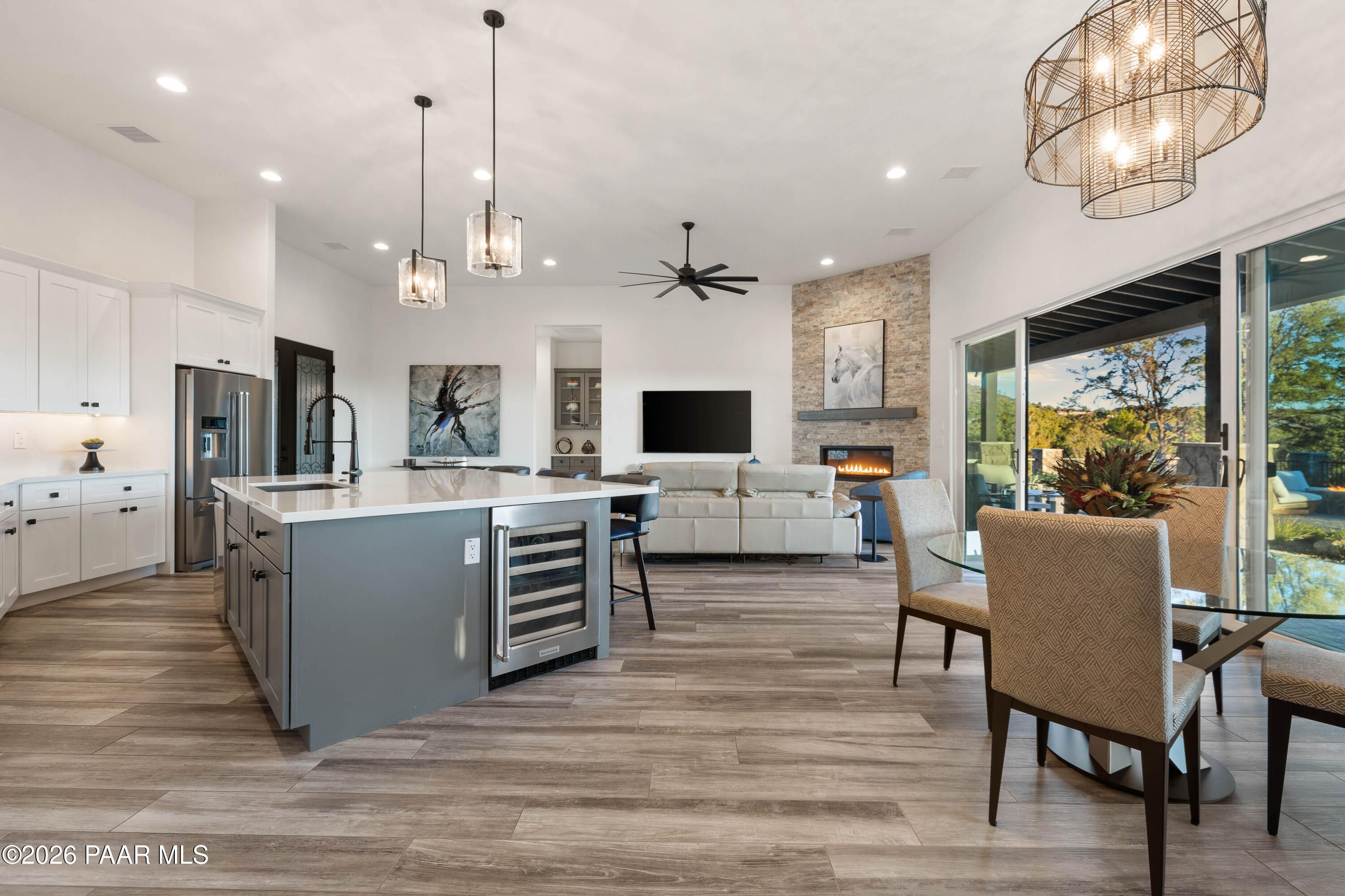 We want to share the details about an exceptional property located in Prescott's Premier Golf and Fitness community. This stunning 3-bedroom, 3-bathroom custom residence is 2,323 sq ft that sits boldly on a .66-acre lot with breathtaking Granite Mountain views. Designed and built by Reserve Homes and completed in 2022, the home exudes exceptional craftsmanship, modern finishes, and seamless indoor-outdoor living. Key features include: a great room with raised ceilings, a floor-to-ceiling stone fireplace, and porcelain tile flooring. The chef's Kitchen is adorned with quartz countertops, a large island, KitchenAid appliances, a wine fridge, custom cabinetry, and large walk-in pantry. Your primary suite has patio access, a spacious custom closet, and a luxurious ensuite with dual vanities and a walk-in tile shower. With magnificent outdoor living the large covered patio, extended paver patio with a built-in firepit and hot tub, along with a fully fenced yard have a direct view to Granite Mountain. You will just love the oversized 1441 SF garage with 3.5-car spaces, epoxy flooring that includes a generator with its very own sub-panel.The Talking Rock community amenities include an award-winning Jay Morrish-designed golf course, the Fitness Barn, the Ranch House Restaurant and Bar, Coop's coffee shop, racquet courts both tennis and pickleball, dog park, community garden hiking trails, and more. A private membership is required to the Talking Rock Club purchased by the buyer at the close of escrow, with Social or Golf membership options. Don't wait, let us walk you through this exceptional home today!