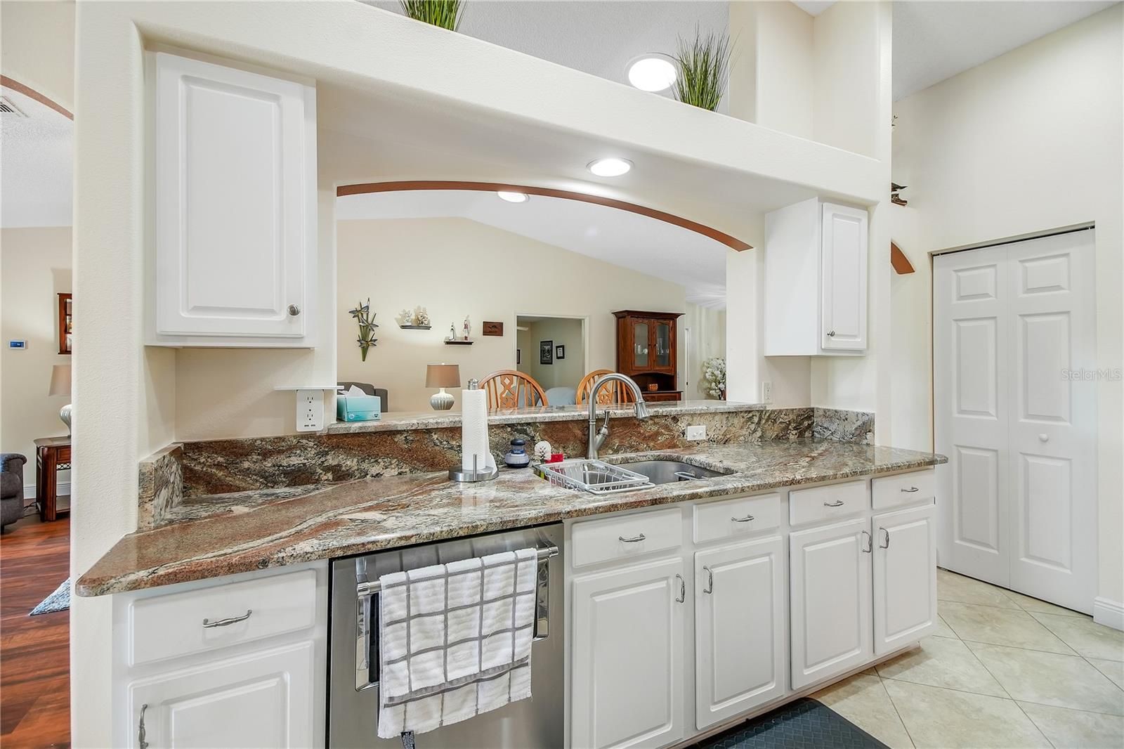 - Cathedral Ceiling(s), Ceiling Fan(s), Eat-in Kitchen, Living/Dining Room, Main Level Primary, Split Bedrooms, Stone Counters, Thermostat, Walk-In Closet(s)
