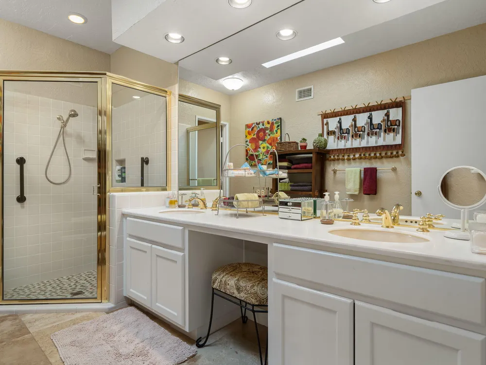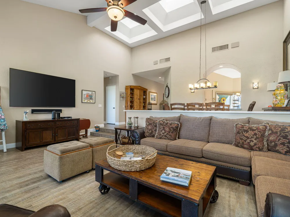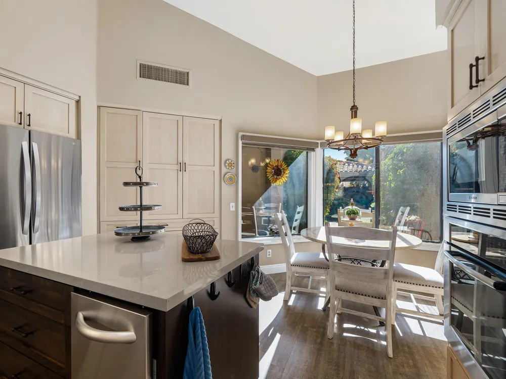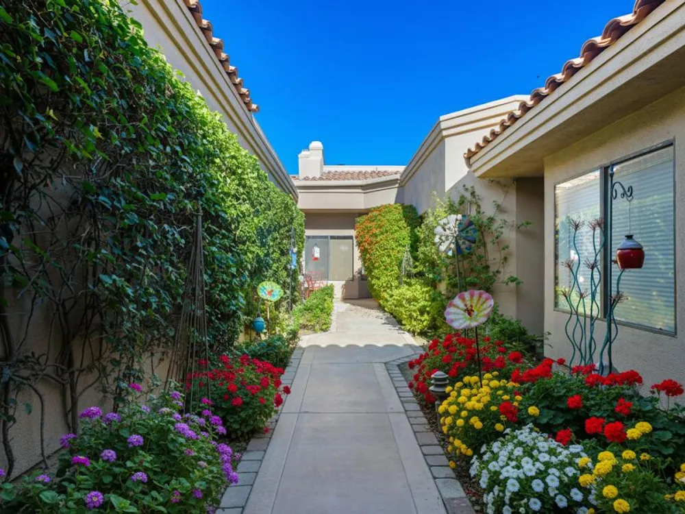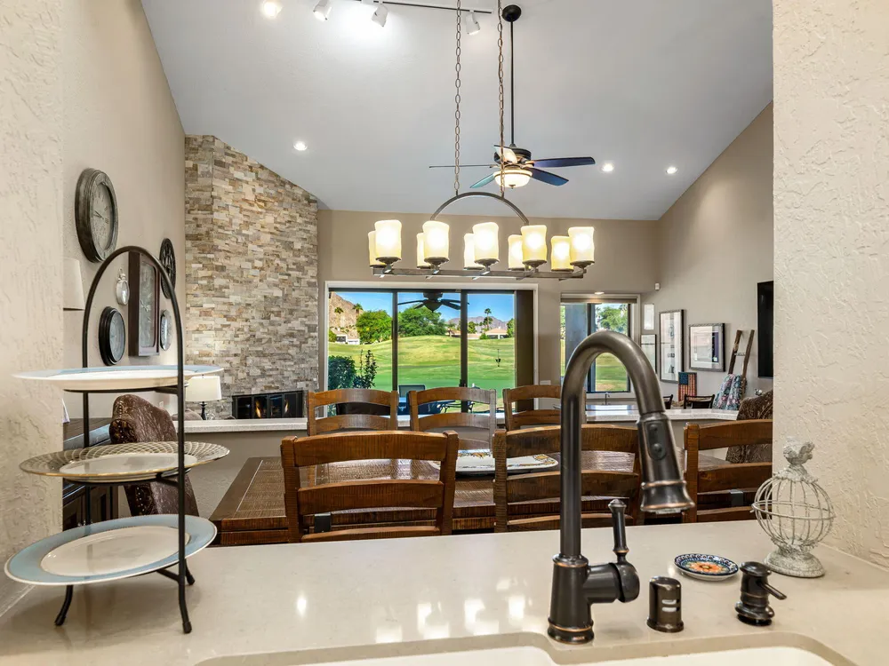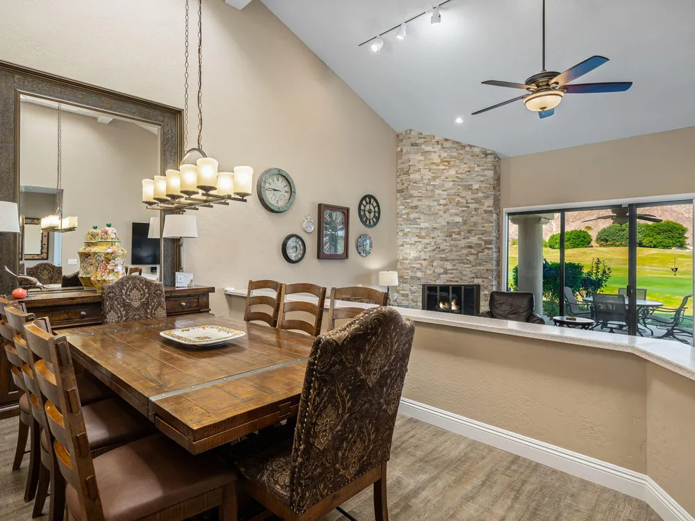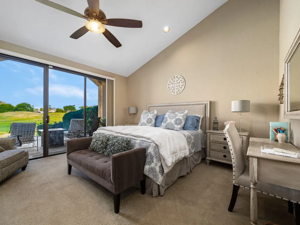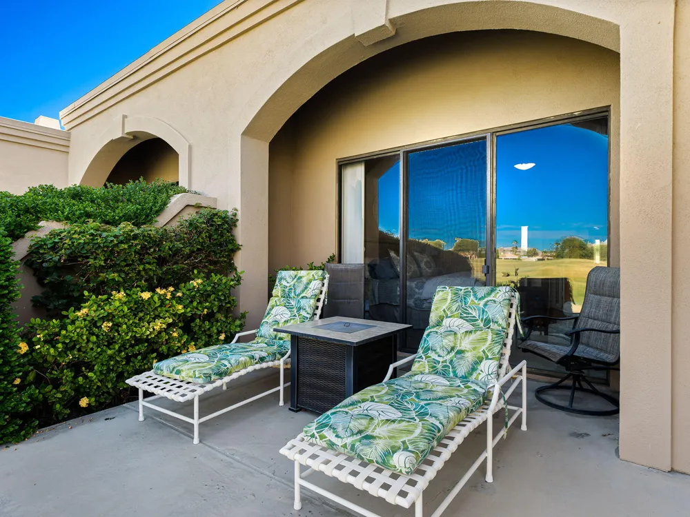 STUNNING LEGENDS 20 RESIDENCE WITH DOUBLE FAIRWAY & PANORAMIC MOUNTAIN VIEWS! The highly sought-after Legends 20 model at PGA West combines elegant design, spacious interiors, and a premier location within one of La Quinta's most prestigious guard-gated communities. Offering 3 bedrooms, 3.5 bathrooms, and approximately 2,596 sq. ft., this residence delivers the perfect blend of comfort and resort-style living. Soaring vaulted ceilings, abundant skylights, and an open floor plan fill the home with natural light. The main living area is anchored by a dramatic floor-to-ceiling stacked-stone fireplace and features luxury vinyl flooring and a built-in wet bar, creating the perfect space for relaxation or entertainment. A remodeled gourmet kitchen showcases quartz countertops, custom cabinetry, stainless-steel appliances, gas cooktop, under-cabinet lighting, recessed ceiling lights, and expanded storage, making it ideal for both everyday living and special gatherings. The primary suite is a true retreat with direct patio access, custom closet, and a spa-inspired bath complete with a frameless shower featuring dual heads, a freestanding soaking tub, Newport Brass fixtures, dual vanities, and expanded storage. Two additional bedrooms, each with en-suite baths, provide privacy and comfort for family or guests. Outdoor living is equally impressive, with panoramic mountain and double fairway views of the Stadium Course. The spacious patio includes a built-in grill and plenty of room for dining or lounging, while the community pool is conveniently located right across the street. UPGRADE HIGHLIGHTS INCLUDE: luxury vinyl flooring in main living areas, floor-to-ceiling stone fireplace, Waterboy whole-house water filtration system, refurbished entry door, ceiling fans throughout, and a golf-cart garage with custom cabinetry and overhead storage. The property is offered turnkey furnished, excluding Seller's personal items and those listed on the exclusions list. Residents of PGA West enjoy a world-class lifestyle with access to championship golf, multiple clubhouses, dining, fitness, tennis, pickleball, and resort-style pools. This Legends 20 model showcases the perfect combination of luxury, convenience, and the active desert lifestyle that makes PGA West one of California's most desirable destinations. *Some exterior and landscape photos have been digitally enhanced for illustration only.