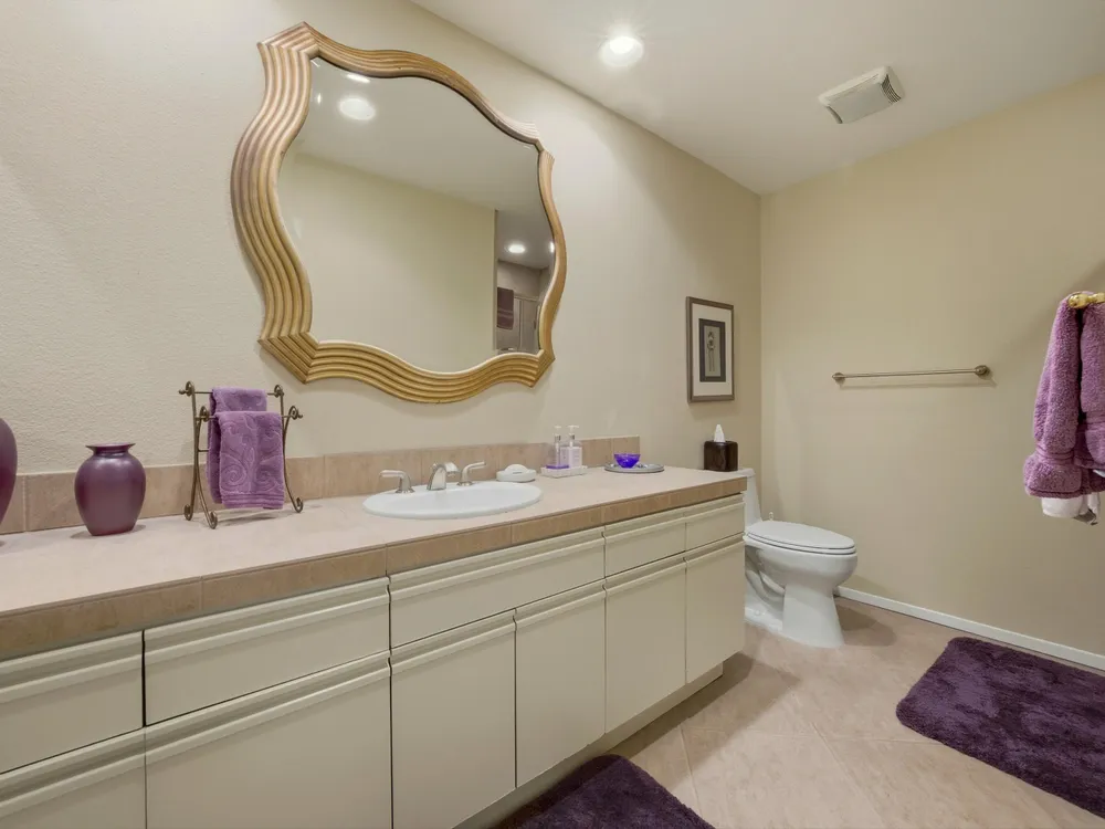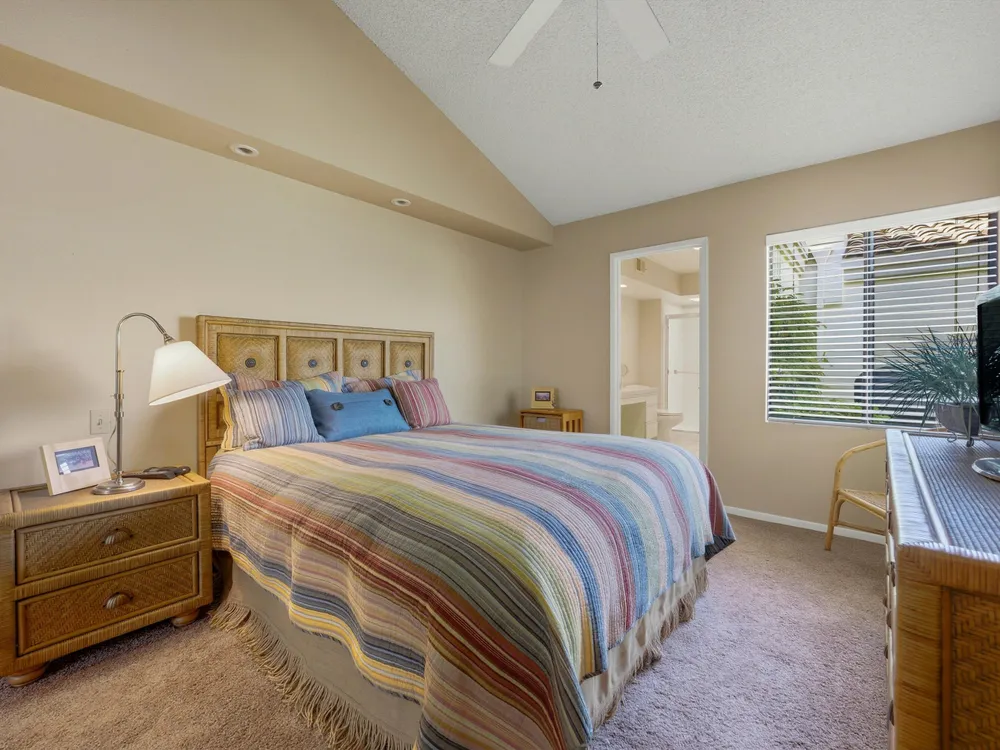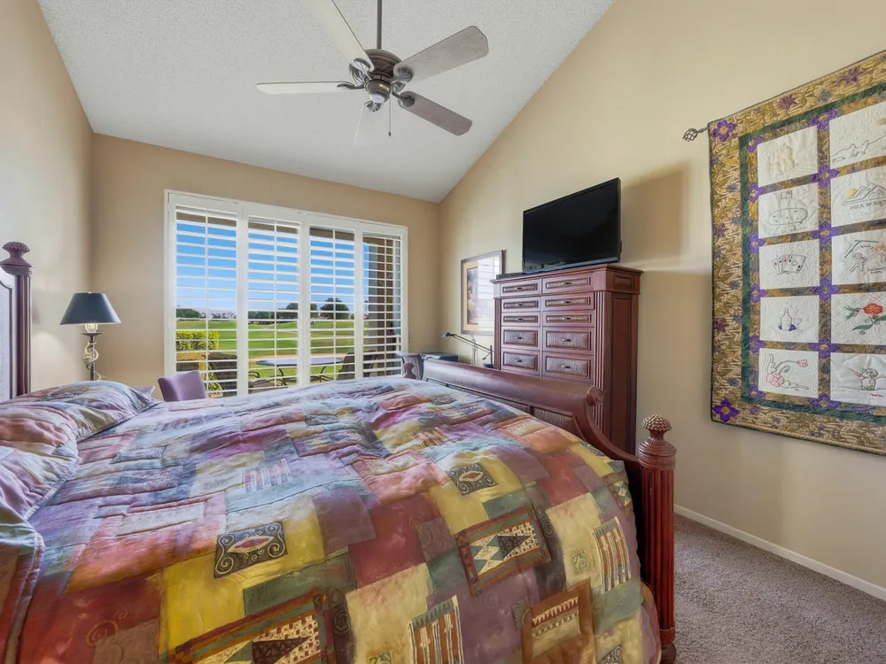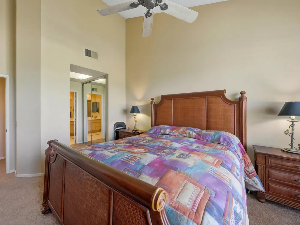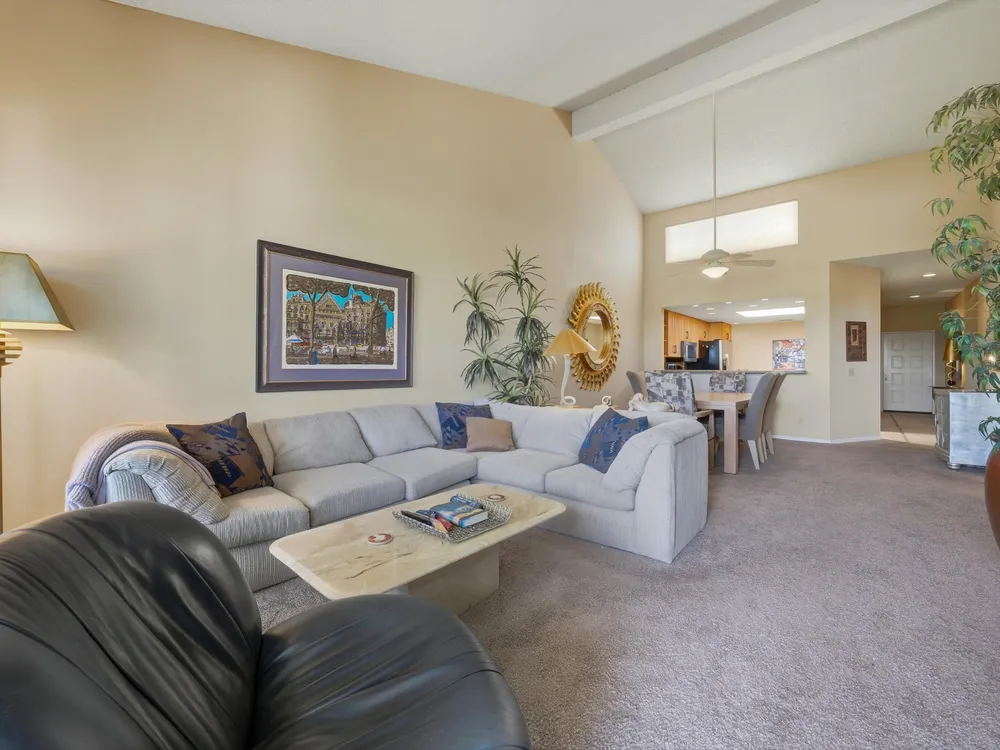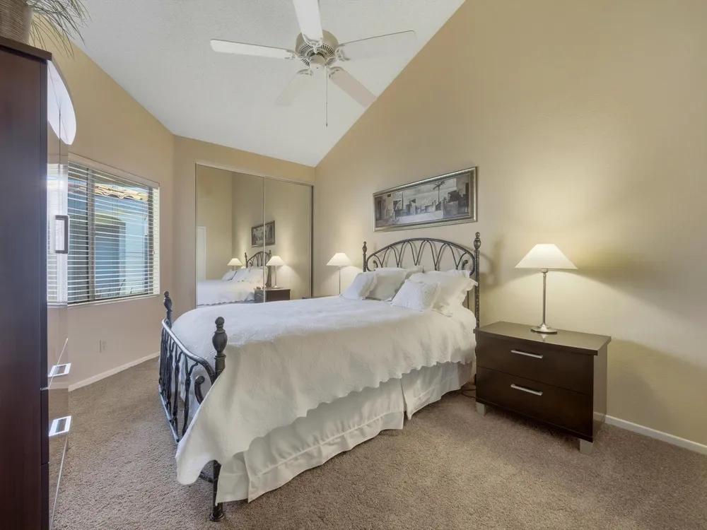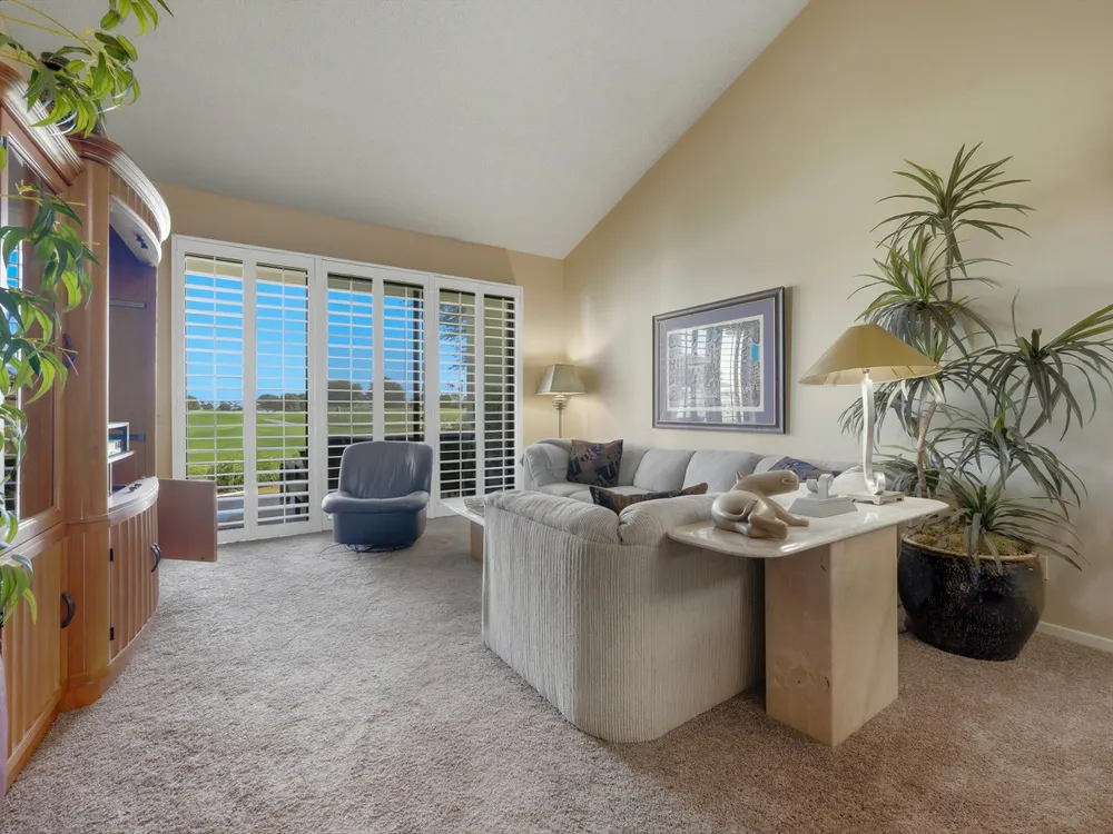 Discover this pristine and rarely available Champion 2X floor plan located on the 4th hole of the renowned TPC Stadium Course at PGA West. Offering 3 bedrooms and 3 baths across 1,673 sq ft, this light-filled single-level condo combines timeless design with tasteful modern upgrades. A private gated entry patio welcomes you inside, leading to an open-concept layout with soaring ceilings and abundant natural light. The interior features upgraded flooring, designer paint palette, custom shutters, recessed lighting, ceiling fans, enhanced baseboards, and stainless-steel appliances in the well-appointed kitchen. The spacious great room and dining area flow seamlessly to a private patio overlooking the lush fairway—ideal for enjoying morning coffee or evening sunsets. Additional highlights include a two-car garage, beautifully maintained landscaping, and close proximity to community pools and spas. Sold furnished per inventory, this move-in-ready home captures the essence of desert resort living at its finest.