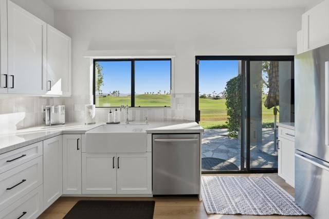 Welcome to your desert escape in the world renowned community of PGA West in La Quinta, home of the prestigious American Express Golf Tournament. This completely renovated Champion 4 floor plan offers three bedrooms and three bathrooms and showcases a seamless blend of comfort, modern design, and resort style living. Perfectly positioned on the 11th fairway of the iconic TPC Pete Dye Stadium Course, this property captures stunning golf course and mountain views while offering one of the most sought after locations in PGA West. From this vantage point, you can enjoy the tournament action each year right from your private patio while the cart path is conveniently located on the opposite side for added privacy and peace. Inside, every detail has been thoughtfully reimagined to create a fresh and inviting atmosphere. The renovation included the removal of the kitchen wall, transforming the layout into a true open concept great room ideal for entertaining and everyday living. The kitchen now opens fully to the living and dining spaces, allowing natural light to fill the home and making it easy to enjoy the breathtaking scenery beyond the walls of glass. High ceilings, sleek finishes, and modern design touches create a contemporary desert vibe that feels both luxurious and comfortable. Each bedroom suite has been designed to offer comfort and functionality, giving owners and guests alike the perfect private retreat. The spacious primary suite offers direct patio access, and a spa inspired bathroom. The guest bedrooms provide flexible space for visitors, remote work, or a home gym. The interior furnishings have been curated with style and sophistication in mind, creating a turnkey opportunity that is ready for immediate enjoyment.Enjoy your private patio where you can relax with morning coffee, watch golfers navigate the course, or enjoy a sunset happy hour as the desert sky transforms into vibrant color. The combination of location, design, and setting makes this home truly one of a kind.Offered furnished per inventory, this stunning residence represents the very best of La Quinta luxury living and the exclusive PGA West lifestyle. Whether you are seeking a full time home, a seasonal retreat, or an investment property, this is a rare opportunity to own a fully remodeled, designer furnished home on one of the most famous golf courses in the country. Do not miss your chance to make this exceptional property your own!