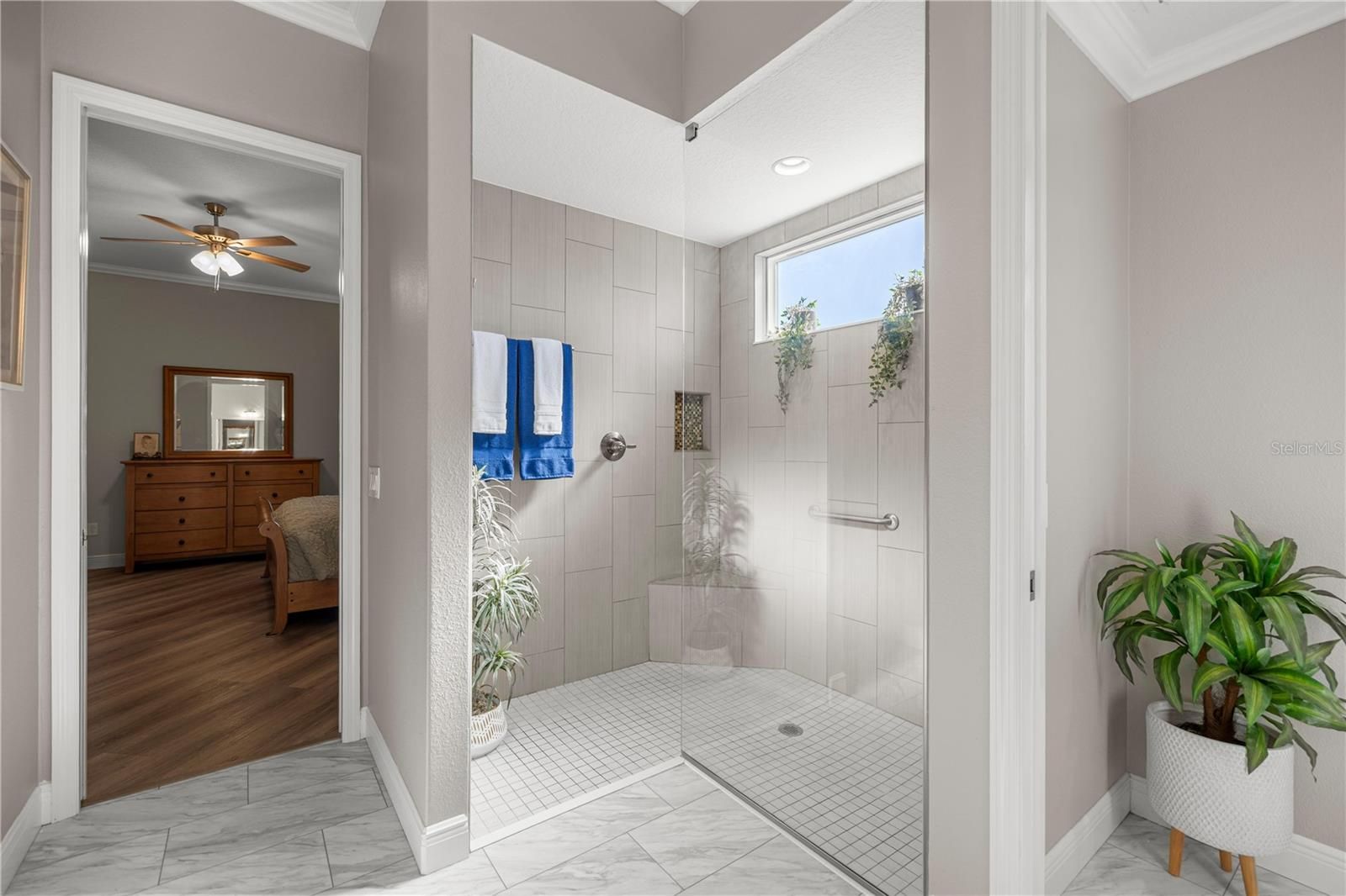 - Ceiling Fan(s), Crown Molding, High Ceilings, Kitchen/Family Room Combo, Walk-In Closet(s)