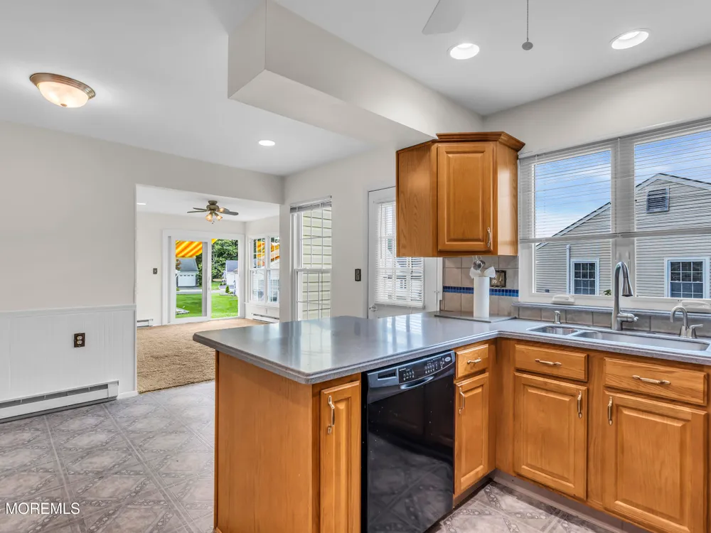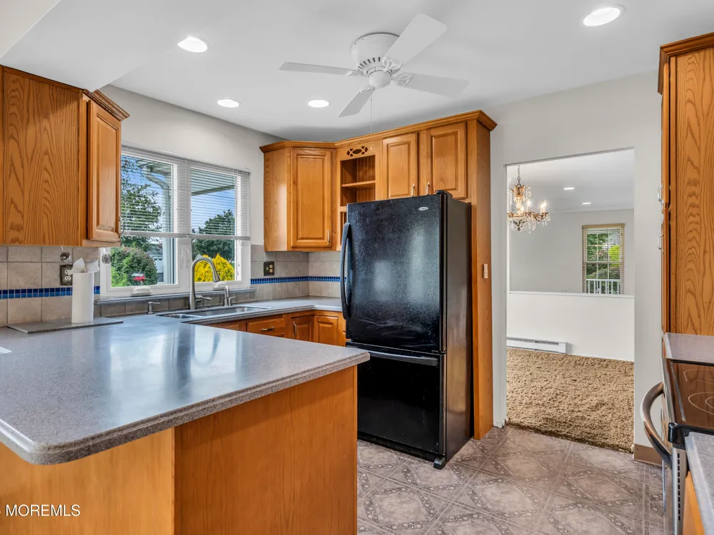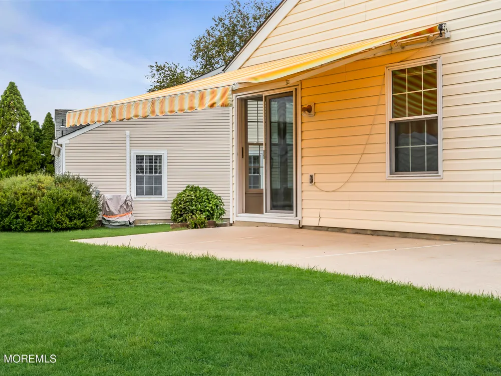 Welcome to this beautifully updated Westport model, offering 1,551 sq ft. Featuring 2 spacious BRs, 2 full bathrooms, a LR, DR, den, and attached 1-car garage, situated on a prime elevated lot, this property enjoys views from both the interior and the expansive rear patio. The lush, green lawn wraps around the home, creating a serene and outdoor oasis with three distinct sitting areas: a covered front porch, a side patio, & a large backyard patio with a retractable awning, perfect for entertaining or relaxing outdoors. The updated kitchen features newer cabinetry, appliances, Corian countertops, & flooring. Additional improvements include newer windows, newer roof, newer CAC, newer HWH, and garage door. Conveniently located 6 miles from the GSP, close to the shore, shopping & restaurants