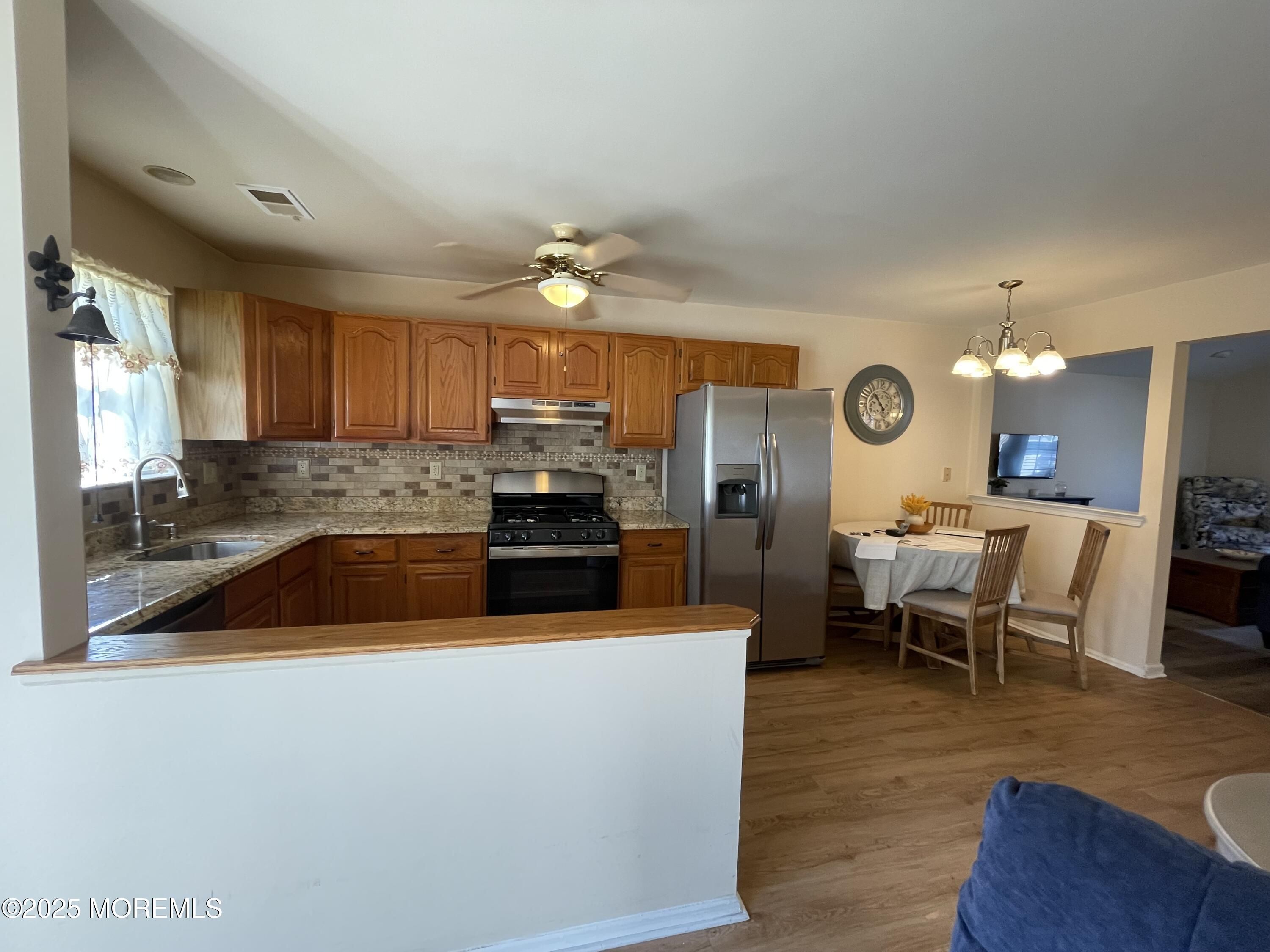 Move right in without a thing to do! This immaculate updated 2 bedroom, 2 bath detached home will wow you! Open living room & dining room with new luxury vinyl floors. Freshly painted. Best of all - NO popcorn ceilings! Spacious kitchen with granite counters, tile backsplash and newer stainless appliances. Eat-in area in kitchen with half wall open to cozy den area with sliders to the yard. Two spacious bedrooms including a huge master bedroom w/full bath and shower stall. Plenty of closets too. New roof installed in 2020 and new furnace/AC just 5 years young. Newer replacement windows! Backyard has a new extended paver patio for your enjoyment and professional landscaping too! One car attached garage with plenty of shelving and double wide driveway. This home is lovingly maintained!