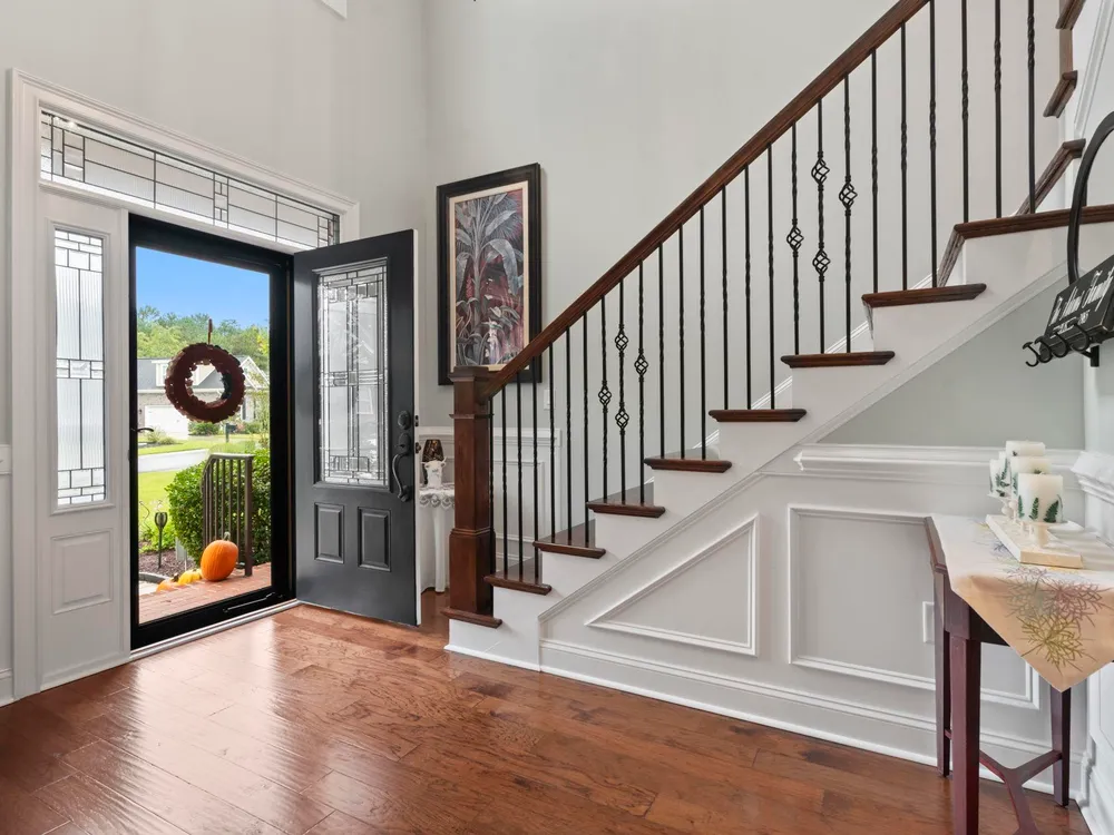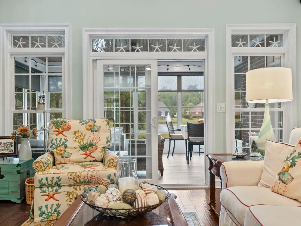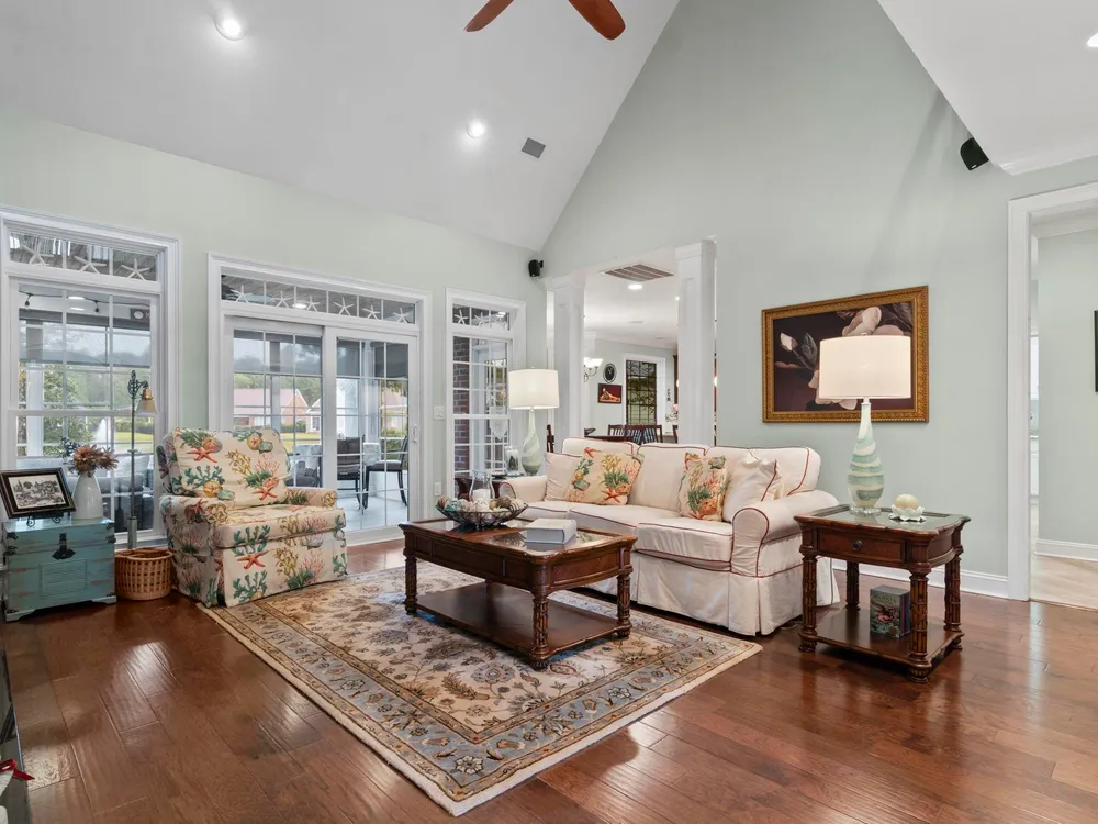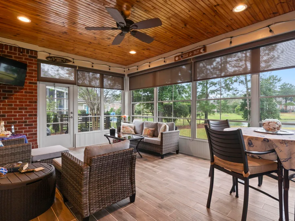 As you enter this beautifully maintained brick home, the soaring two-story foyer sets the tone with abundant natural light streaming through the transom and arched window above the front door. Just off the entry, French doors open to a dedicated office space, perfect for working from home. The living room draws your eye upward with its vaulted ceiling and custom railing along the upstairs overlook. A tremendous feature of this space is the surround sound system, paired with overhead speakers extending into every first-floor room including the back porch, creating an ideal setting for entertaining or relaxing. The kitchen blends functionality and style with rich cabinetry, granite countertops, a tile backsplash, and a spacious island that seats four. All windows throughout the home are treated with 3M privacy film—except those shaded by a porch—including the adjacent dining area, where the tinted windows allow natural light to flood in while enhancing energy efficiency and privacy. Just beyond, the screened porch becomes a favorite retreat, featuring ceramic tile flooring, vinyl windows with shades, and peaceful views of the landscaped yard and pond. The primary suite, located on the main level, offers privacy with its own luxurious bath and large walk-in closet. Upstairs, two guest bedrooms share a full bath and generous closet space, while an additional room provides flexibility for a media room, hobby space, or extra storage, and boasts an additional walk in closet. A cedar-lined attic with AC adds even more storage options. This property also includes a whole-house Springwell water filtration system, an in-line water heater, and a separate irrigation meter for efficient outdoor watering. Outdoor living is enhanced by a natural gas hook-up for grilling, under-soffit lighting on a timer, and lush landscaping. The oversized garage provides tremendous space in height, width, and depth, accommodating vehicles, storage, or even a workshop setup. This home balances everyday comfort with thoughtful upgrades throughout, from the entertaining-ready great room to the peaceful screened porch and beyond. It's truly designed with both function and enjoyment in mind. Prince Creek amenities include resort-style living with access to pools, tennis courts, a playground, horseshoe pit, and a BBQ pavilion - all within a short distance from your doorstep. Waverly Bay residents enjoy unmatched community features such as walking trails, a clubhouse with fitness center, two resort-style pools (including an Olympic-sized lap pool), pickleball, tennis, and basketball courts, volleyball, playgrounds, a ball field, picnic pavilions with outdoor fireplaces and full kitchens, and open green spaces for pets and play. Pickleball courts are also being expanded to meet demand. Sidewalk-lined streets, gated access, and golf cart-friendly connections to TPC Boulevard and Prince Creek Parkway provide both security and convenience. Embrace the coastal lifestyle in this stunning Murrells Inlet home close to area beaches, golf courses, and waterways. Located in the top-rated St. James School District and just minutes from grocery stores, fitness centers, restaurants, healthcare, Huntington Beach State Park, and the Murrells Inlet MarshWalk. Only 10 minutes to the beach, 15 minutes to Myrtle Beach International Airport, and a short drive to Pawleys Island and Charleston. Living in Waverly Bay means enjoying comfort, convenience, and a lifestyle that is truly unparalleled in Coastal Carolina. Measurements are not guaranteed. Buyer is responsible for verifying.