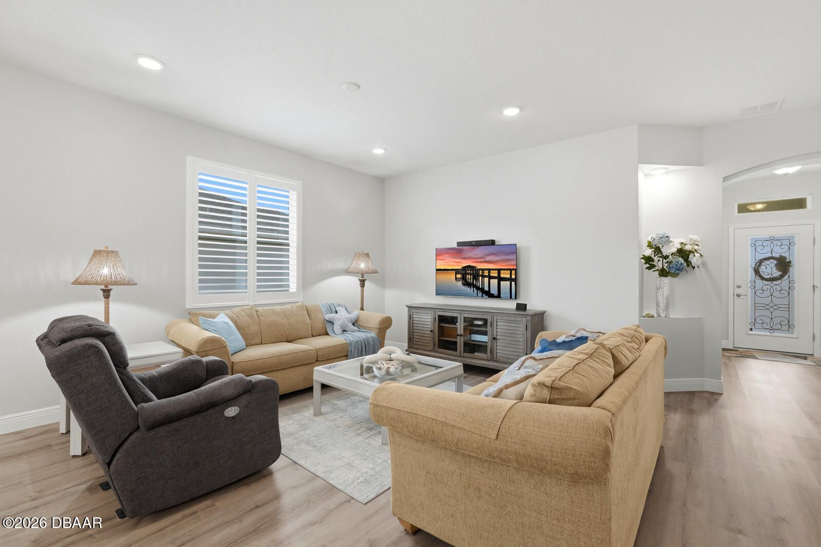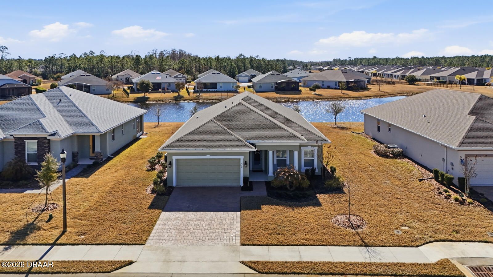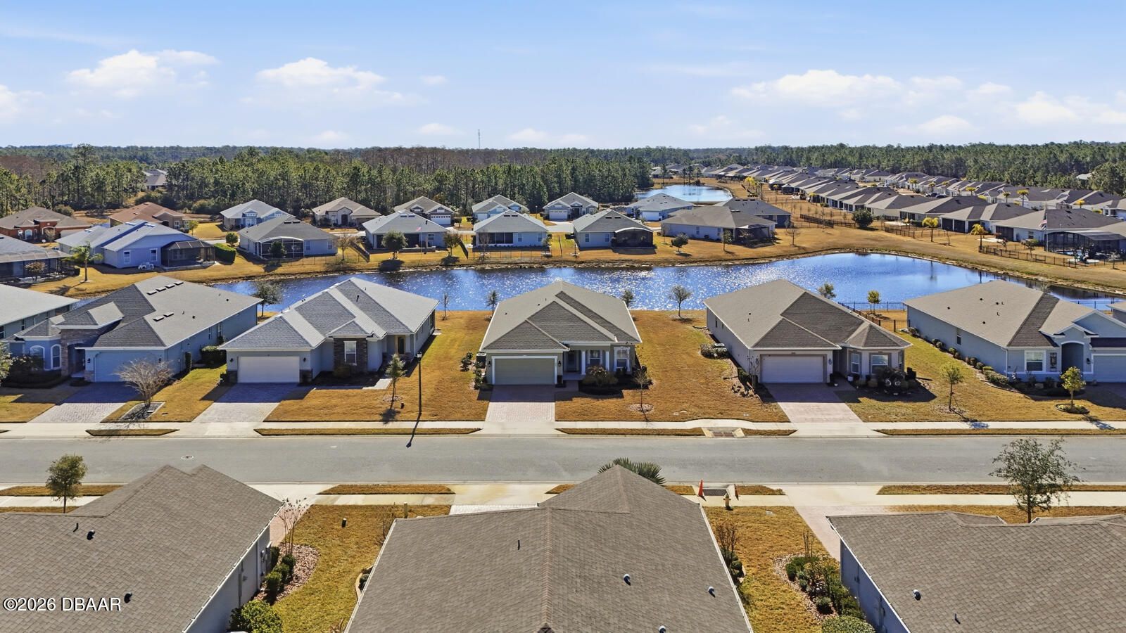 Imagine trading snow boots for sunshine in this stunning Holiday Builder home, perfectly situated in the sought-after 55+ community of Hunters Ridge. Designed for effortless living, this home delivers the ultimate zero-maintenance lifestyle—say goodbye to shoveling, scraping, and weekend chores. Lawn care, exterior paint, pressure washing, high-speed internet, cable TV, irrigation, tree trimming, fertilization, pest control, and mulch are all included, leaving you free to simply enjoy life. Inside, the light-filled, open design immediately feels welcoming and relaxed. With four thoughtfully split bedrooms and two bathrooms, the layout balances comfort, privacy, and easy everyday living. The owner's suite is a true warm-weather retreat, featuring dual sinks, an oversized walk-in shower, a generous walk-in closet—plus two additional closets for all your Florida lifestyle needs. Step outside to the expansive screened lanai and soak in peaceful lake views while enjoying gentle breezes and year-round usability thanks to panoramic screening and ideal southern exposure. Whether you're sipping your morning coffee or unwinding at sunset, this serene outdoor space makes every day feel like a vacation.