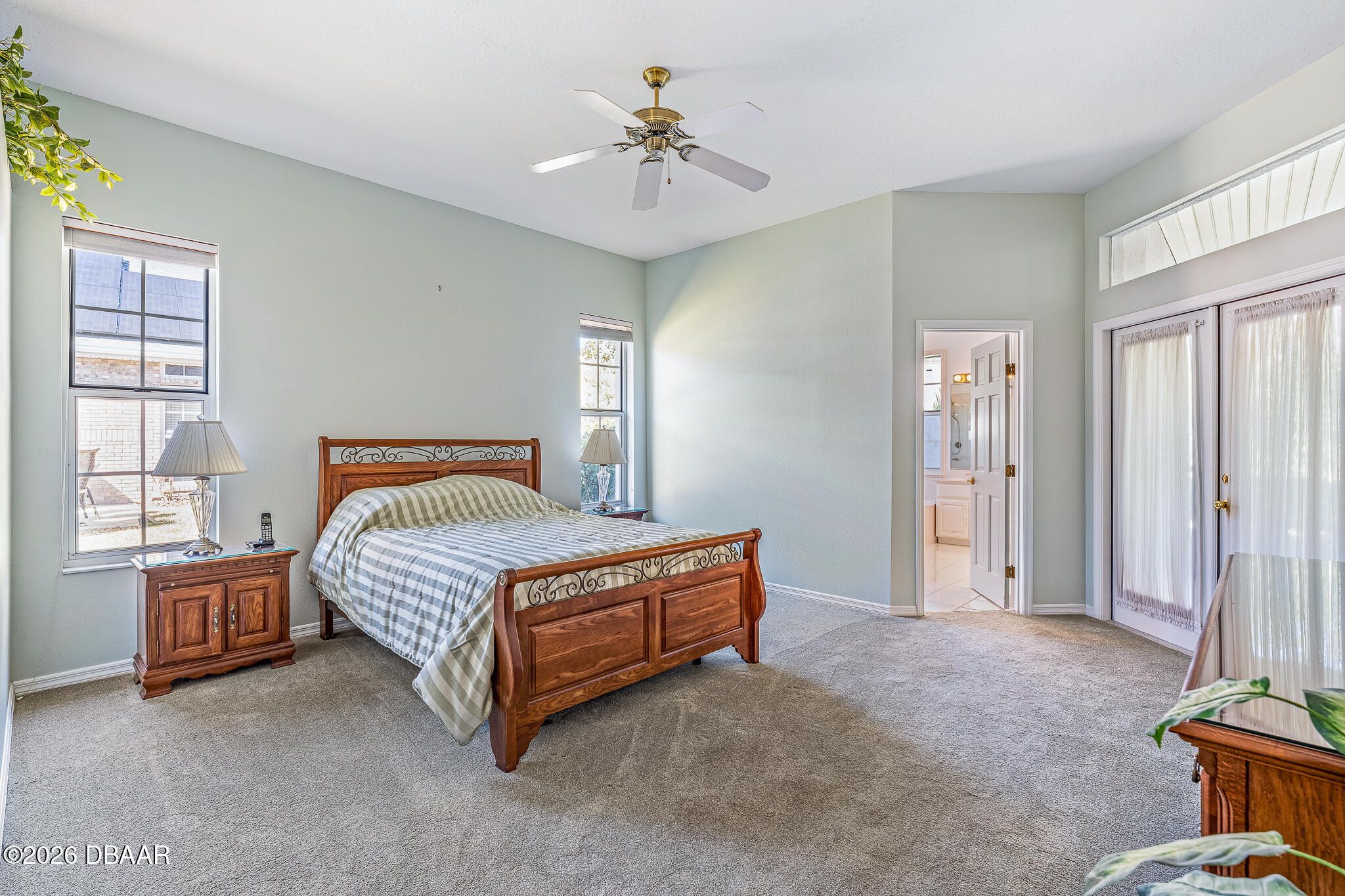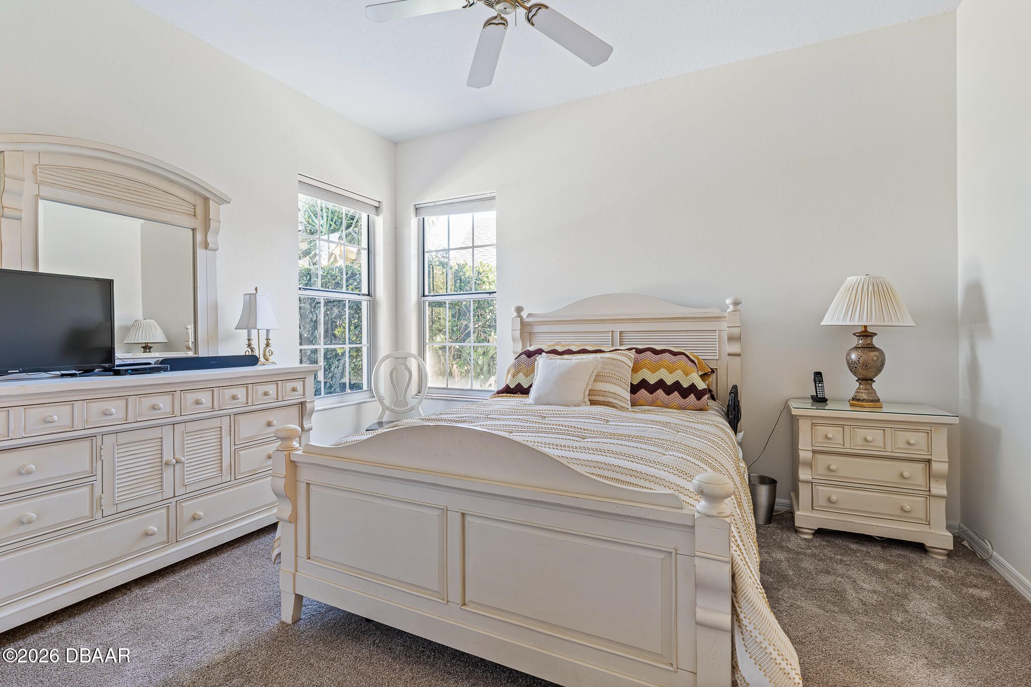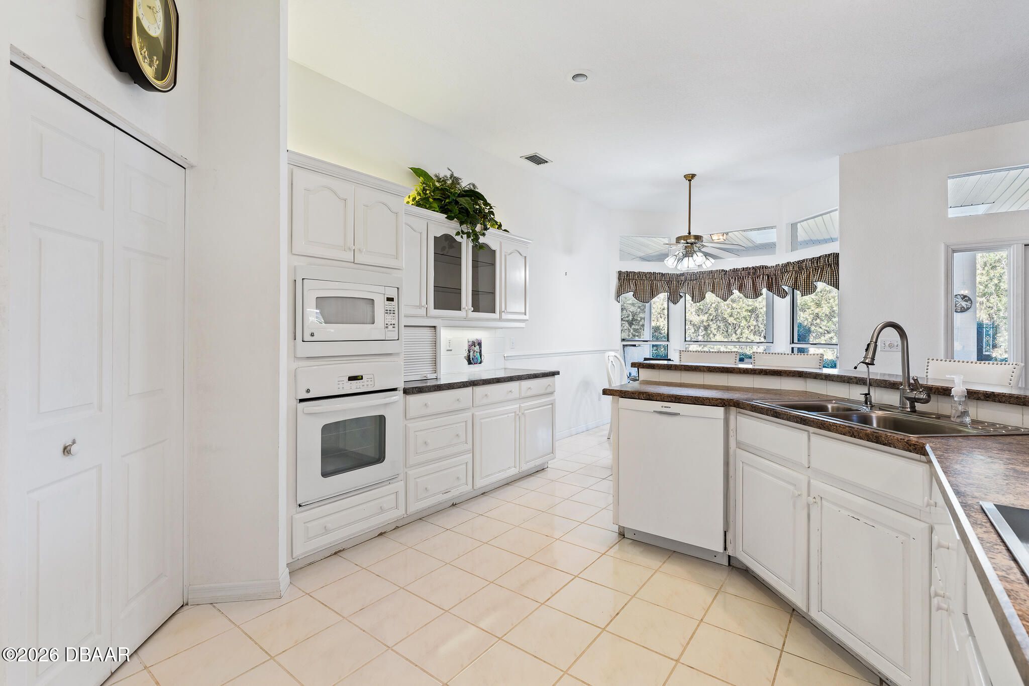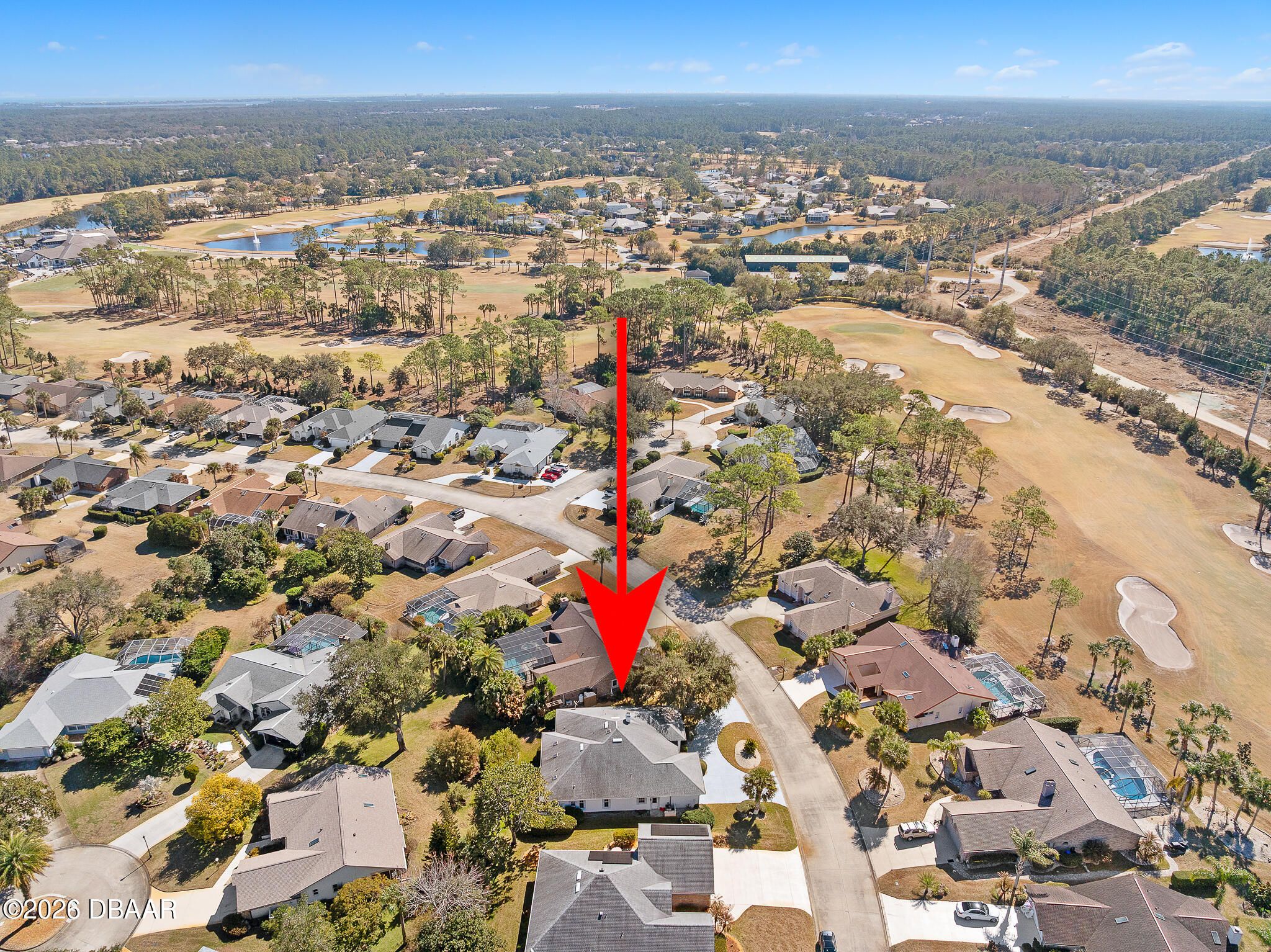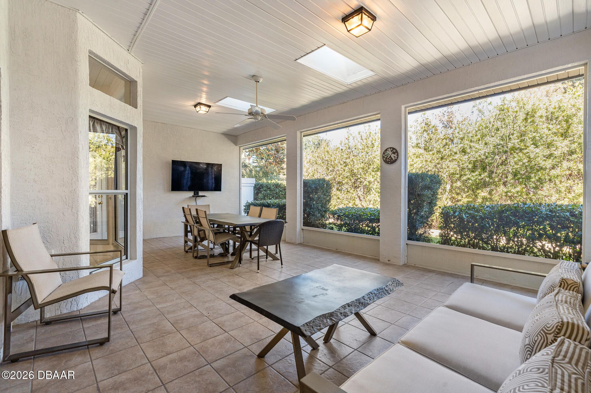Welcome to 55 Kingsley Circle, a spacious residence located in the prestigious Plantation Bay Golf & Country Club community. Offering over 2,500 sq. ft. of living space, this home features soaring 10-ft. ceilings, architectural columns, and bright white tile flooring that immediately create a sense of openness and style. The split-bedroom floor plan provides exceptional privacy, while the inviting family room showcases a cozy wood burning fireplace and a built-in wet bar—ideal for entertaining. The large primary suite is a true retreat with double-door access to the screened-in porch, an oversized walk-in closet, and a ensuite bath complete with a Jacuzzi tub, separate shower, wrap-around vanity, skylight, and abundant natural light. The second bedroom and den/office share a convenient Jack-and-Jill bathroom featuring an accessible walk-in tub, and Bedroom 2 includes double closets for added storage. Note that the den/office could be a bedroom - just add a closet. Enjoy Florida living year-round in the expansive tiled, screened-in porch, with an adjacent outdoor patio perfect for grilling or relaxing. The kitchen nook is surrounded by windows overlooking the porch, creating a cheerful and bright space for morning coffee. Curb appeal is enhanced by a circular driveway and attractive double-door entry. Inside, you will also appreciate the extra-large laundry room equipped with GE washer and dryer, a utility sink, and a double closet for storage. Additional features include ceiling fans, a newer Bosch dishwasher, newer Whirlpool refrigerator, newer hot water heater, and TVs that convey with the home. This well-maintained property is located in a highly sought-after gated community offering optional memberships for golf, fitness, tennis, swimming, dining, and more. Furniture is optional. Buyers of this home will receive a substantial discount on the club initiation fee - ask the listing agent for details.