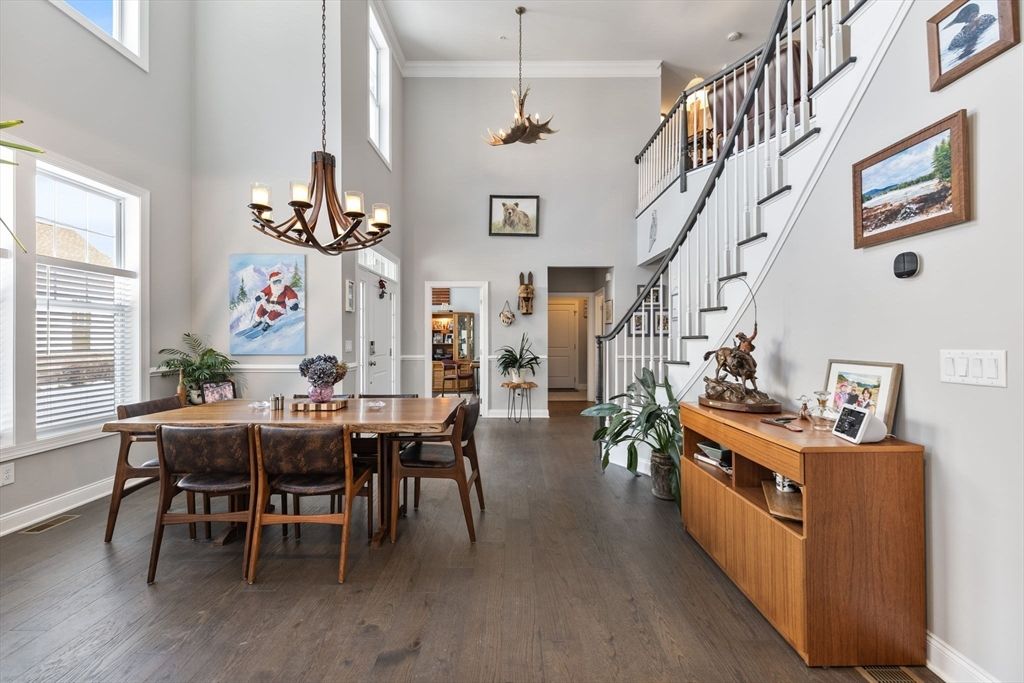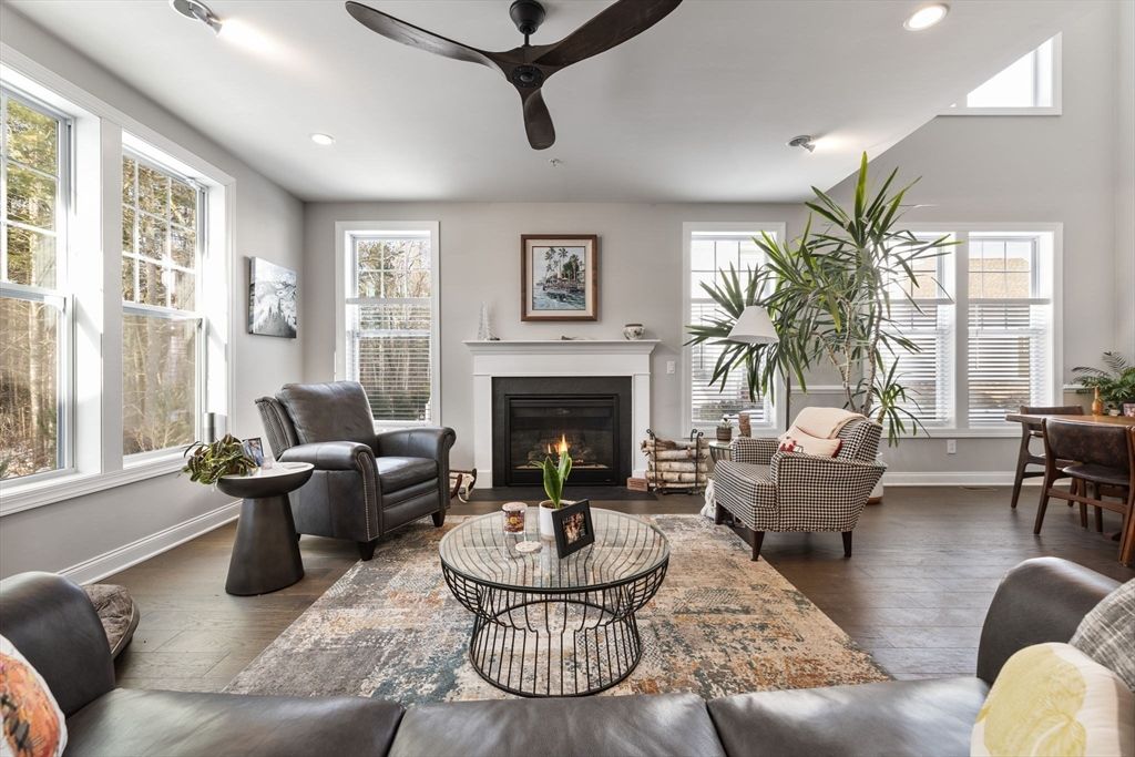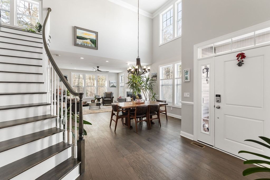Welcome to the Kington residence at the Preserve at Emerald Pines. This stunning end unit offers the perfect blend of comfort & luxury, featuring an expansive open floor plan with a dramatic two-story foyer and dining area, an impressive living room with gas fireplace, & a gourmet kitchen complete with an oversized center island, upgraded stainless steel appliances, gas cooktop, & large pantry. Sliding glass doors lead to the expanded deck with tranquil wooded views & a gas hookup for effortless outdoor grilling. The first-floor primary suite boasts a tray ceiling, two generous sized closets, & a spa-like bath with an oversized shower featuring a rain shower head, & spacious dual vanities for the storage you are searching for. Additional highlights include a mudroom, powder room, and a private office. The second level offers a versatile loft & also a bonus room along with a second bedroom & full bath. Enjoy community amenities such as your clubhouse, pool, bocce, pickleball & more!