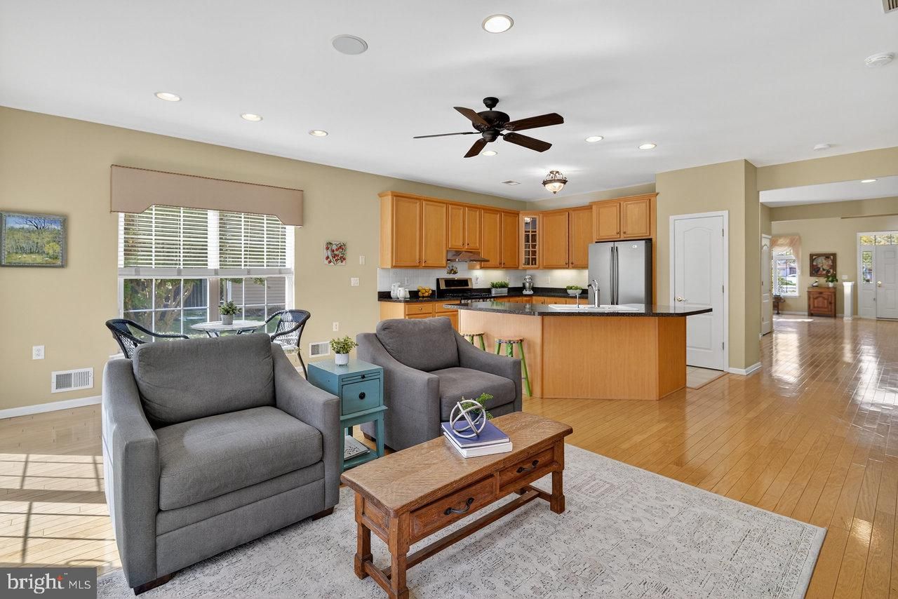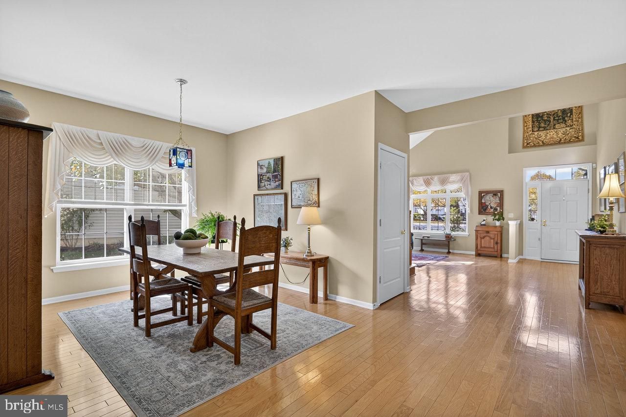 Welcome to this beautifully maintained single-family home in the sought-after active Village Grande adult community. This inviting residence offers an ideal blend of comfort, style, and low-maintenance living. Vaulted ceilings in the living room create an open feeling as you enter the home. Hardwood flooring flows throughout the main level, where you’ll find a gracious formal dining room and an updated kitchen offering stainless appliances and plenty of counter space. The kitchen opens seamlessly to the family room—complete with custom built-in bookcases and tranquil backyard views that capture glimpses of nature. The patio gives you the gift of enjoying the beautiful natural setting while enjoying a time alone with a good book or with family and friends. The spacious primary suite features tray ceilings, two closets and an en suite bath with a stall shower, soaking tub, and double sinks. A second bedroom, full bath, and convenient laundry room complete the first floor. Upstairs, a large loft provides flexible space for a second living area, home office, or library. An additional bedroom and full bath on this level offer a comfortable retreat for guests. The roof was replaced a few years ago and the furnace is brand new. Enjoy resort-style amenities in this vibrant community, including a clubhouse, billiards room, indoor and outdoor pools, tennis courts, walking paths, a bird sanctuary, and more. Ideally located near shopping, dining, and houses of worship, Village Grande offers both convenience and a wonderful sense of community living in the heart of Princeton Junction.