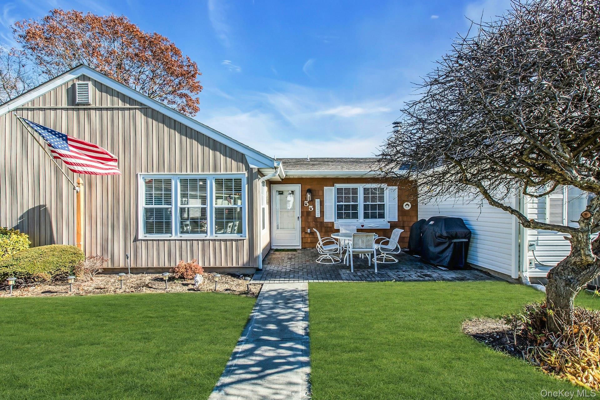 Welcome to This Nicely Updated One Level, Ranch Style Home in Sayville's Own, Vibrant and Highly Sought After, Sunrise Village 55+ Gated Condominium Community. This Spacious Dartmouth Model Offers 2 Bedrooms and 2 Full Baths. Beauty Along with the Ease of Low Maintenance. Bright, Open Corner End Unit Looks Out to Center Courtyard, Gazebo and Lush Landscaping. Walls Freshly Painted with Neutral Hues Await Your Personal Touch. Luxury Vinyl Plank Flooring Flows Throughout From the Entry, to the Eat In Kitchen, Living Room, Dining Room, Hallways and Bedrooms. Custom Blinds Add a Beautiful Touch to the Oversized Living Room that Flows Into the Dining Room. Features of the Spacious Primary Bedroom Include: A Beautifully Appointed Primary Bath Updated with Designer Vanity, Gleaming Tile and Walk-In Shower, Along with Dual Closets, One Being A Large Walk In with High End Closet Organizer. The Roomy 2nd Bedroom, Smartly Located at the Other End of the Home, Offers Privacy and Options for use as 2nd Bedroom, Office or Den. It Conveniently Sits Near to the Updated Full 2nd Bath. Down the Hallway, as you walk Toward the Interior Entrance to the Private, Full Sized Garage, Sits the Oversized Laundry Room, Providing Additional Storage with Room for Pantry, Craft area or Workspace. You'll find the Outer Entrance to the Garage off the Rear Courtyard. Garage has Electric Door Opener, Space for Work Area and Storage Attic Access with Pull Down Stairs. Additional Updates Include, CAC (2021), Separate Hot Water Heater (2021) The Sunrise Village Community Offers many amenities along with Community Pool, Clubhouse and Fitness Center. Move right in, sit back and relax! Welcome Home!