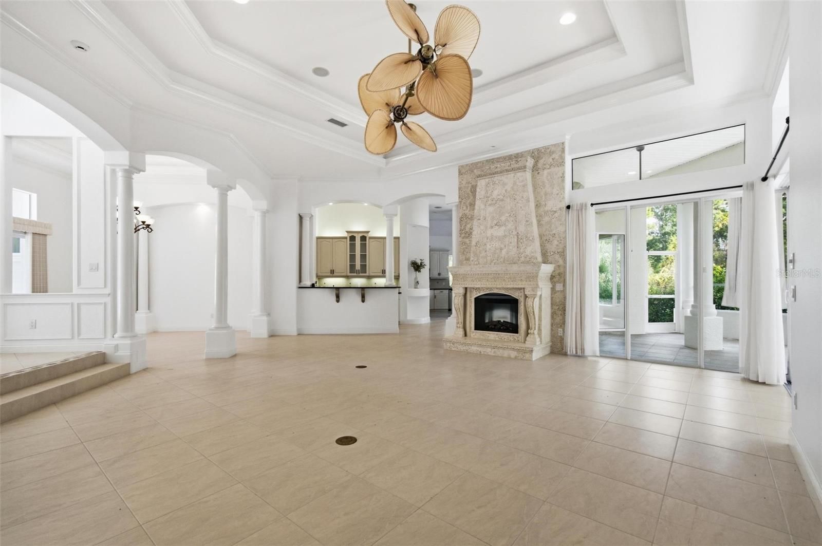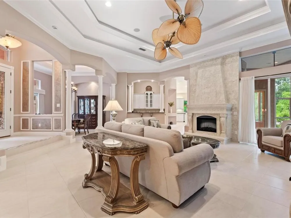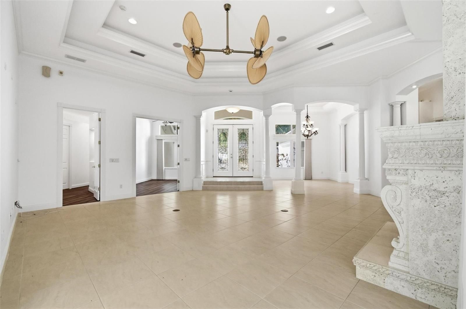 - Cathedral Ceiling(s), Ceiling Fan(s), Crown Molding, Dry Bar, Eat-in Kitchen, High Ceilings, Main Level Primary, Solid Surface Counters, Split Bedrooms, Tray Ceiling(s), Vaulted Ceiling(s), Walk-In Closet(s), Window Treatments