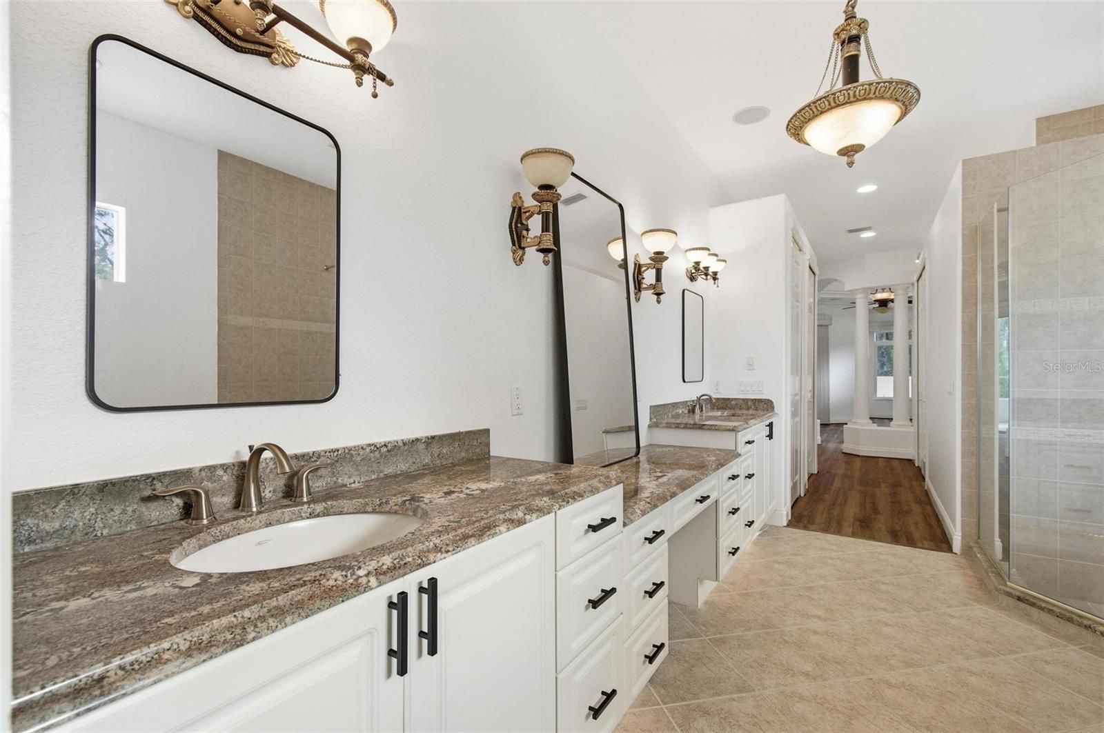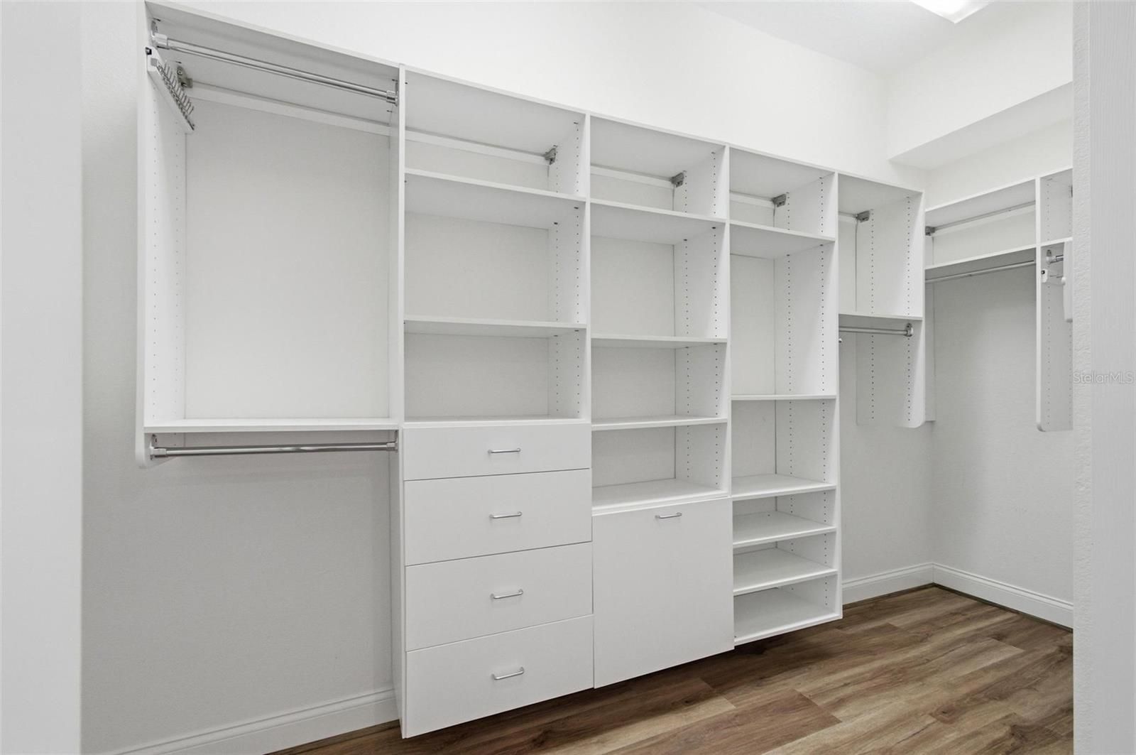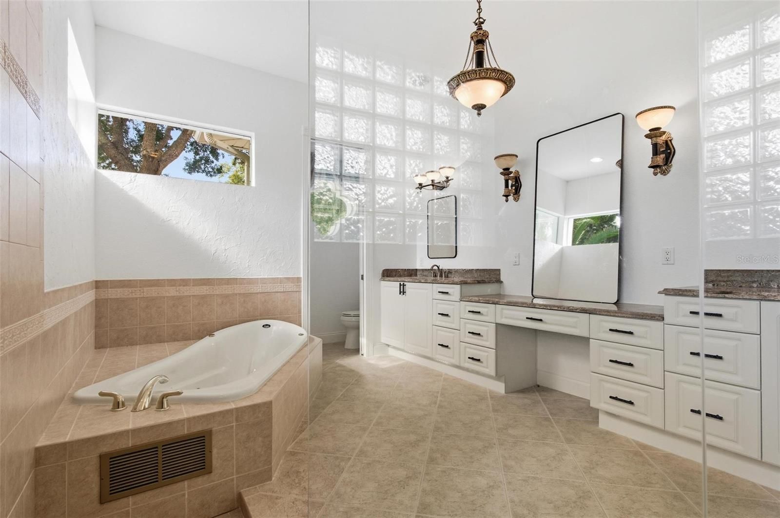 - Cathedral Ceiling(s), Ceiling Fan(s), Crown Molding, Dry Bar, Eat-in Kitchen, High Ceilings, Main Level Primary, Solid Surface Counters, Split Bedrooms, Tray Ceiling(s), Vaulted Ceiling(s), Walk-In Closet(s), Window Treatments