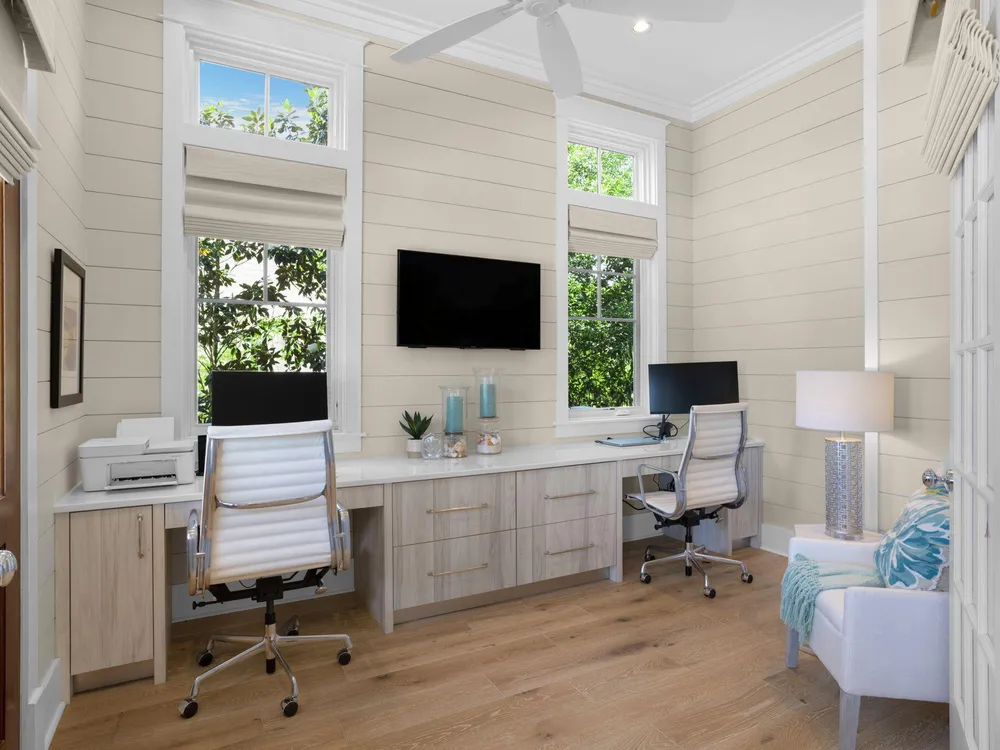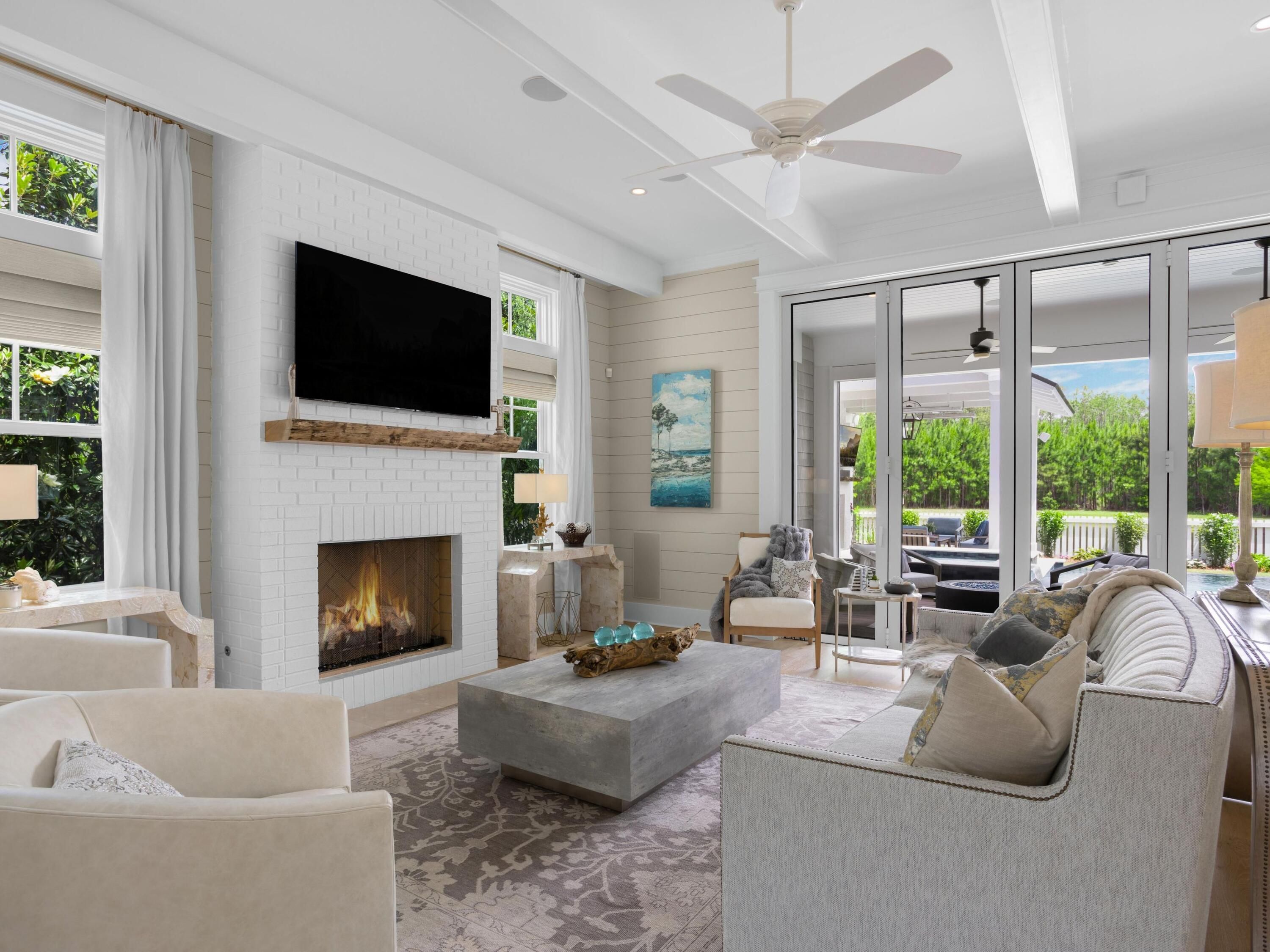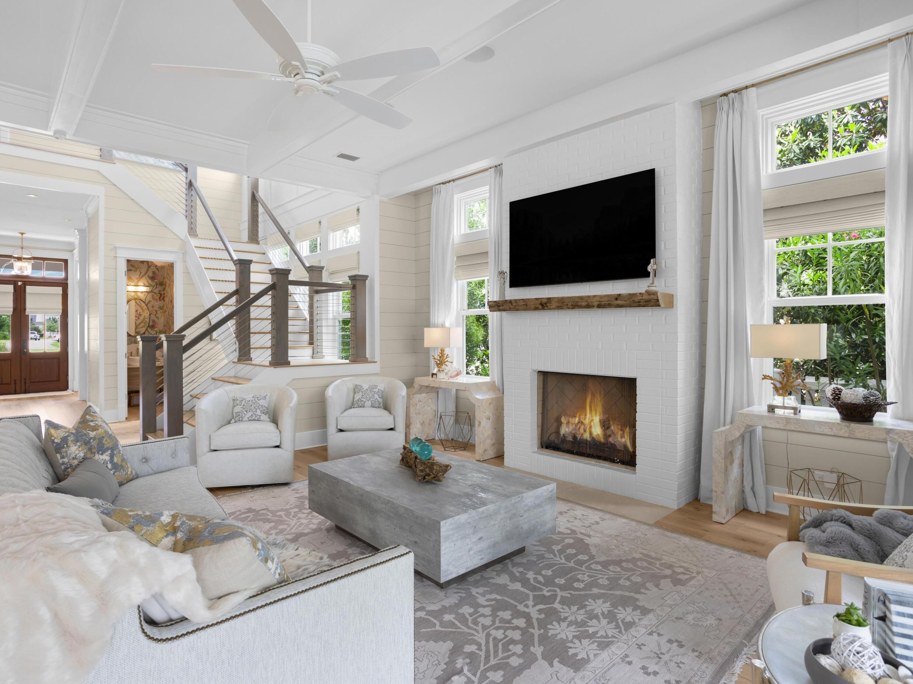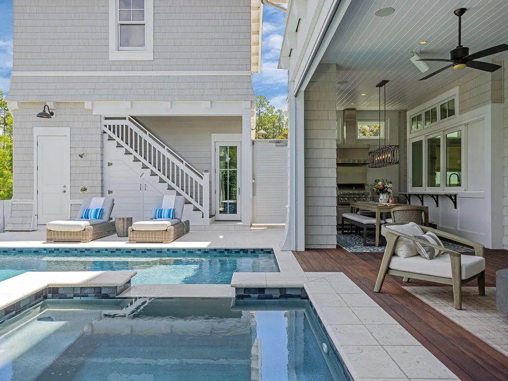 Now offered with an exceptional selection of high-end furnishings for a move-in ready experience of unparalleled quality. Designed by acclaimed architect Chris Stoyles and masterfully built in 2020 by Turner Legacy Homes, 55 Seastone Court is one of the few truly custom estate homes located within the sought-after WaterSound Origins community. Tucked on a quiet side street and fronting a wooded pocket park, this five-bedroom residence blends timeless architectural elegance with the relaxed sophistication of modern coastal living.Step inside to discover more than 4,500 square feet of thoughtfully curated interiors. The sale includes all major furnishings. Linens, kitchen provisions and small decorative items are excluded to allow for personalization.
